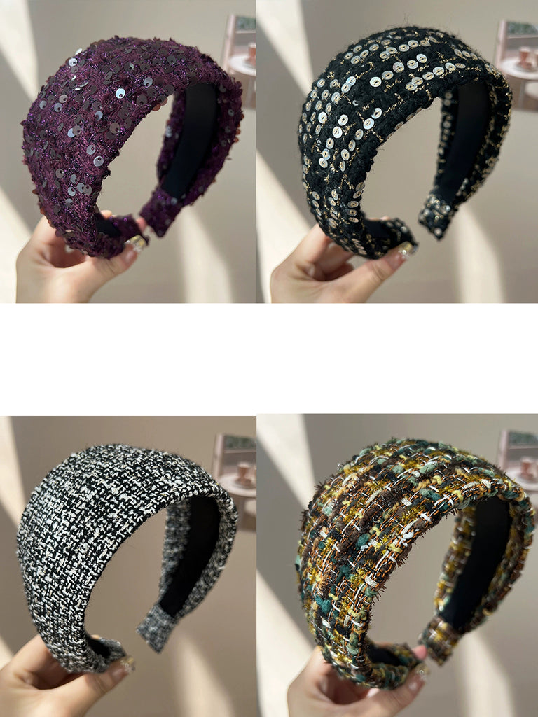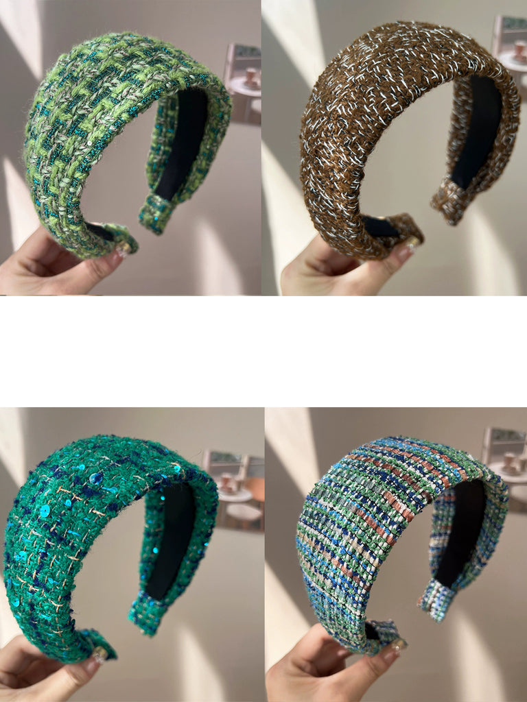 4 قطع من عصابة الشعر العريضة بتصميم شتوي فني منقوش