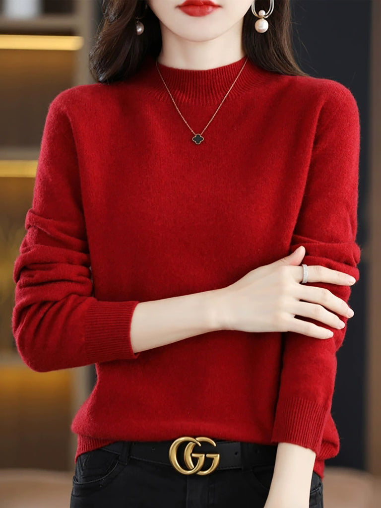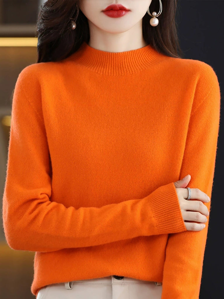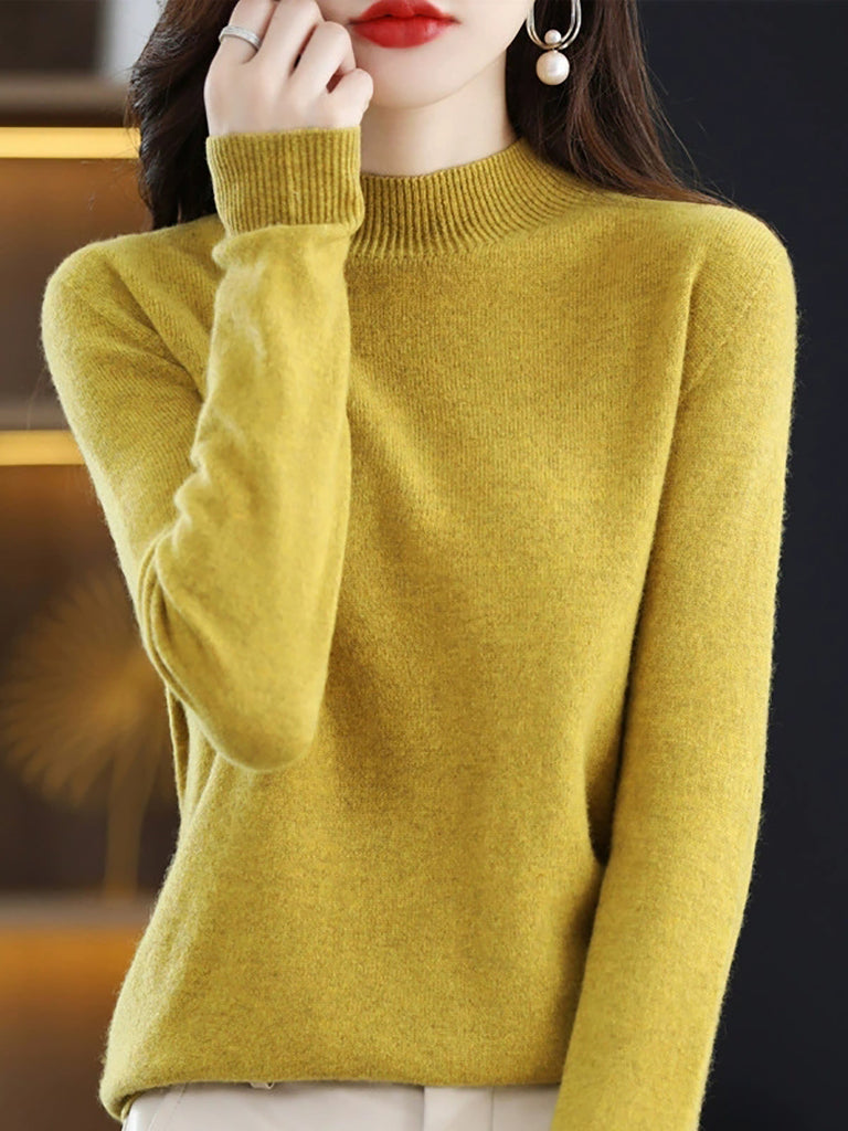 سترة نسائية خريفية كاجوال من الصوف المحبوك بنصف رقبة مدورة