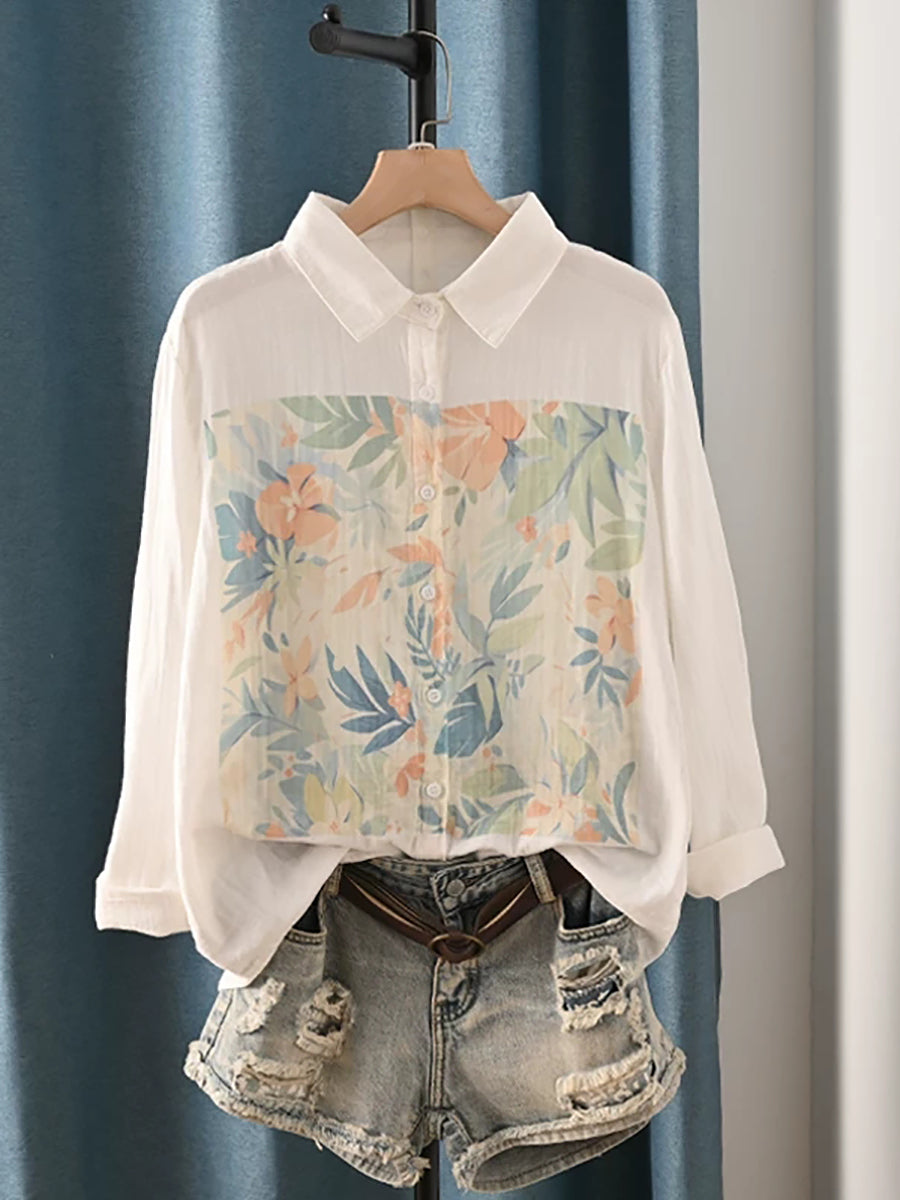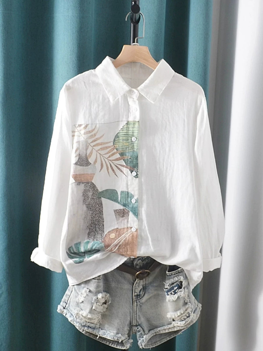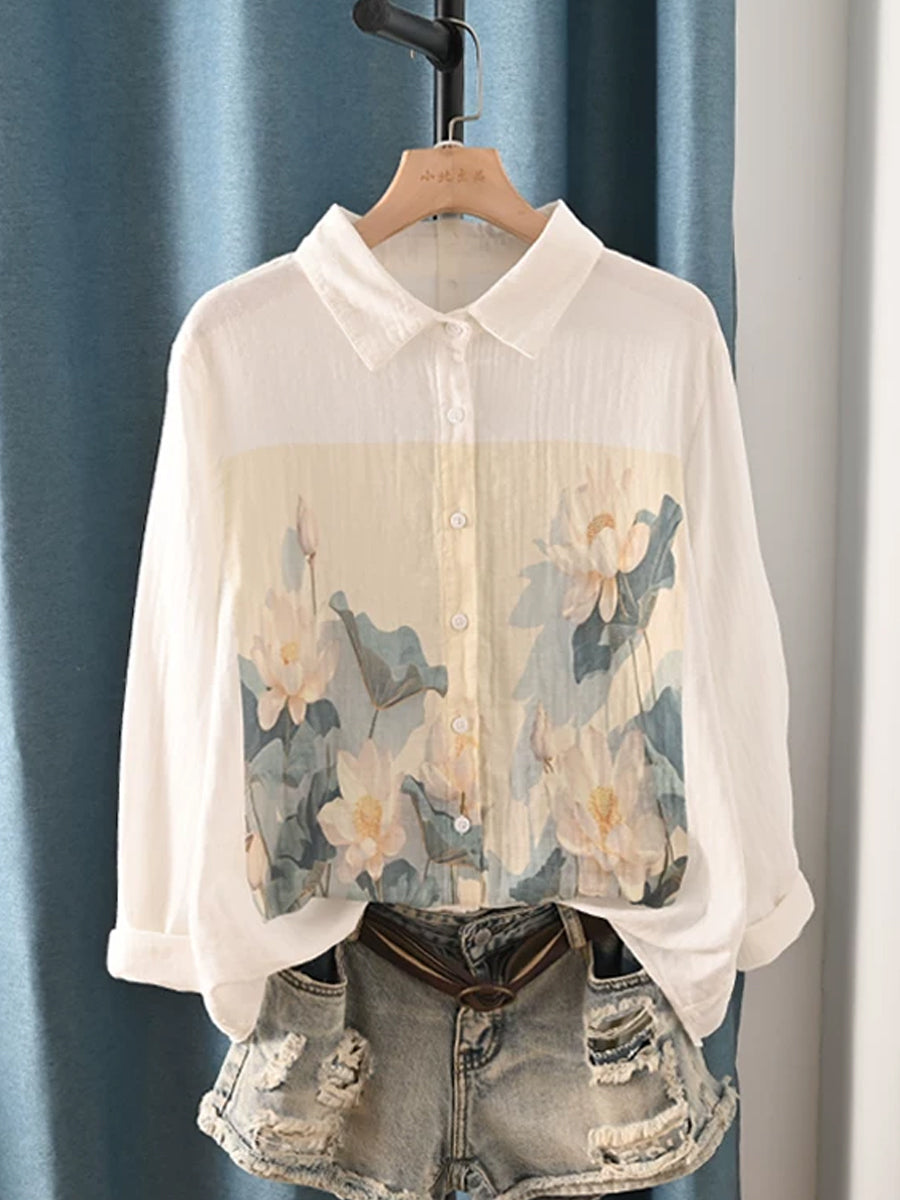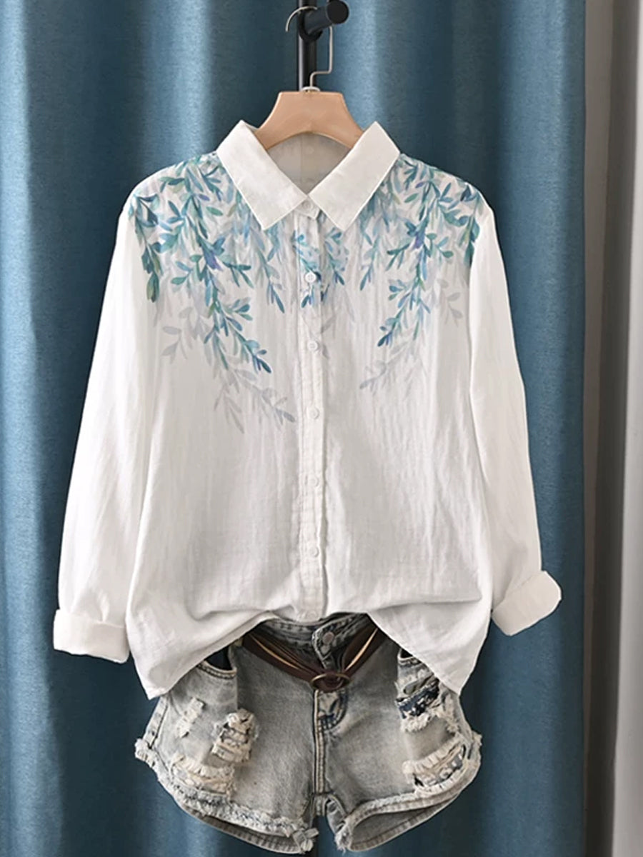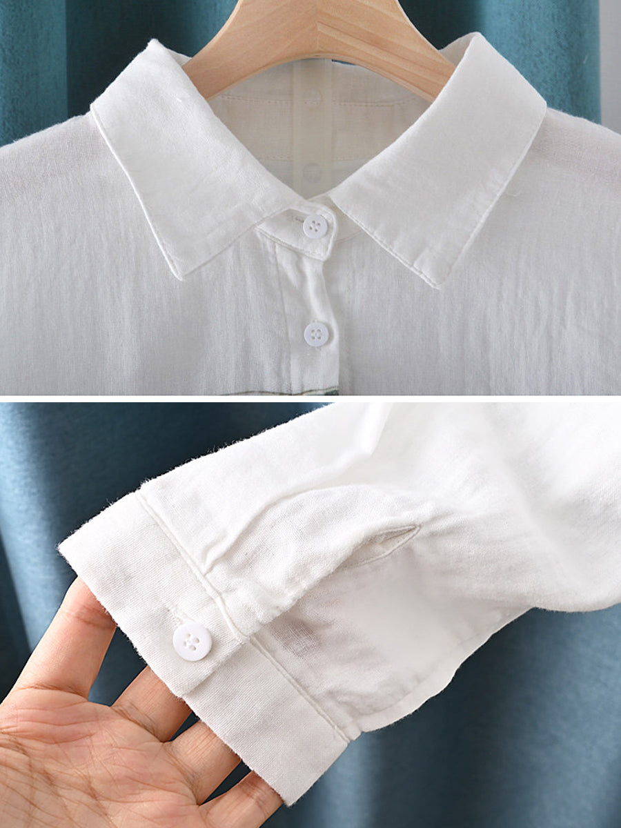 قميص نسائي ربيعي أنيق مصنوع من القطن بنسبة 100% بياقة مطوية