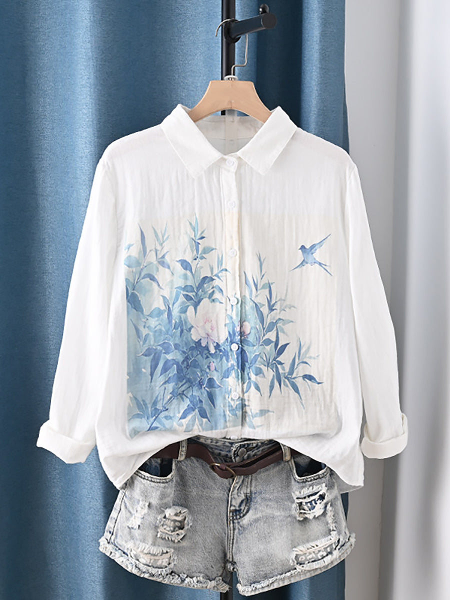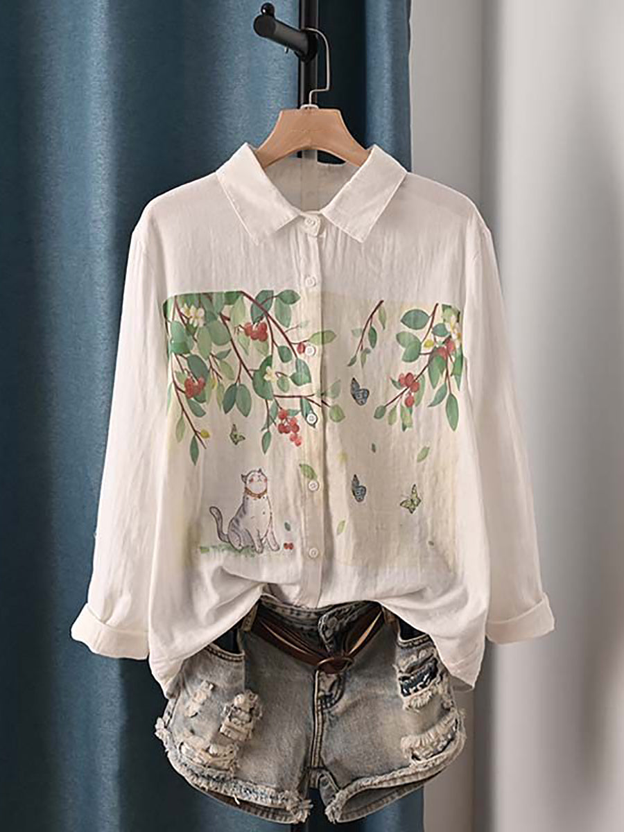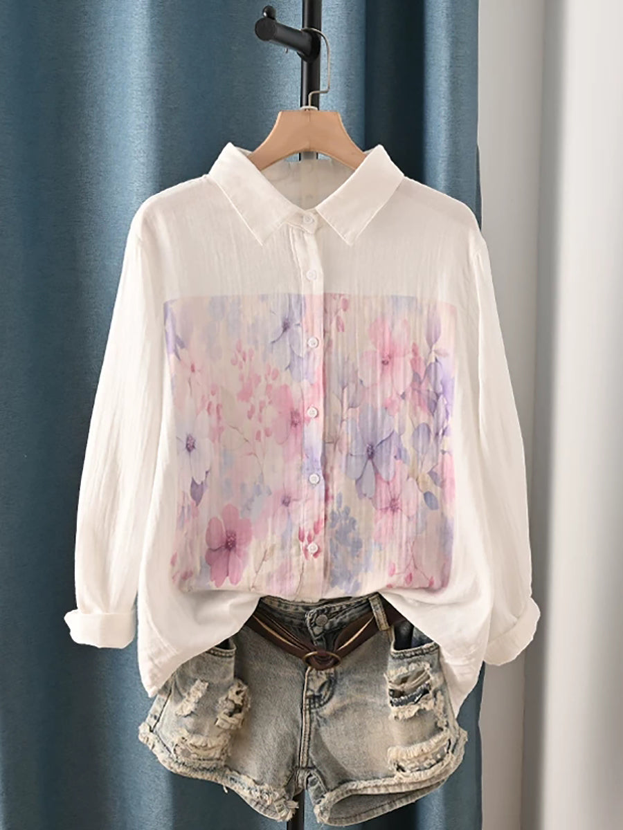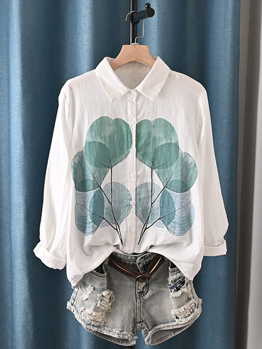 قميص نسائي ربيعي أنيق مصنوع من القطن بنسبة 100% بياقة مطوية
