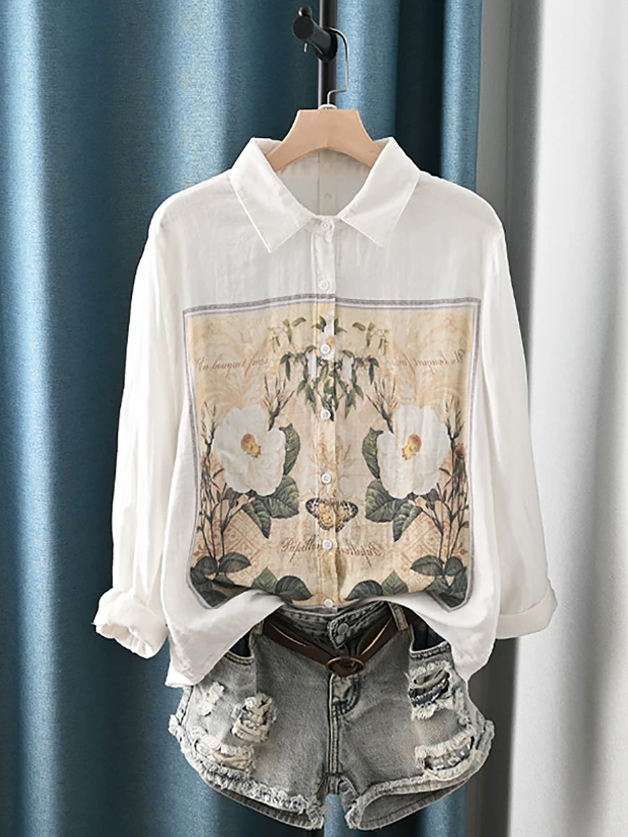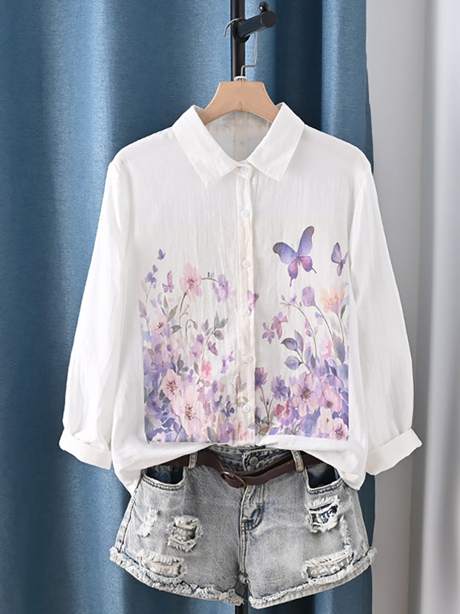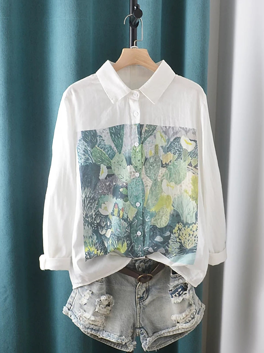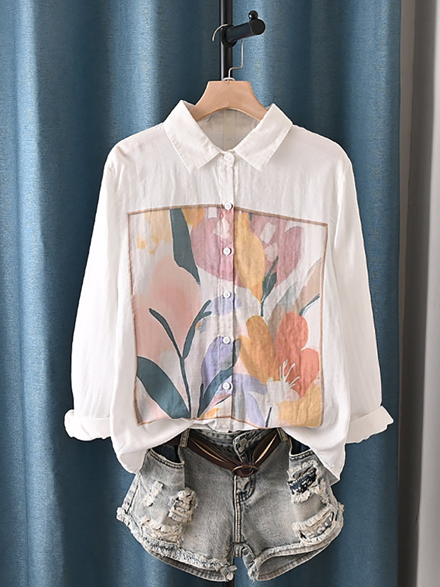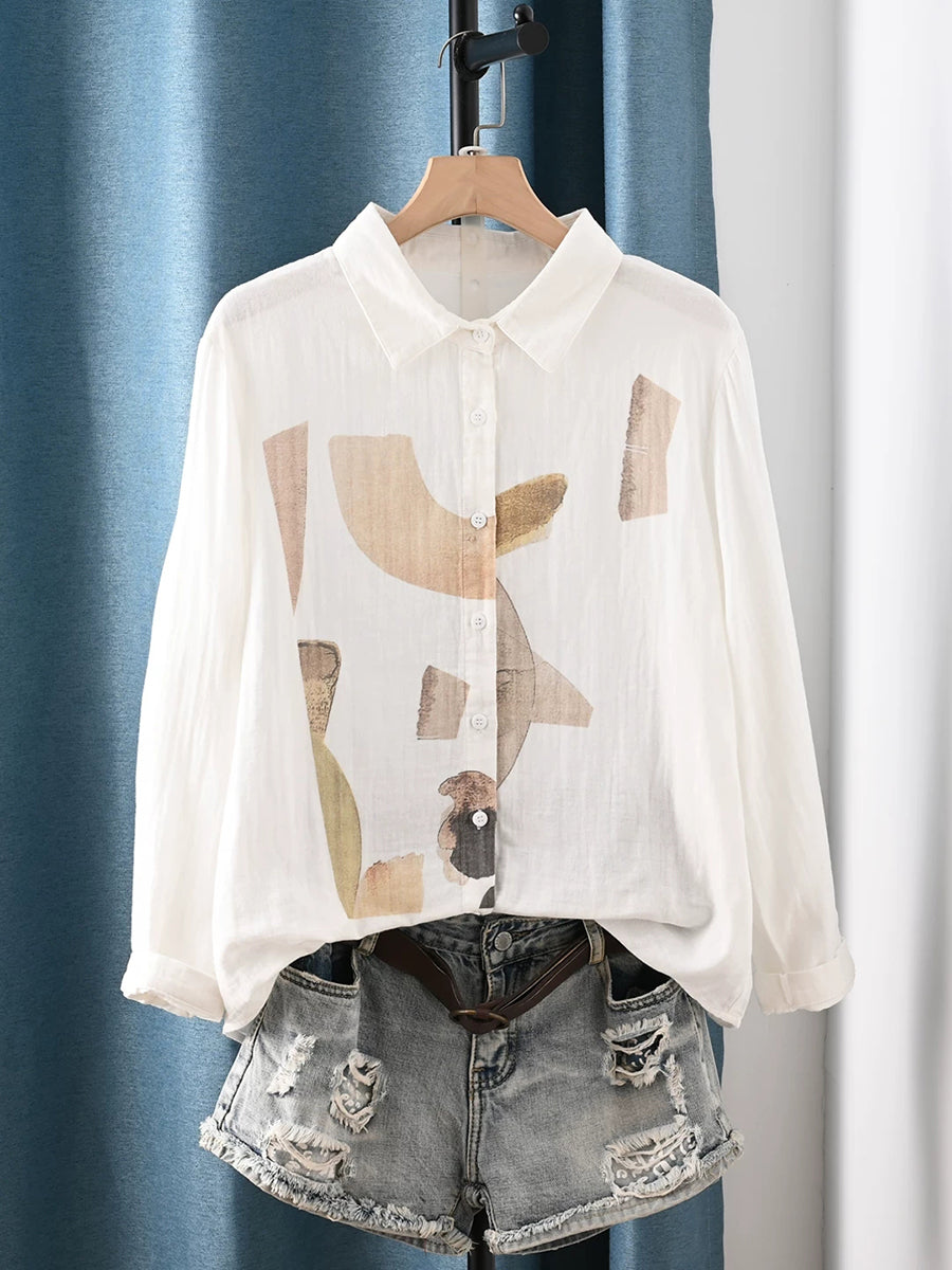 قميص نسائي ربيعي أنيق مصنوع من القطن بنسبة 100% بياقة مطوية
