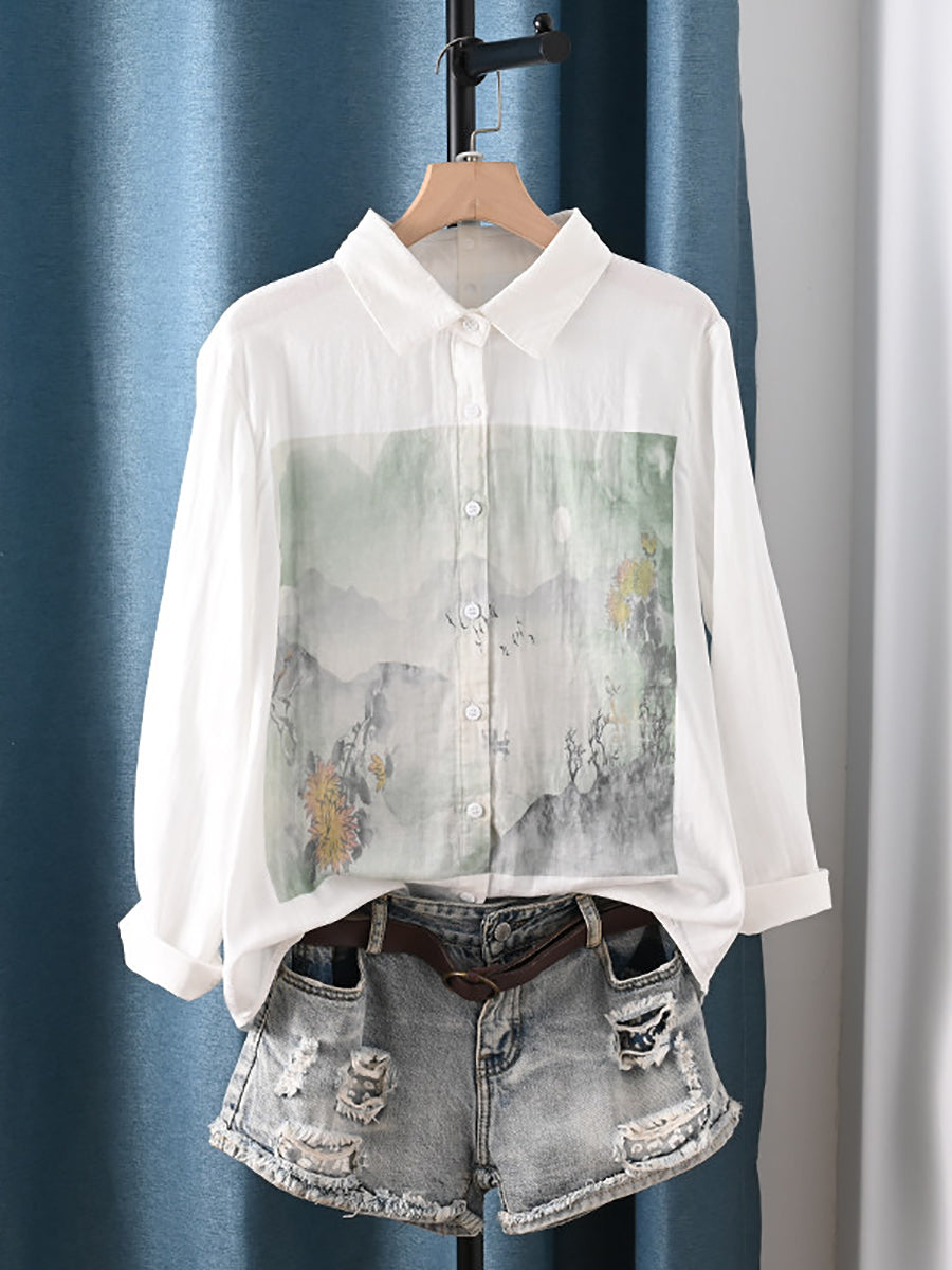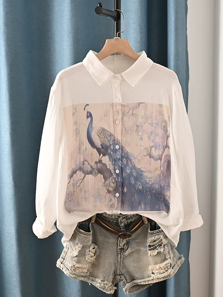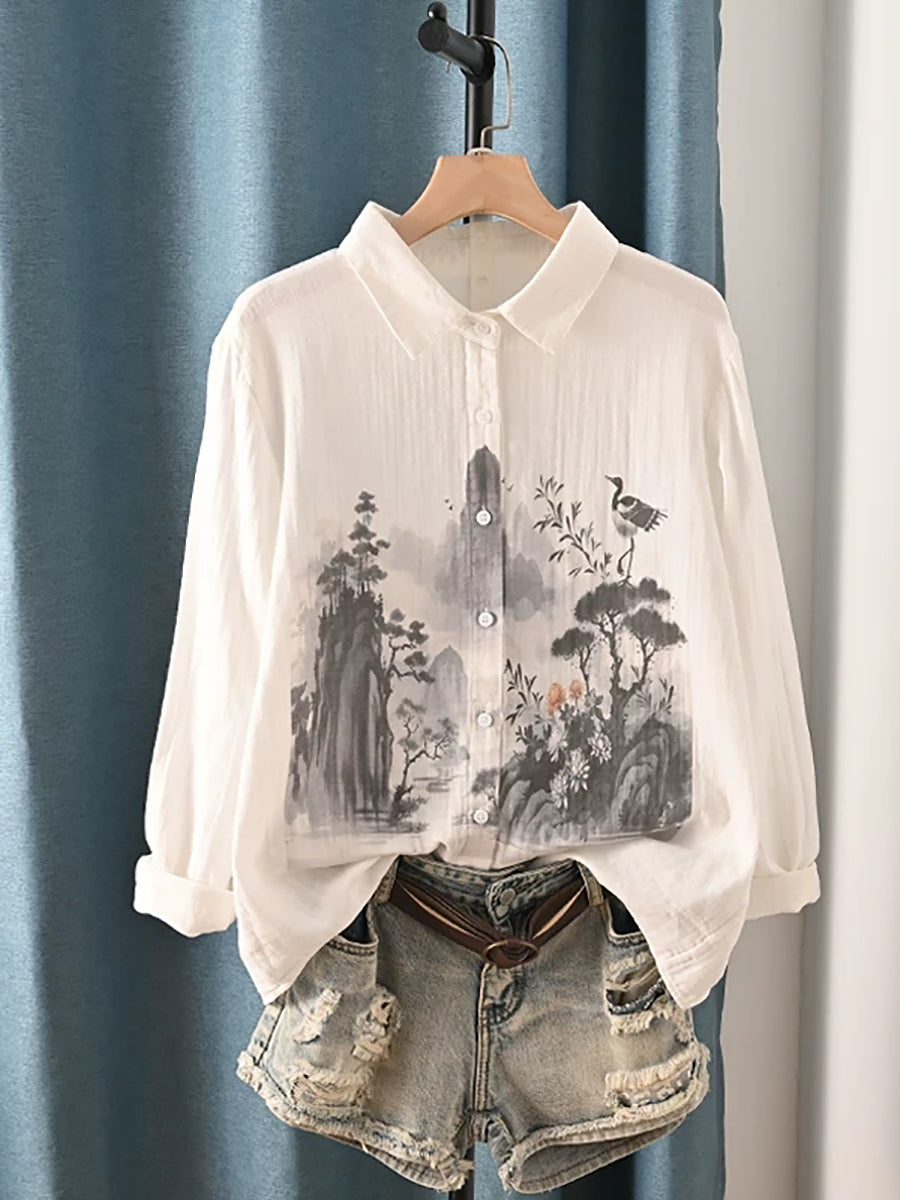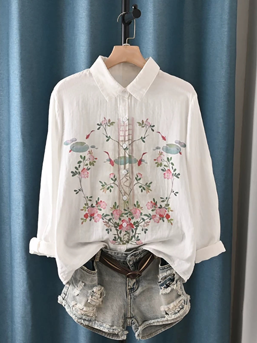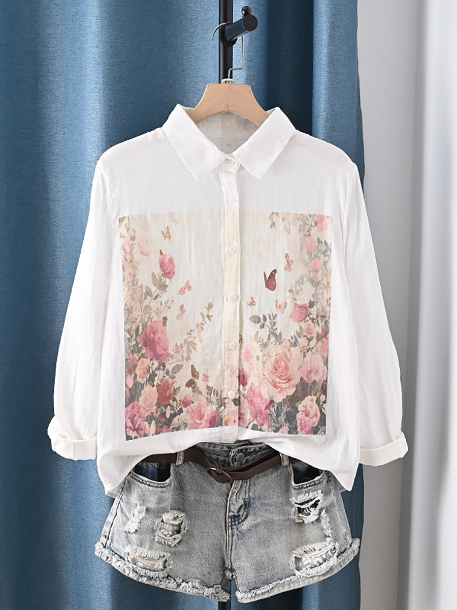 قميص نسائي ربيعي أنيق مصنوع من القطن بنسبة 100% بياقة مطوية