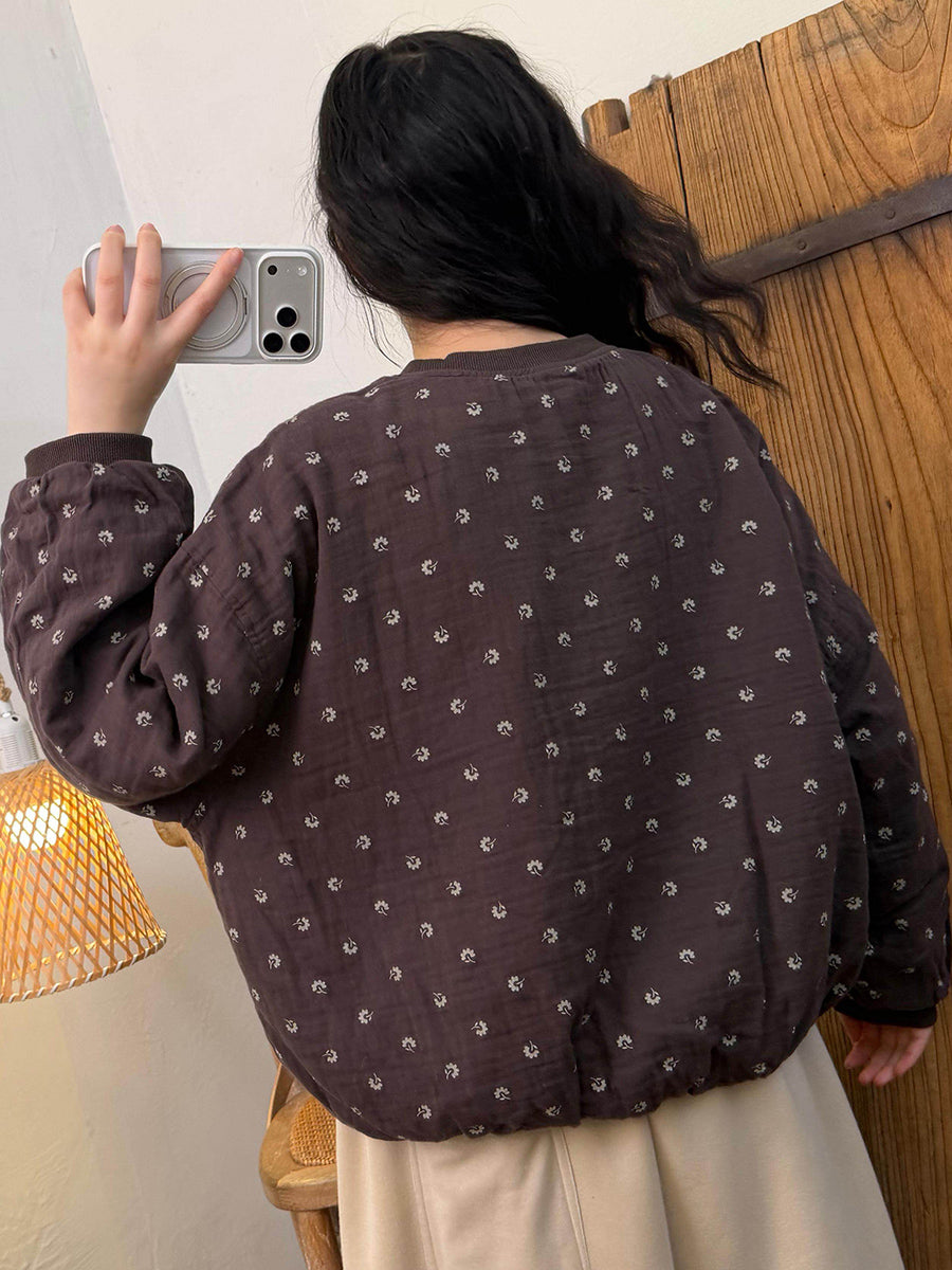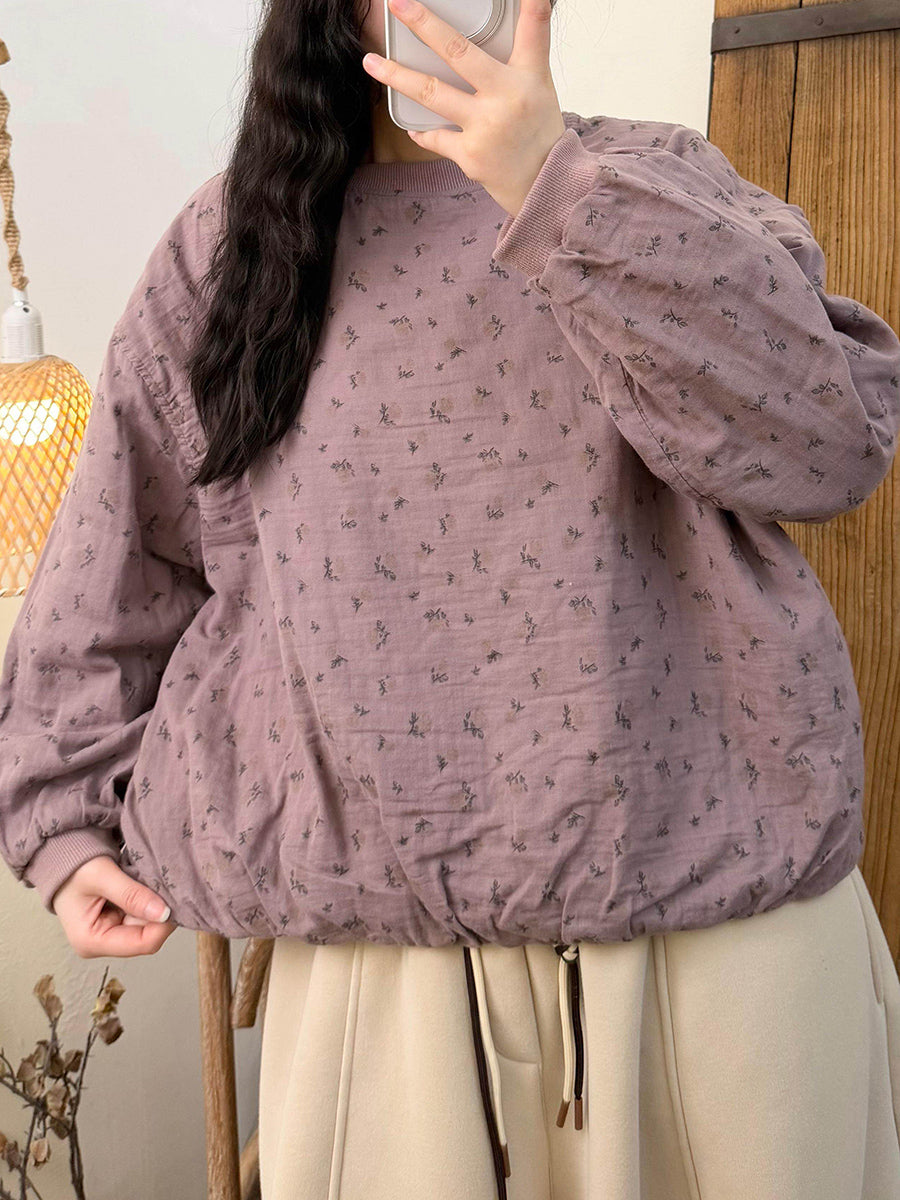بلوزة نسائية ربيعية مزينة بنقوش زهور، بياقة دائرية مبطنة