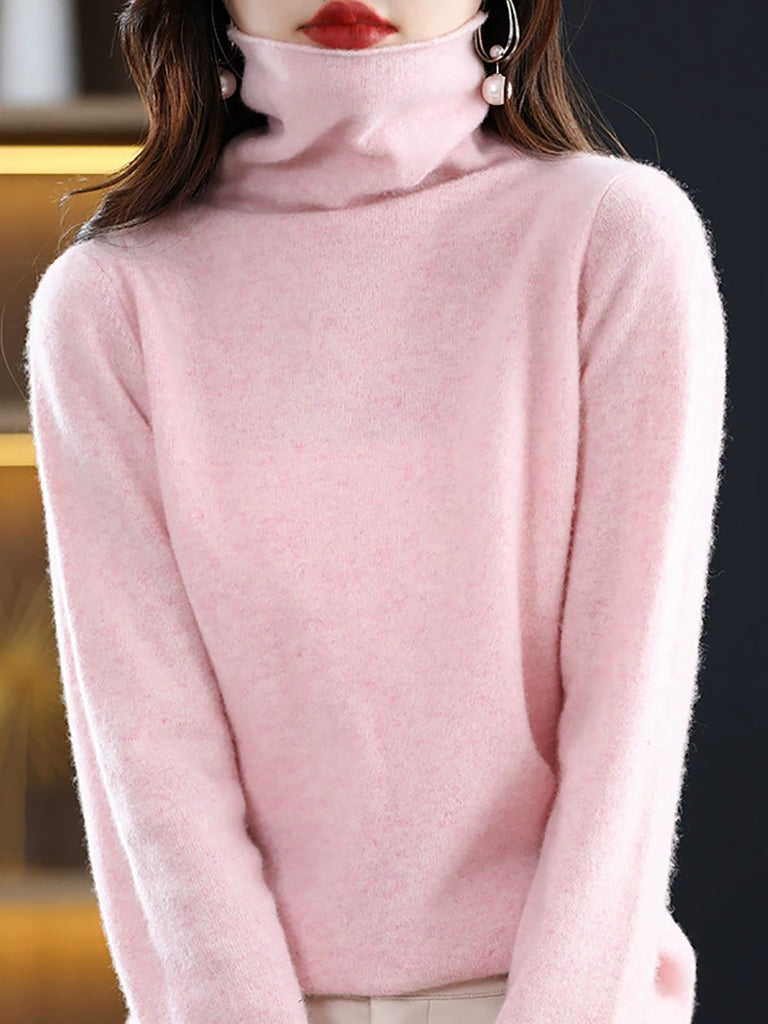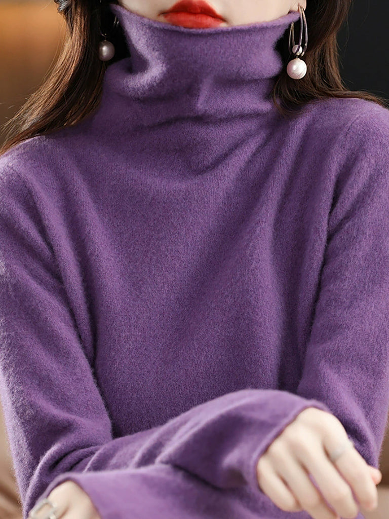 سترة نسائية كاجوال من الصوف المحبوك برقبة عالية لفصل الخريف