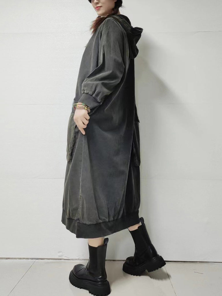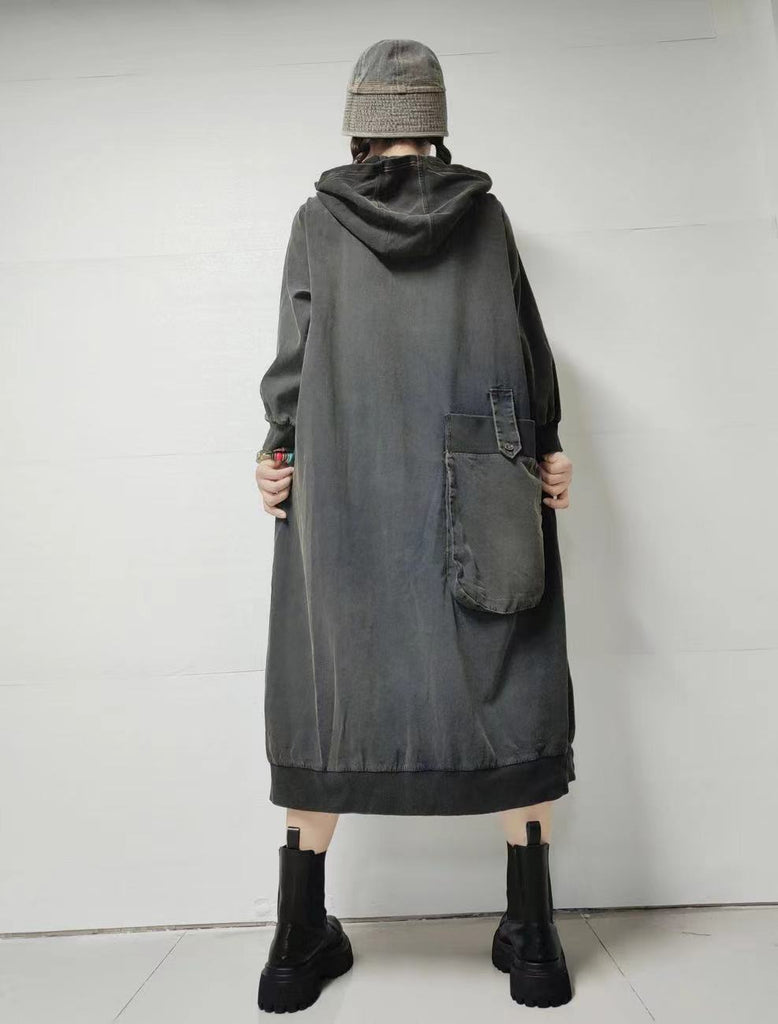 فستان نسائي خريفي من قماش الدنيم بلون نقي مع غطاء للرأس
