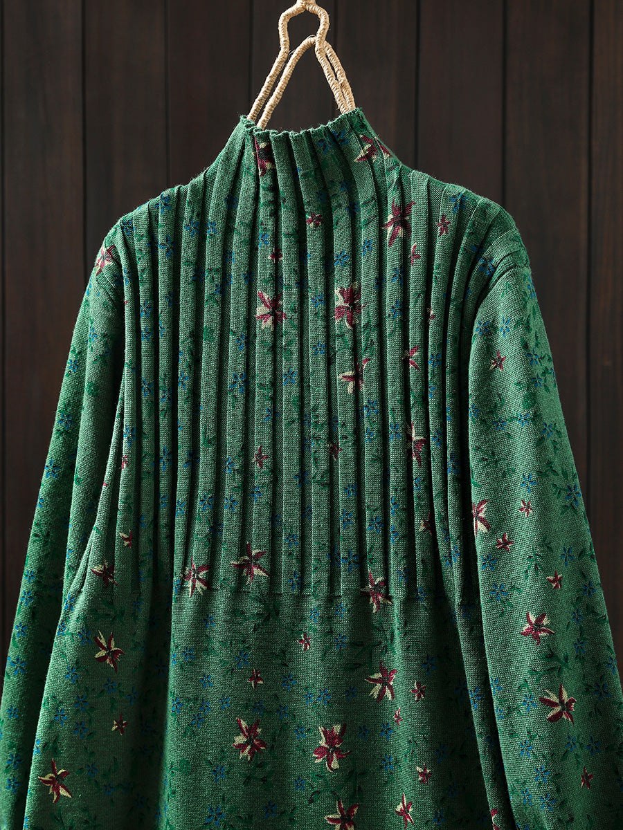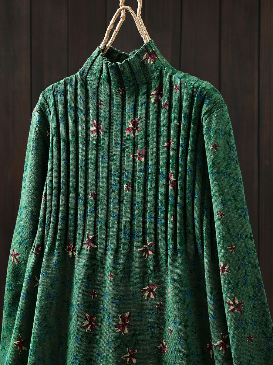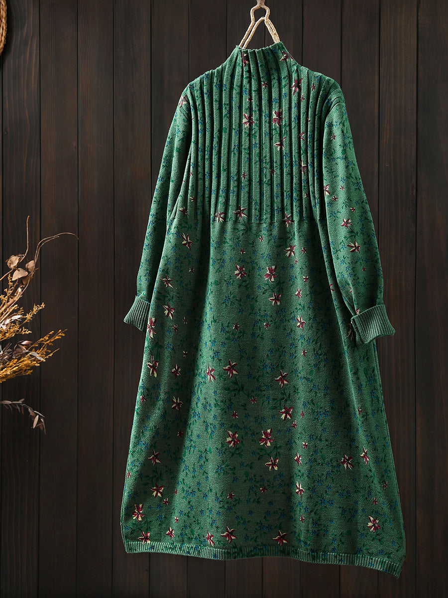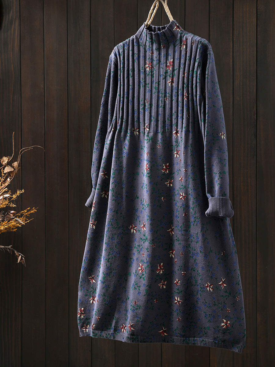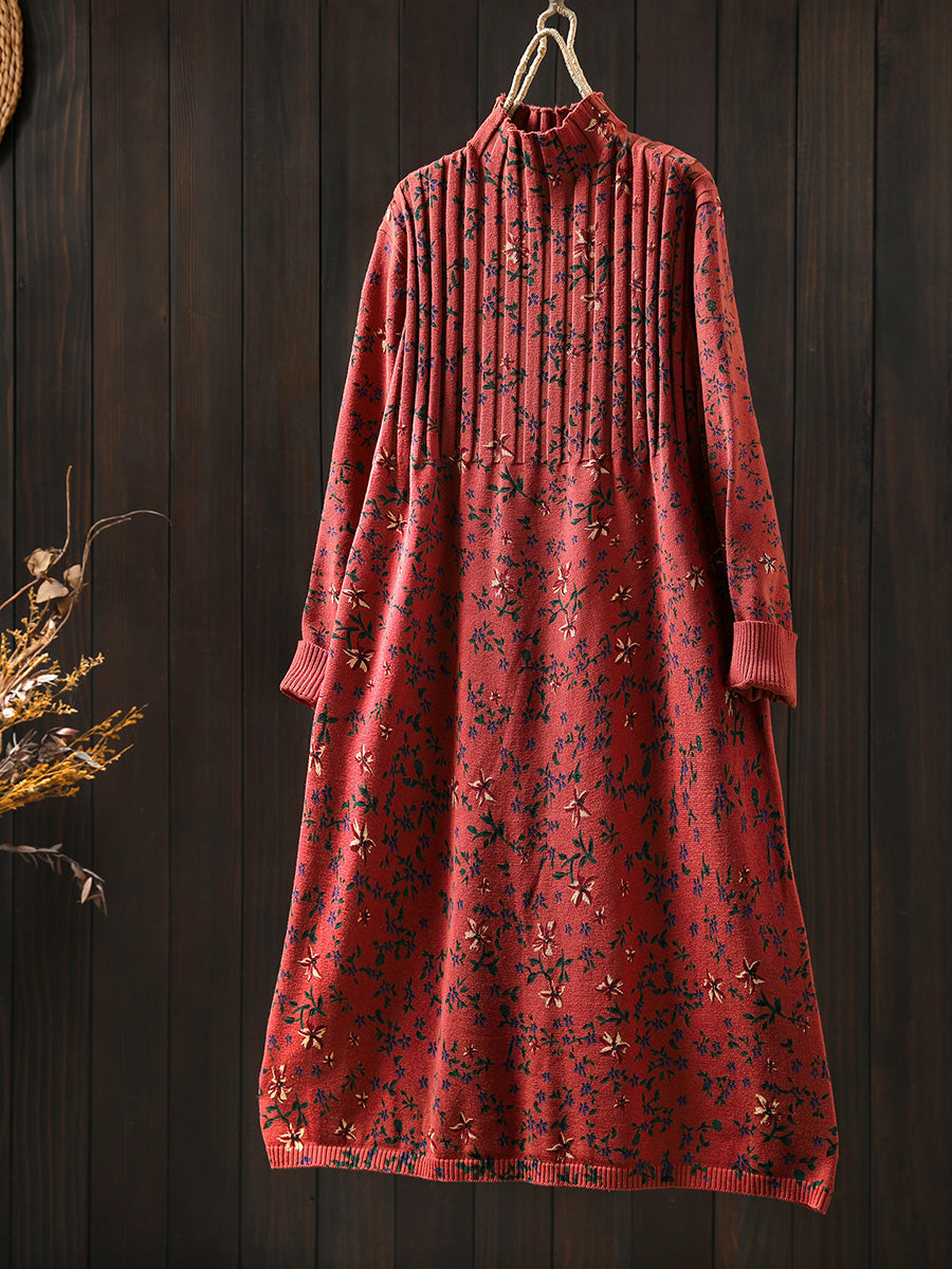 فستان نسائي خريفي عتيق محبوك بنصف رقبة مدورة