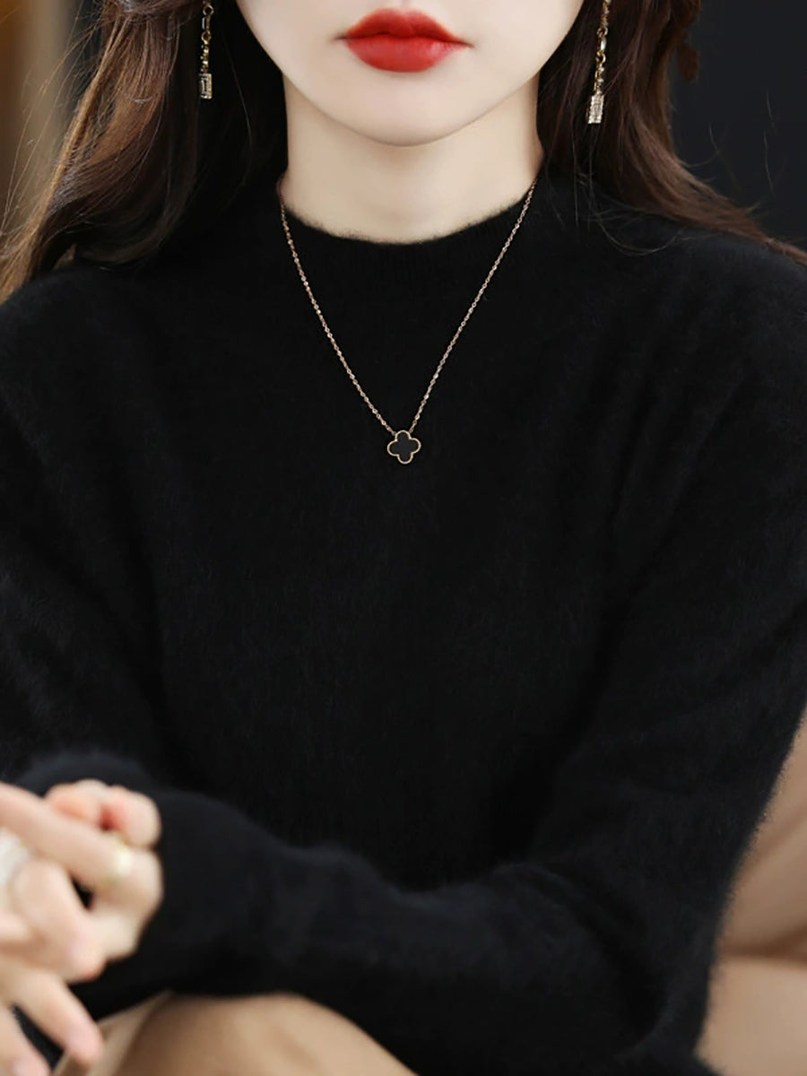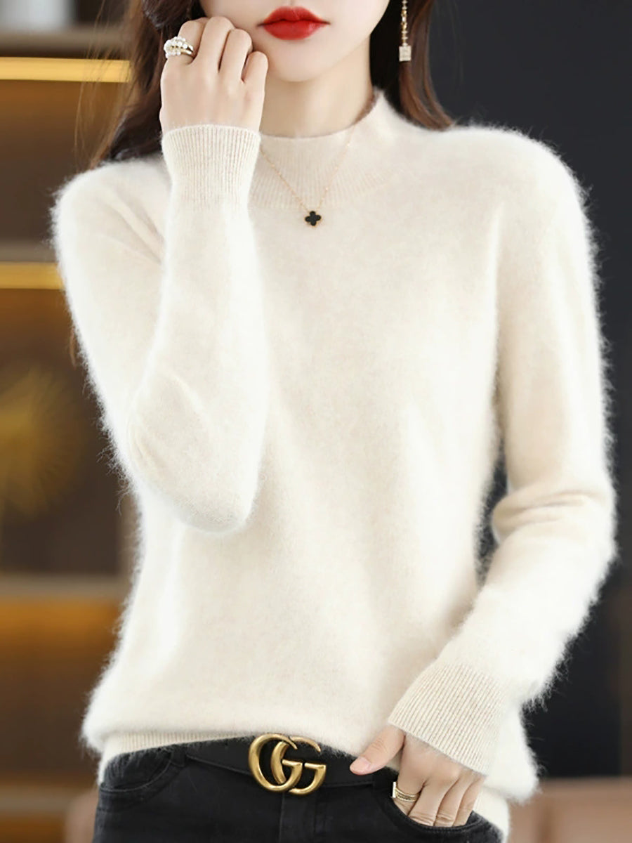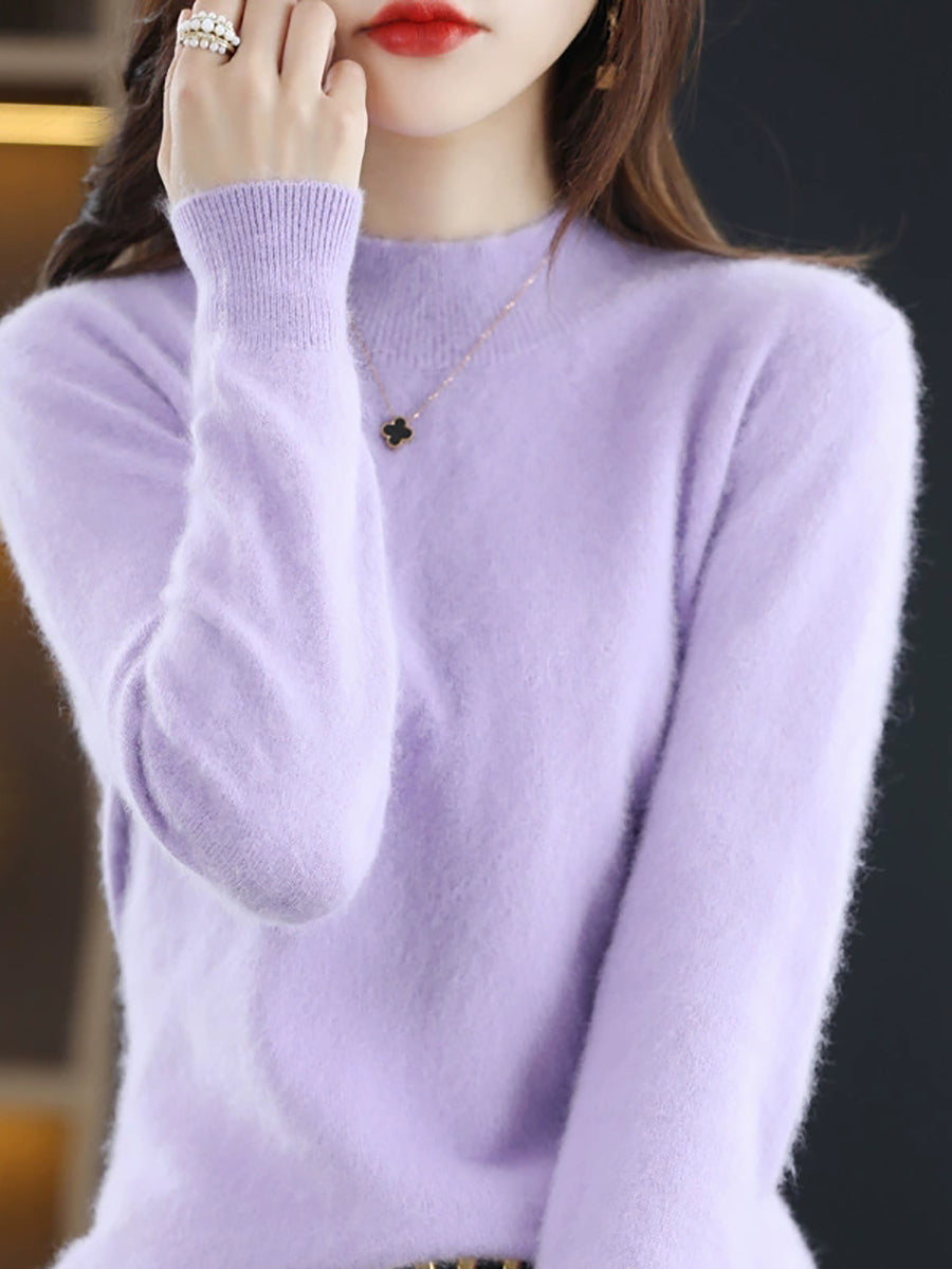 كنزة نسائية صيفية كاجوال بلون موحد بياقة نصف مدورة