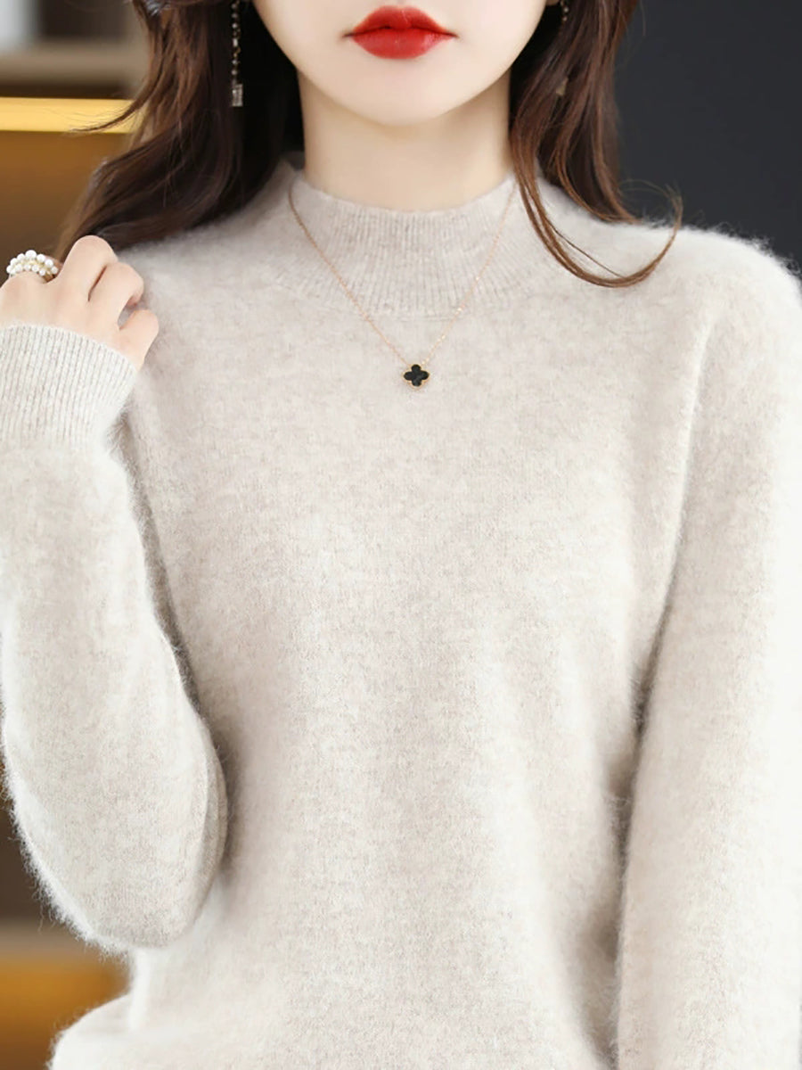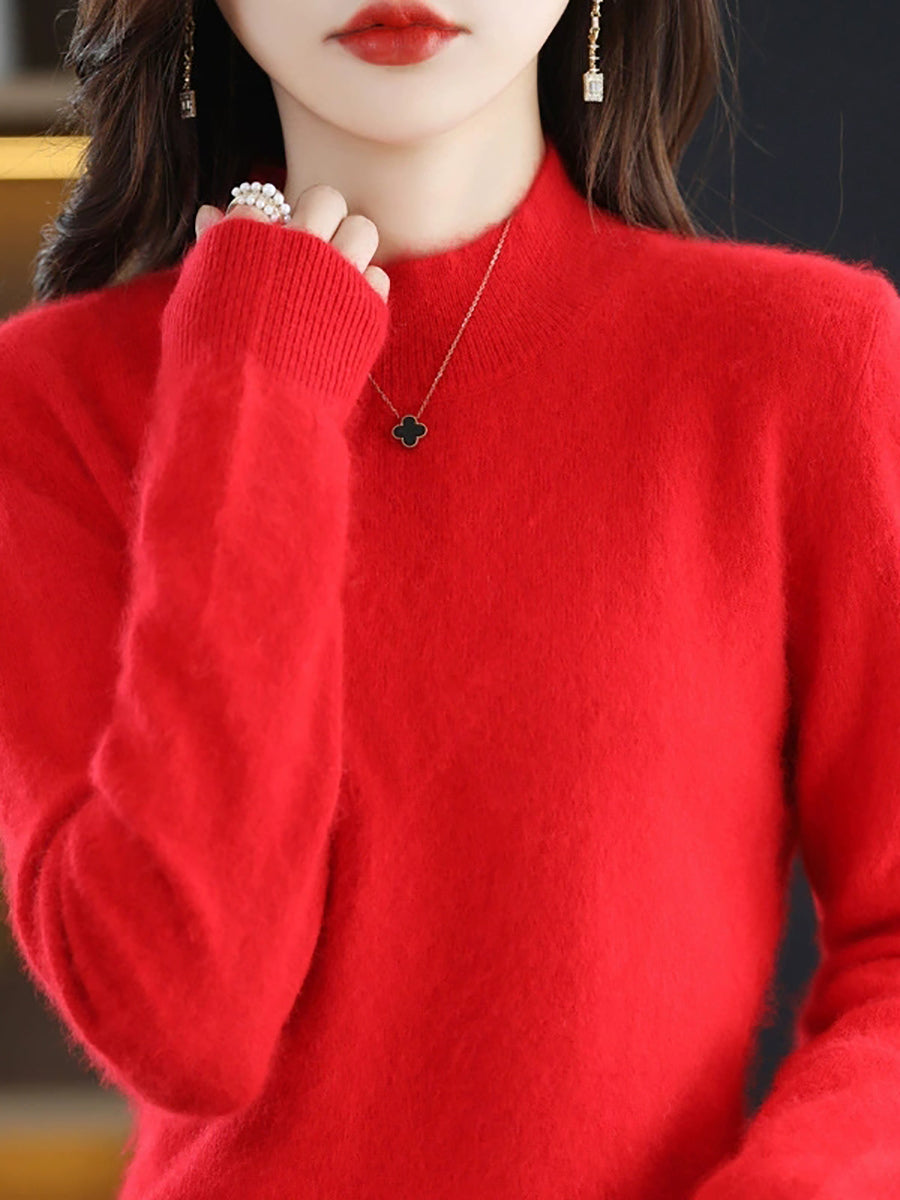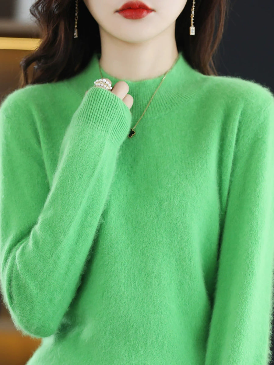كنزة نسائية صيفية كاجوال بلون موحد بياقة نصف مدورة