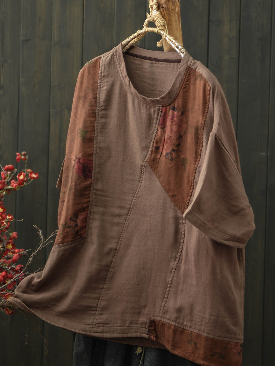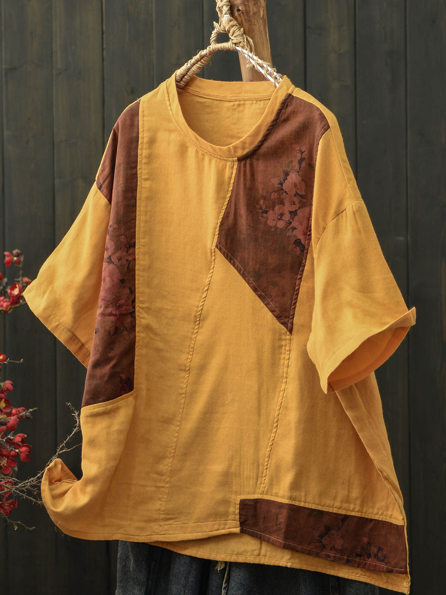 تيشيرت قطني صيفي نسائي بتصميم ريترو مرقع