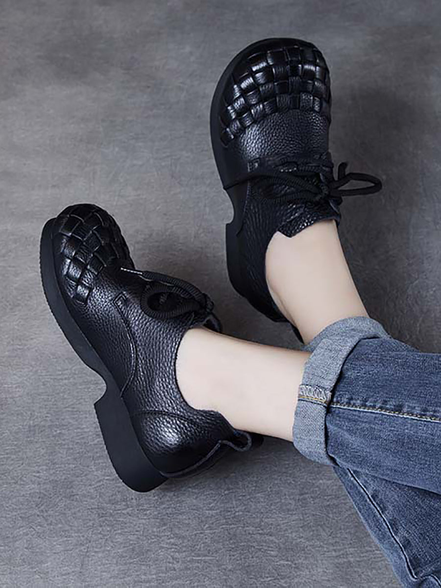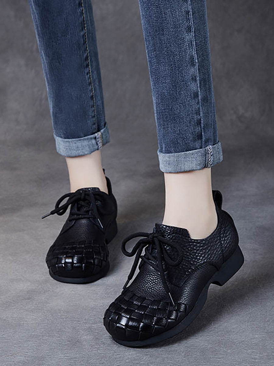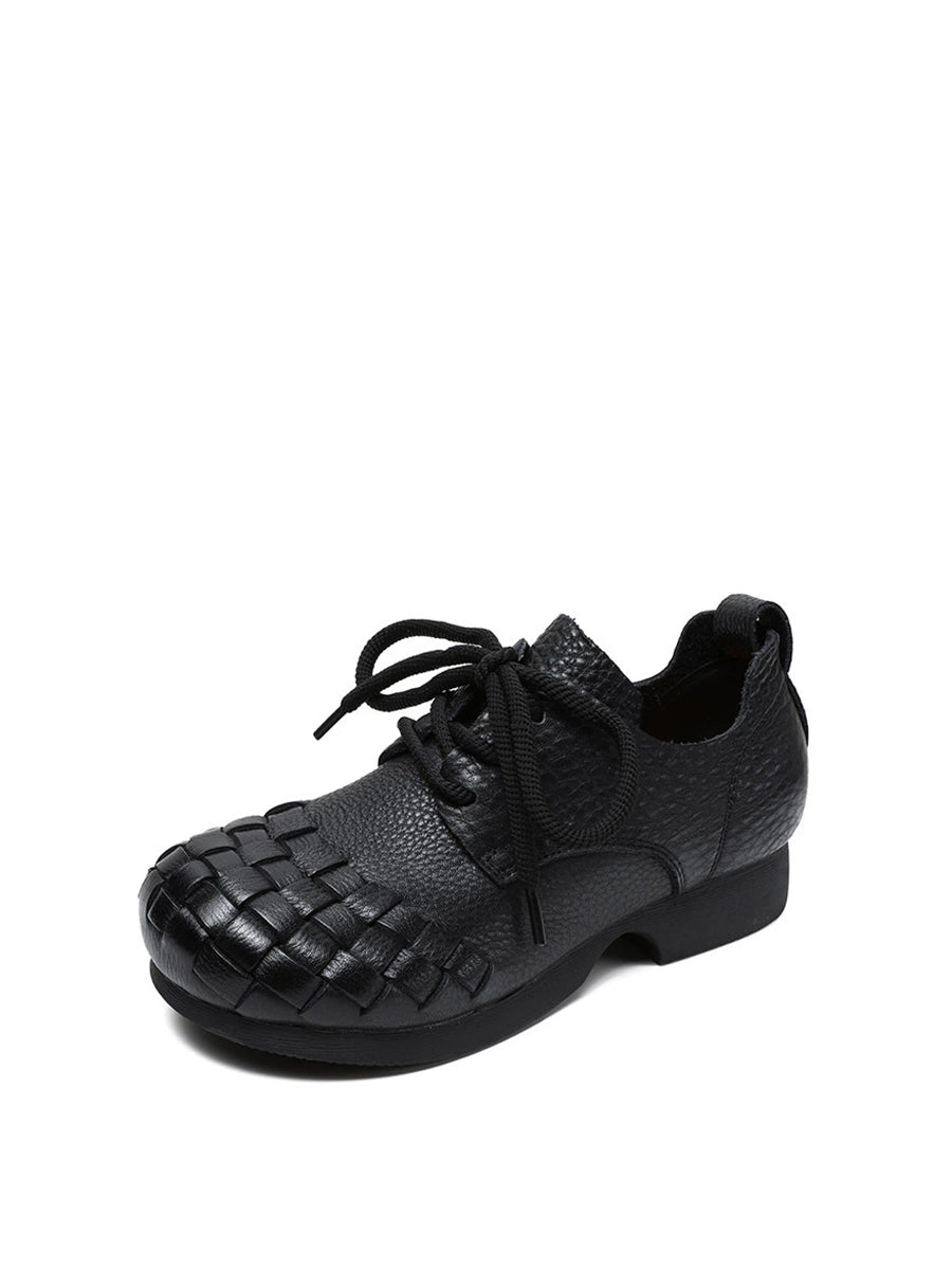 أحذية نسائية كلاسيكية من الجلد الناعم المنسوج بكعب منخفض