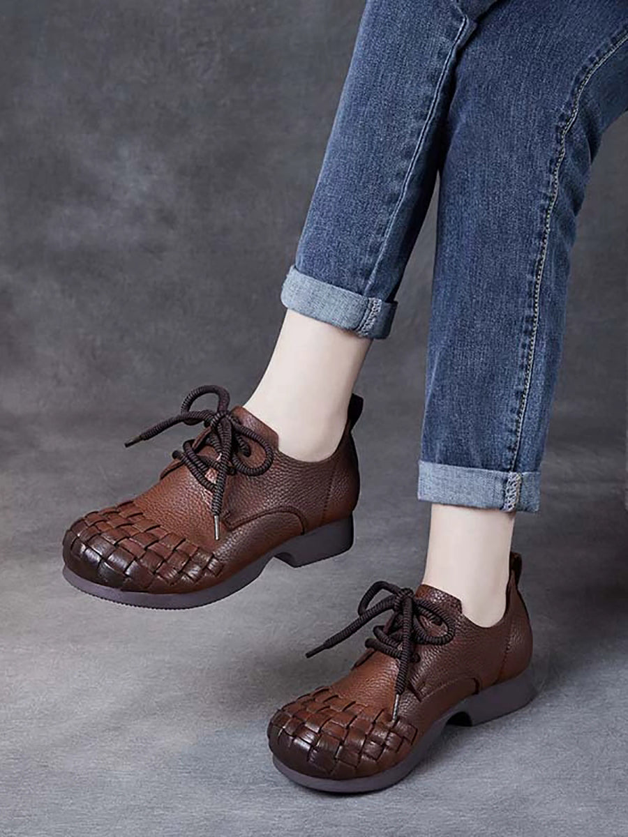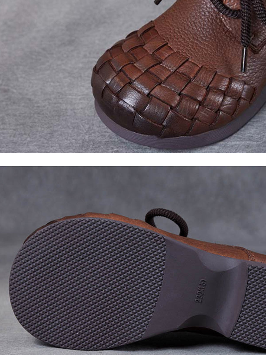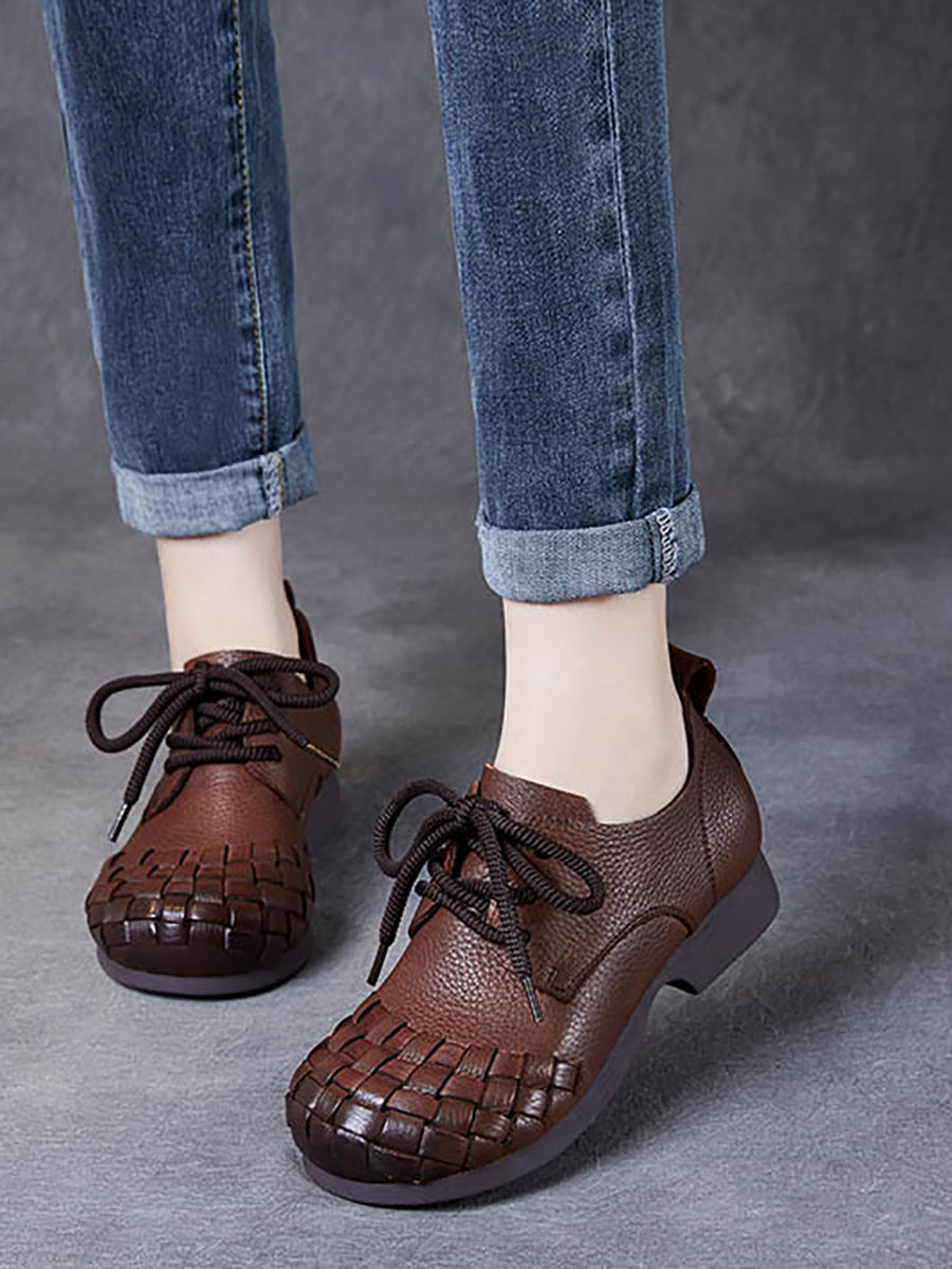 أحذية نسائية كلاسيكية من الجلد الناعم المنسوج بكعب منخفض