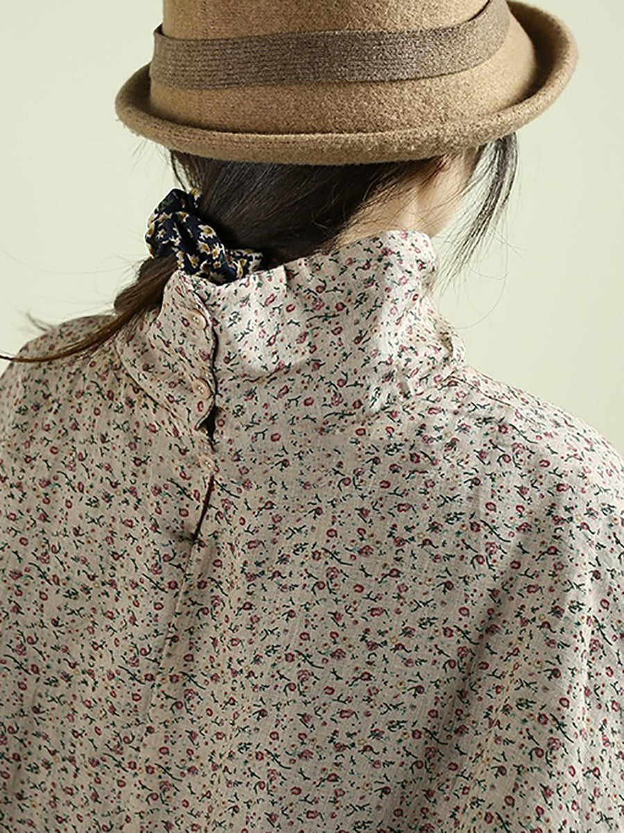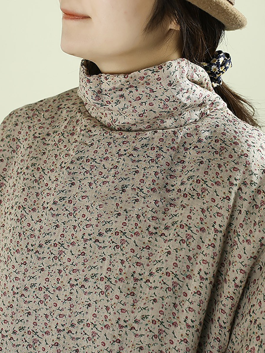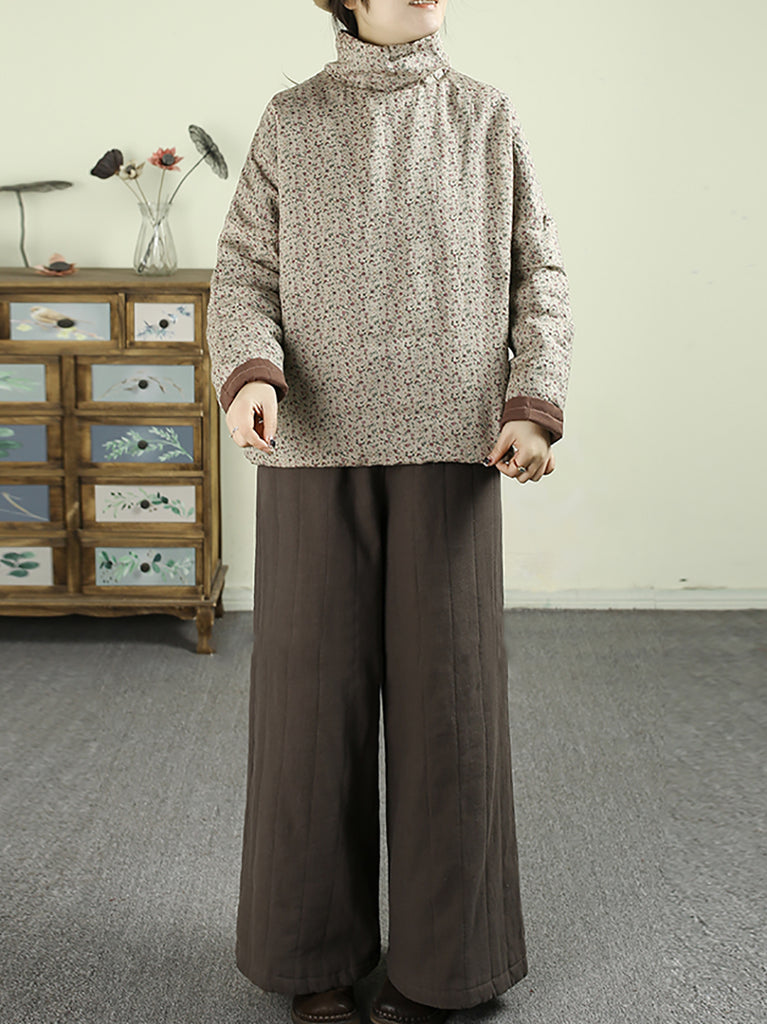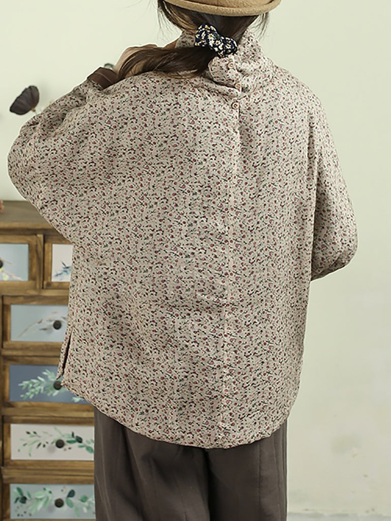 معطف نسائي شتوي من قماش الرامي المبطن ذو الياقة العالية والمزين بنقشة الأزهار العرقية
