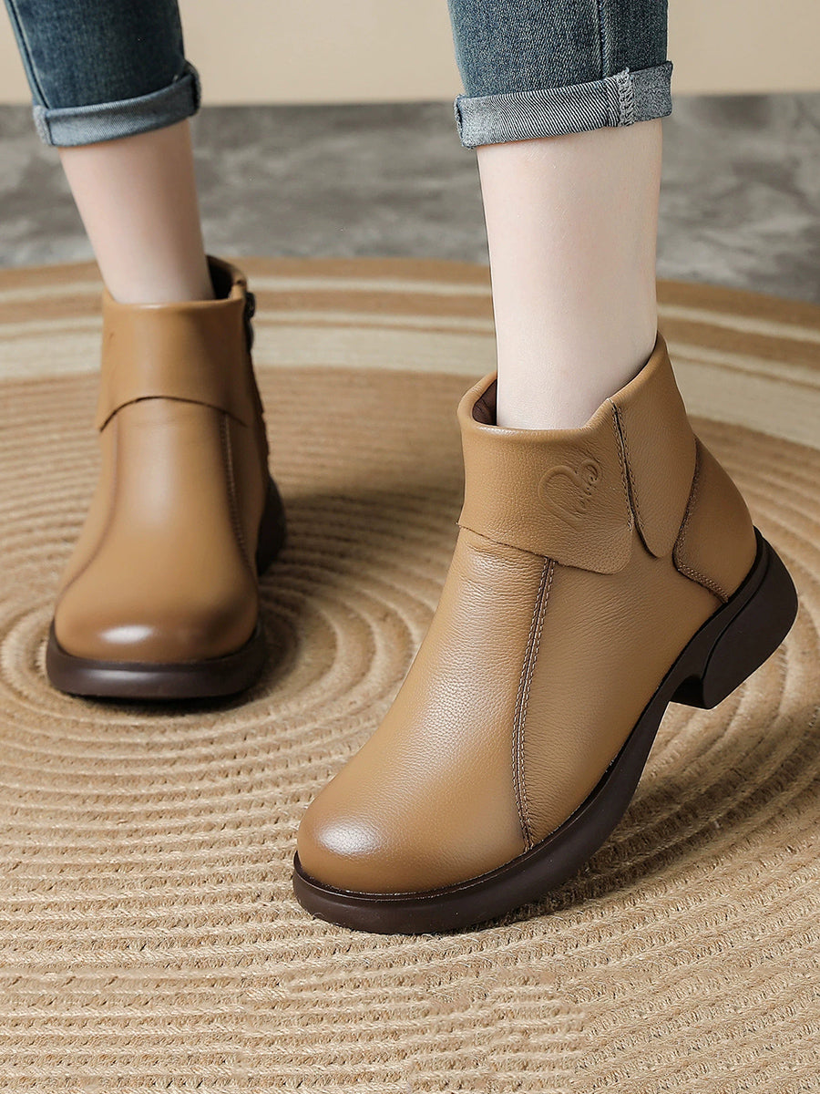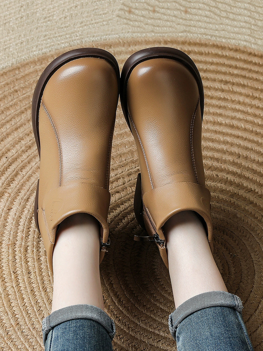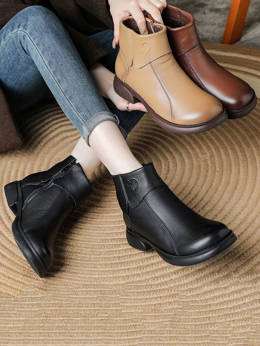 أحذية نسائية شتوية من الجلد الطبيعي بتصميم ذي نعل سميك