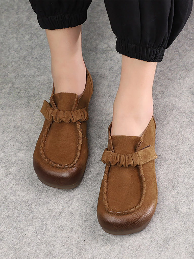 Women Vintage Leather Drawstring Flat Shoes