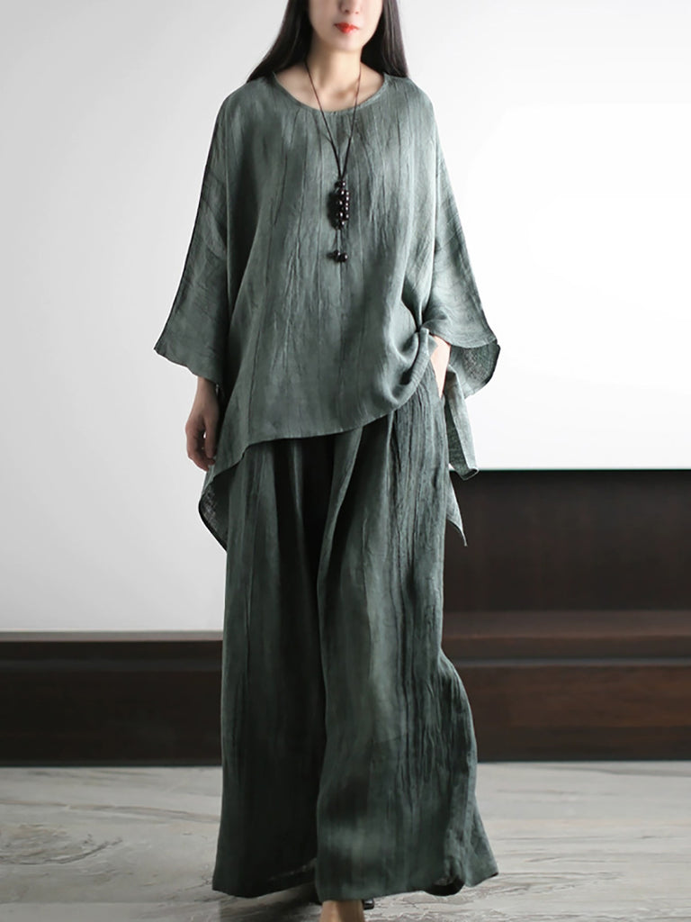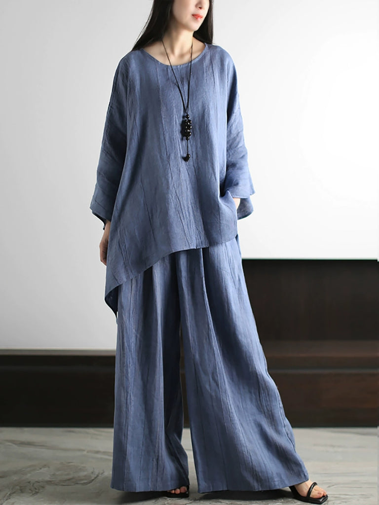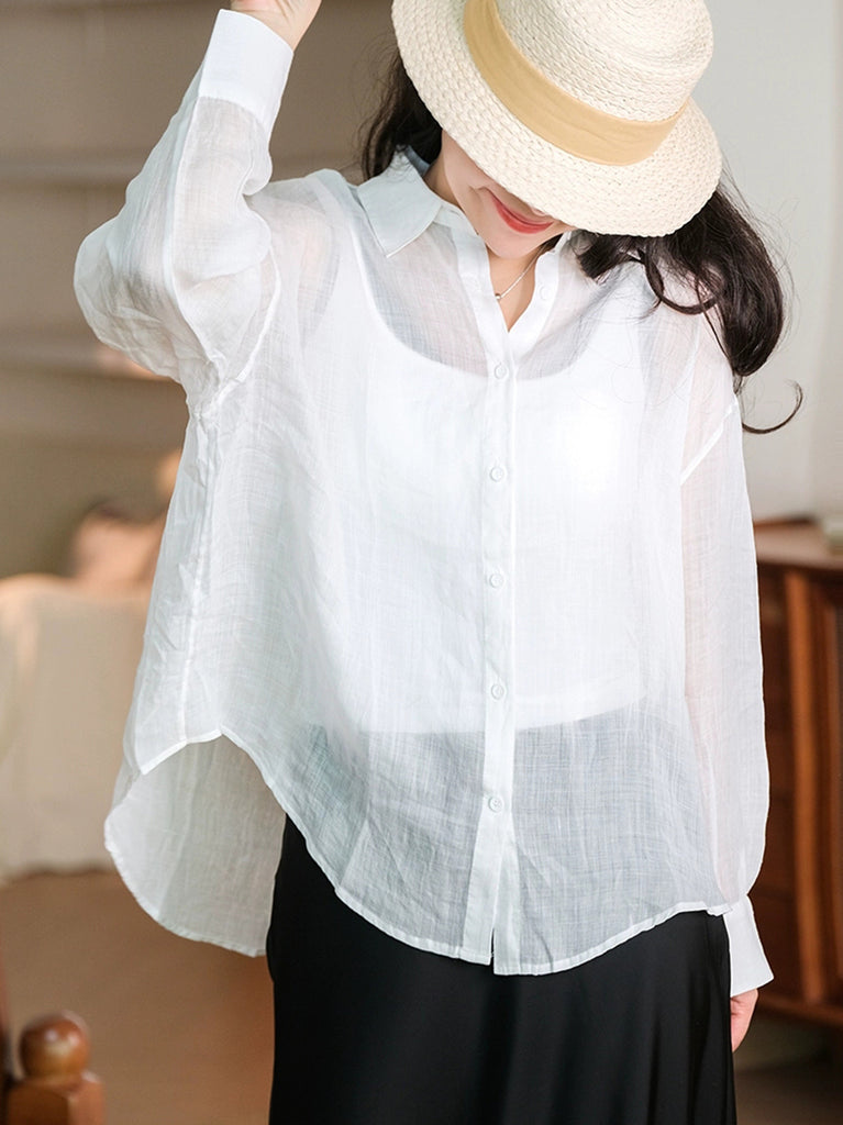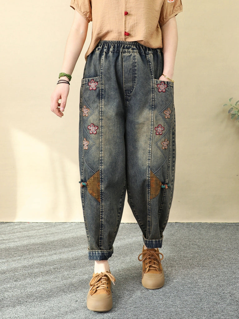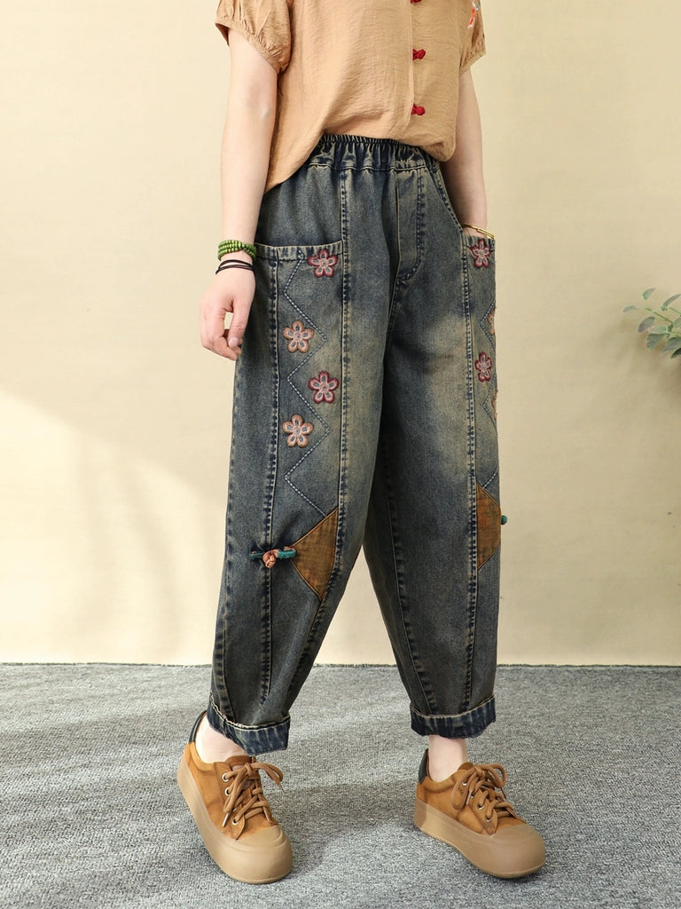 Women Summer Retro Embroidery O-Neck 100%Ramie Shirt