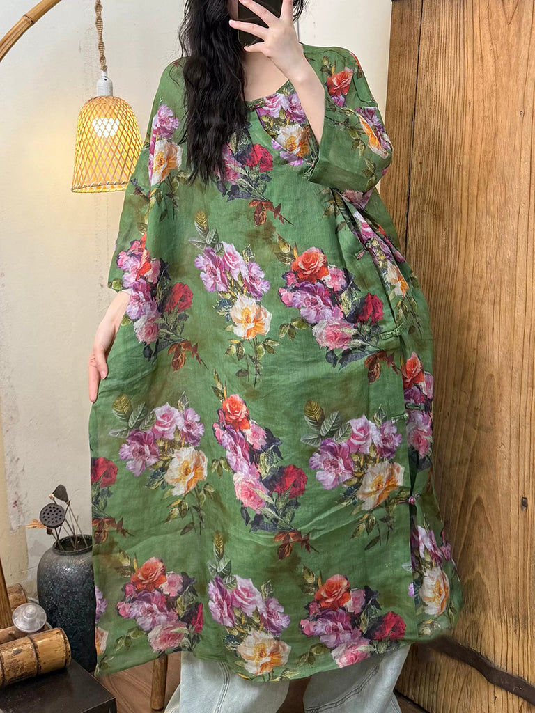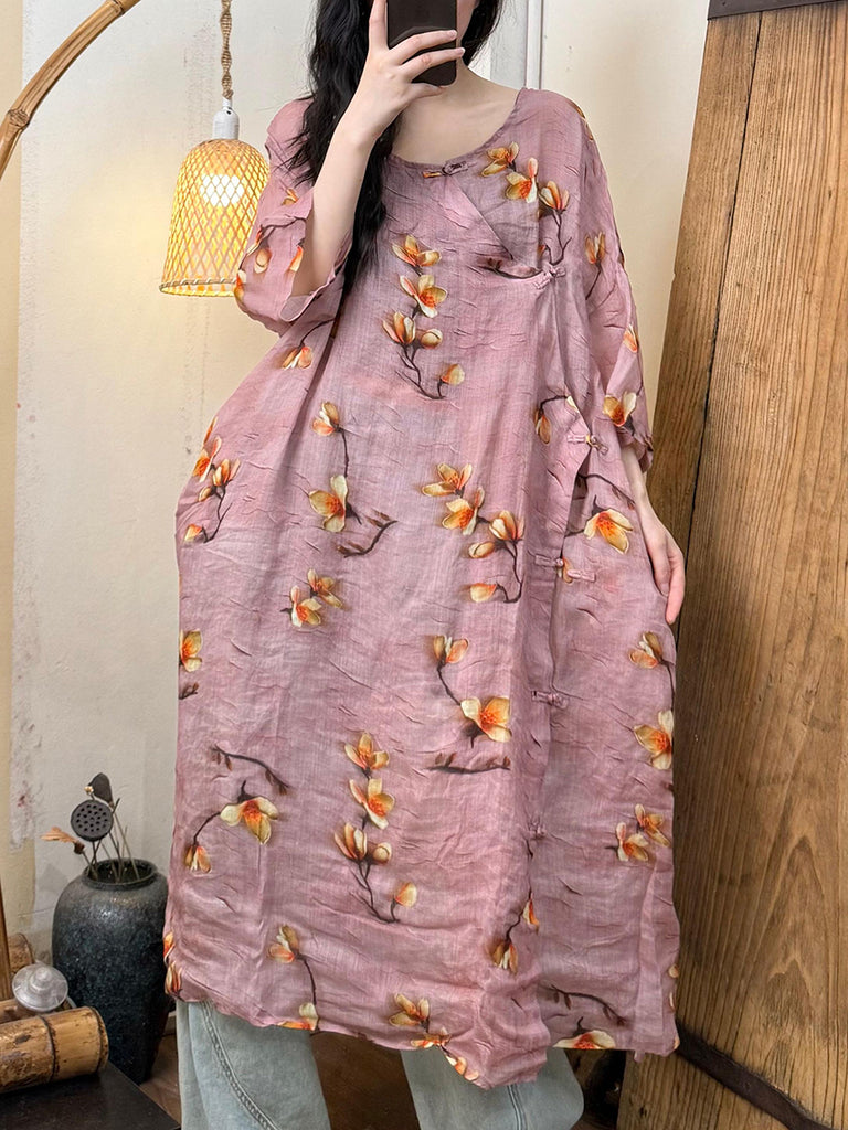 Plus Size Women Summer Artsy Print O-Neck Loose Dress
