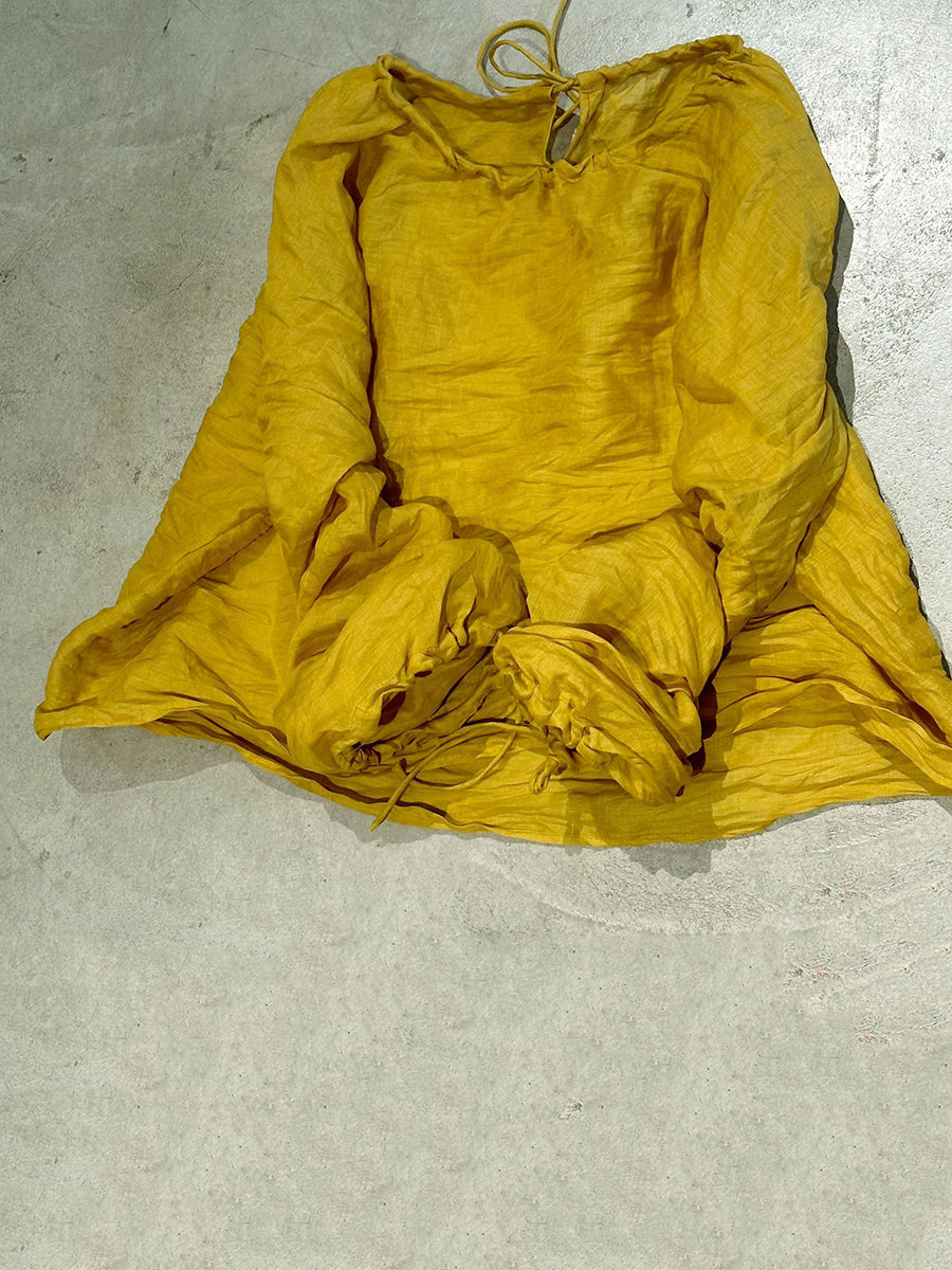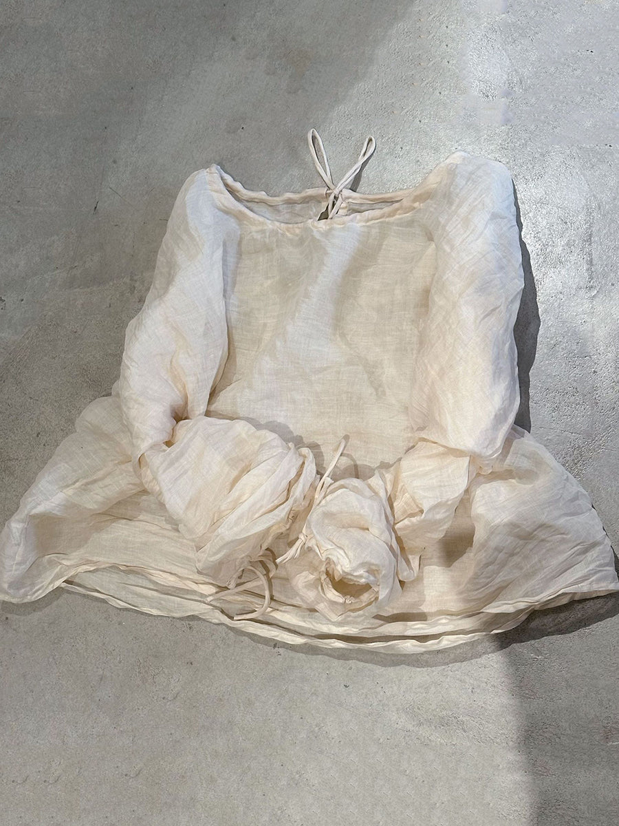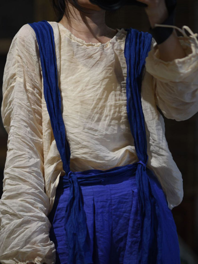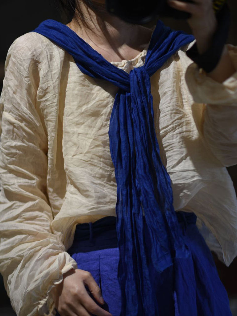 Women Summer Artsy Pure Color O-Neck Ramie Shirt