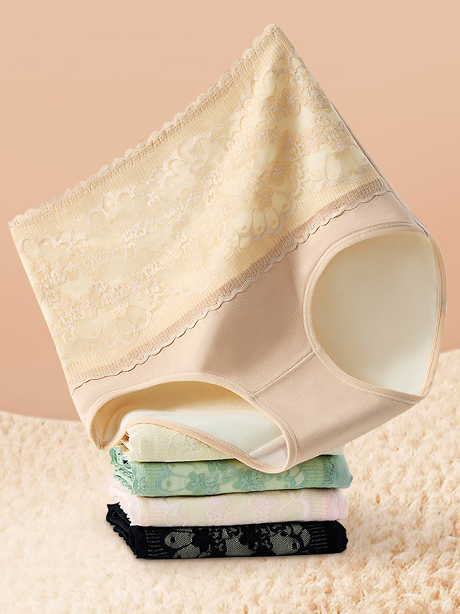 3 Pieces Women Pure Color High Waist Cotton Underwear