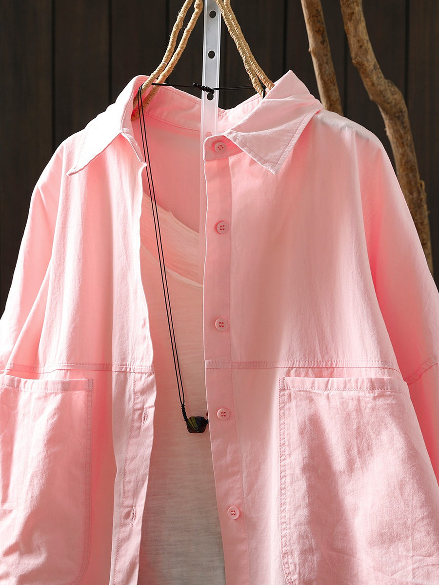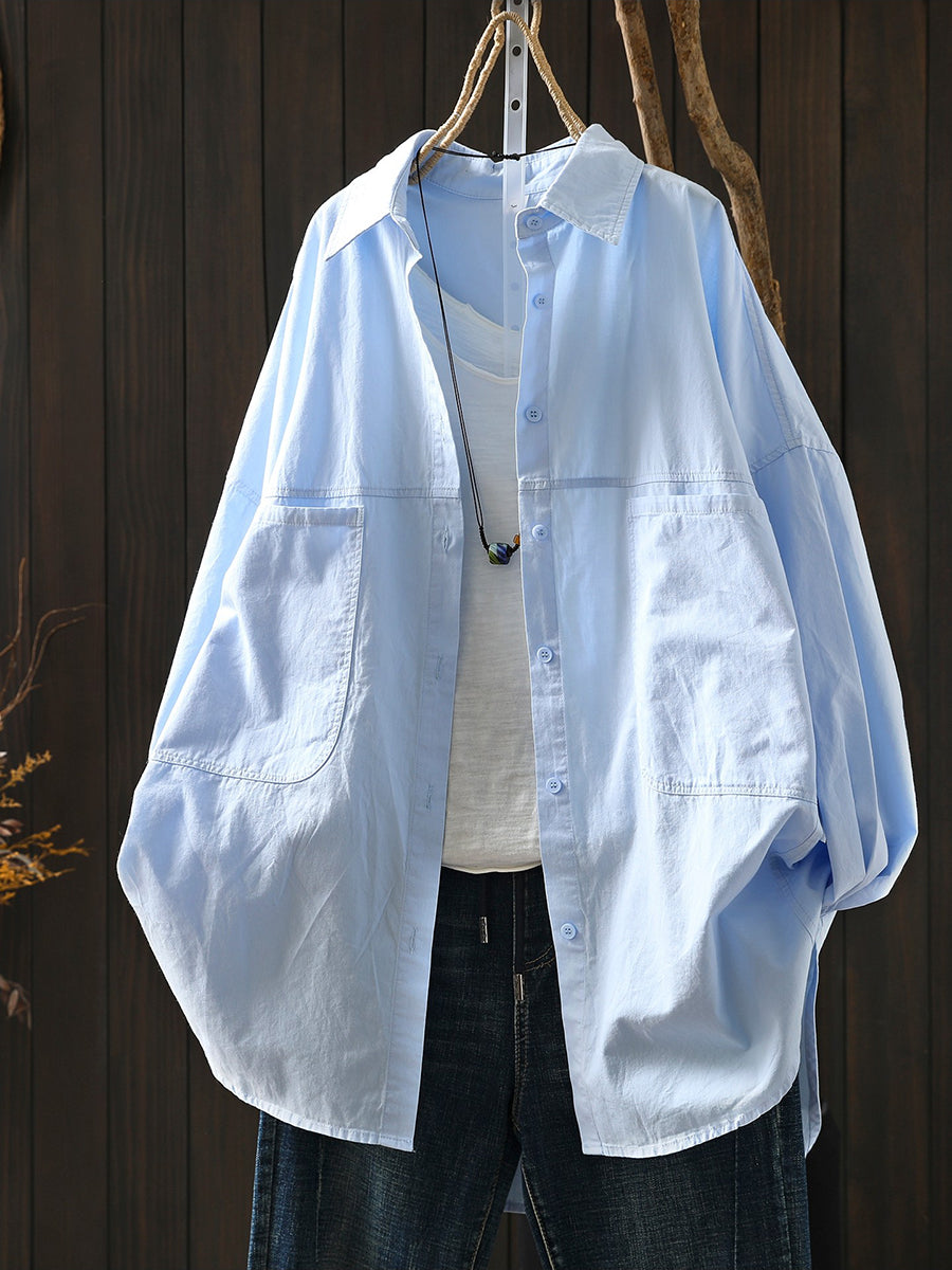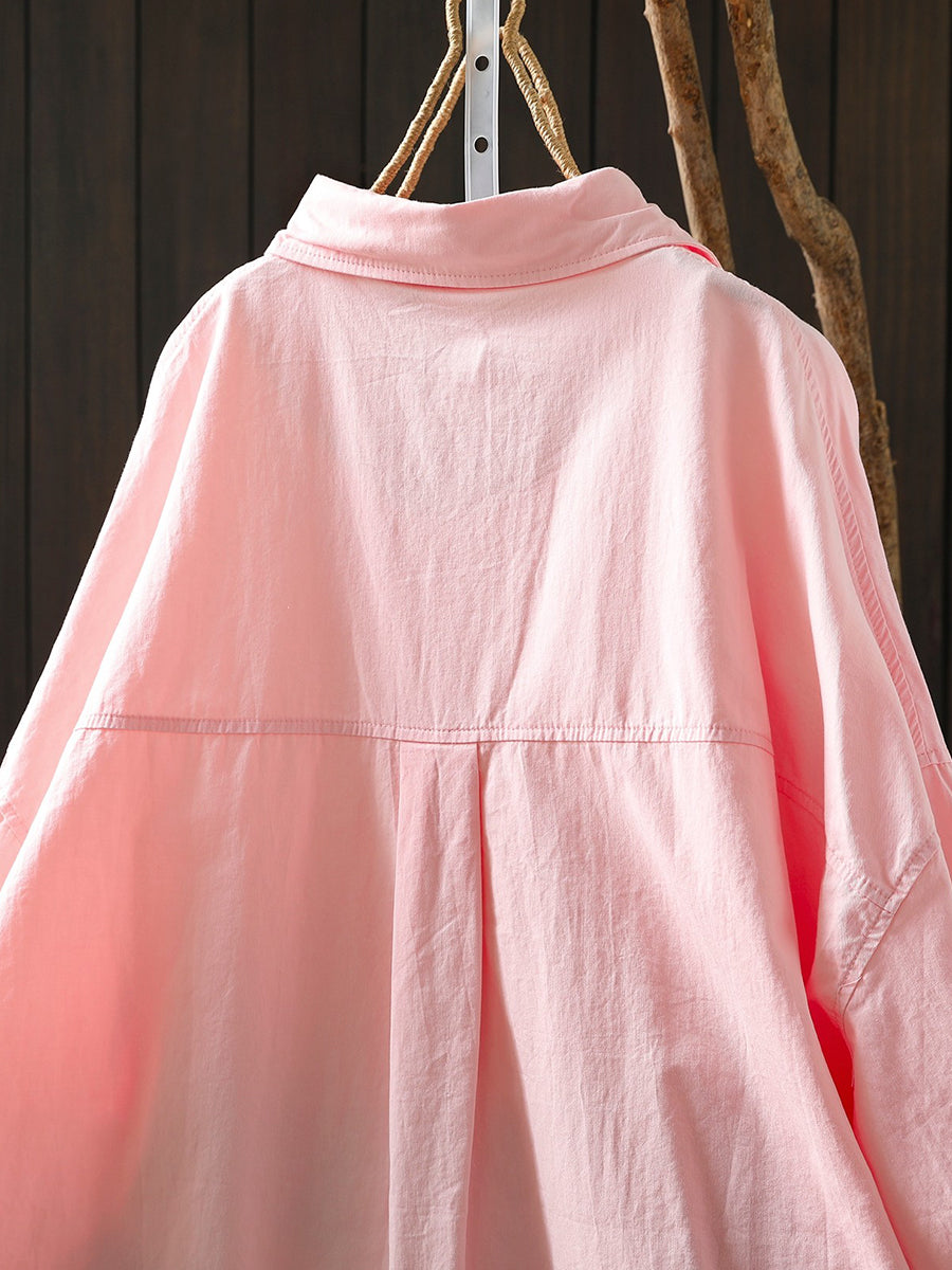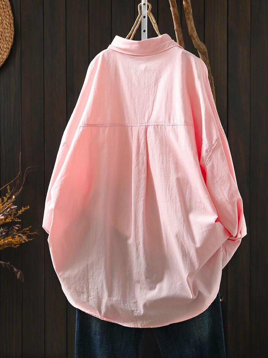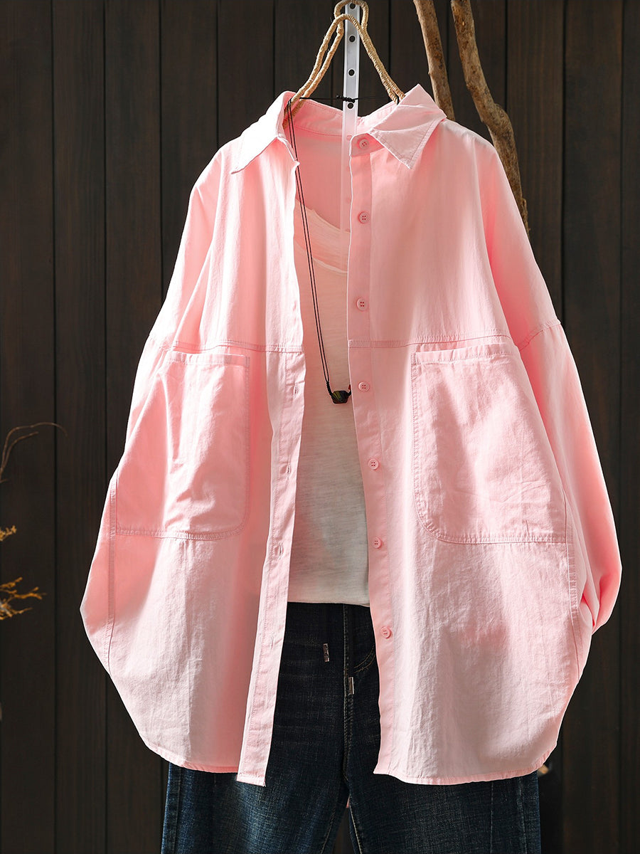 Women Spring Casual Pure Color Turn-down Collar Shirt