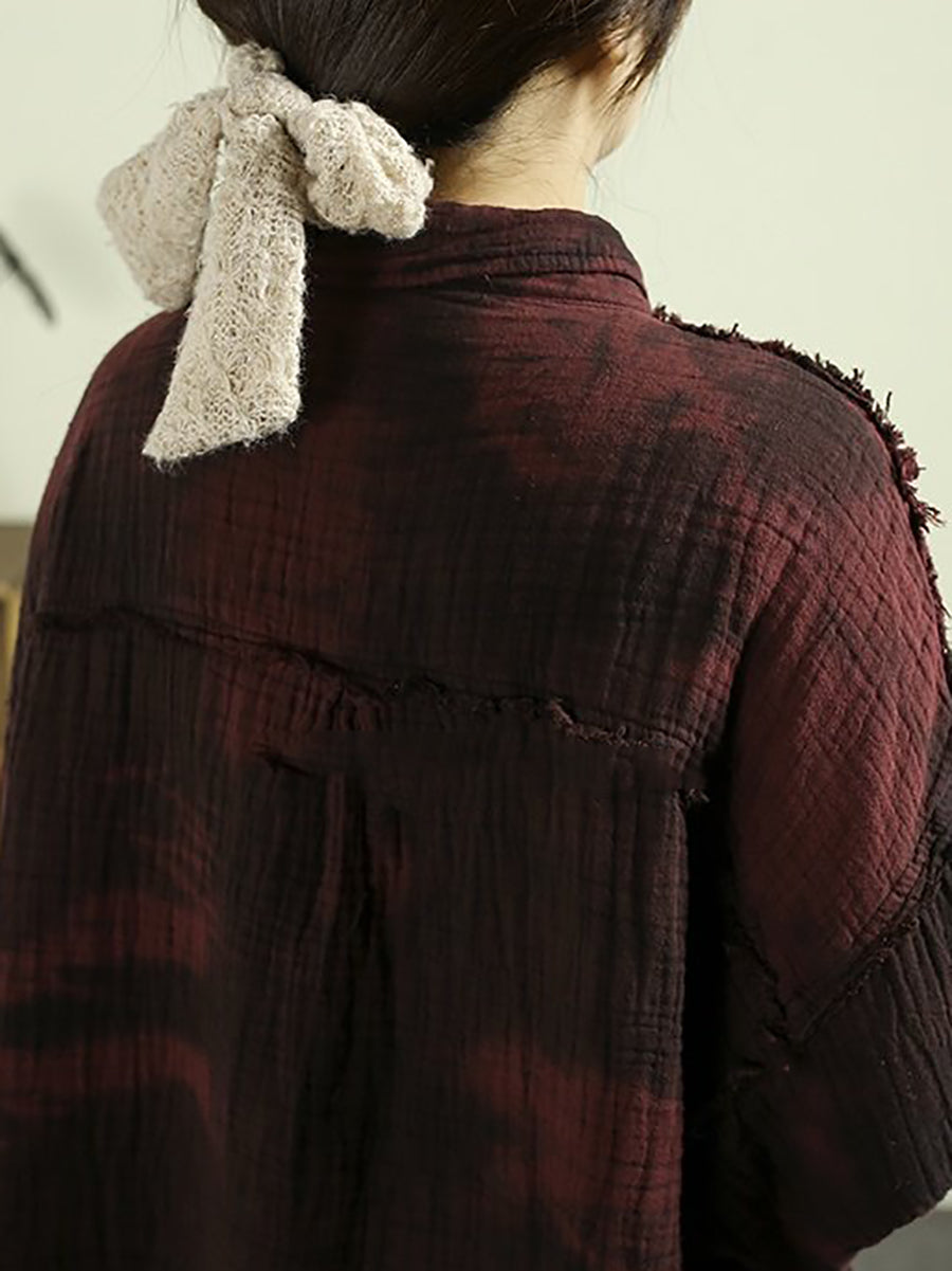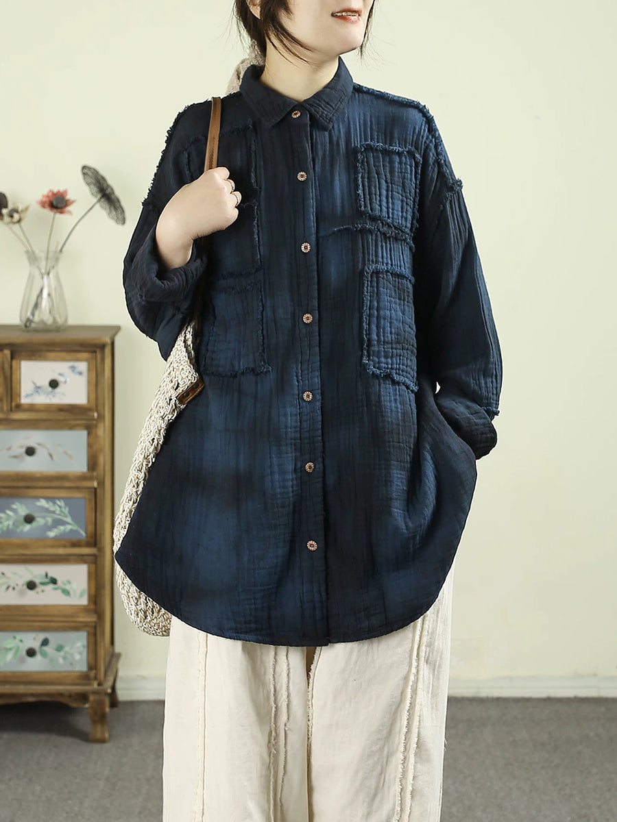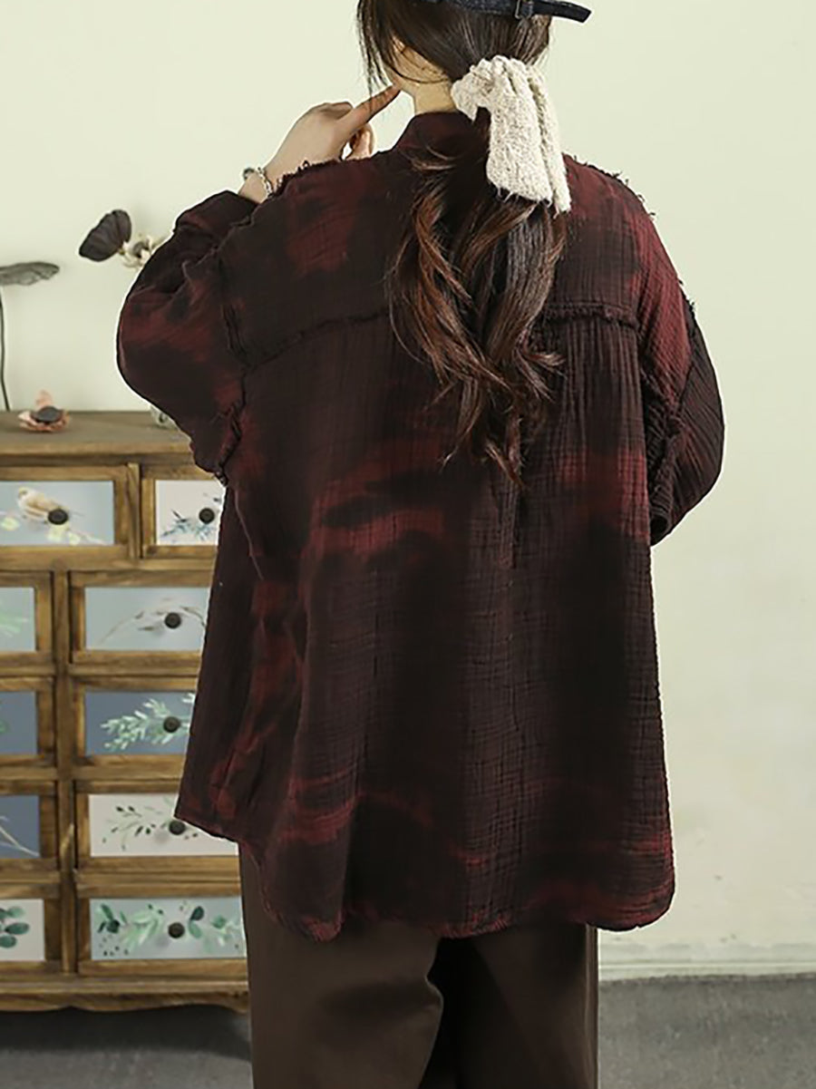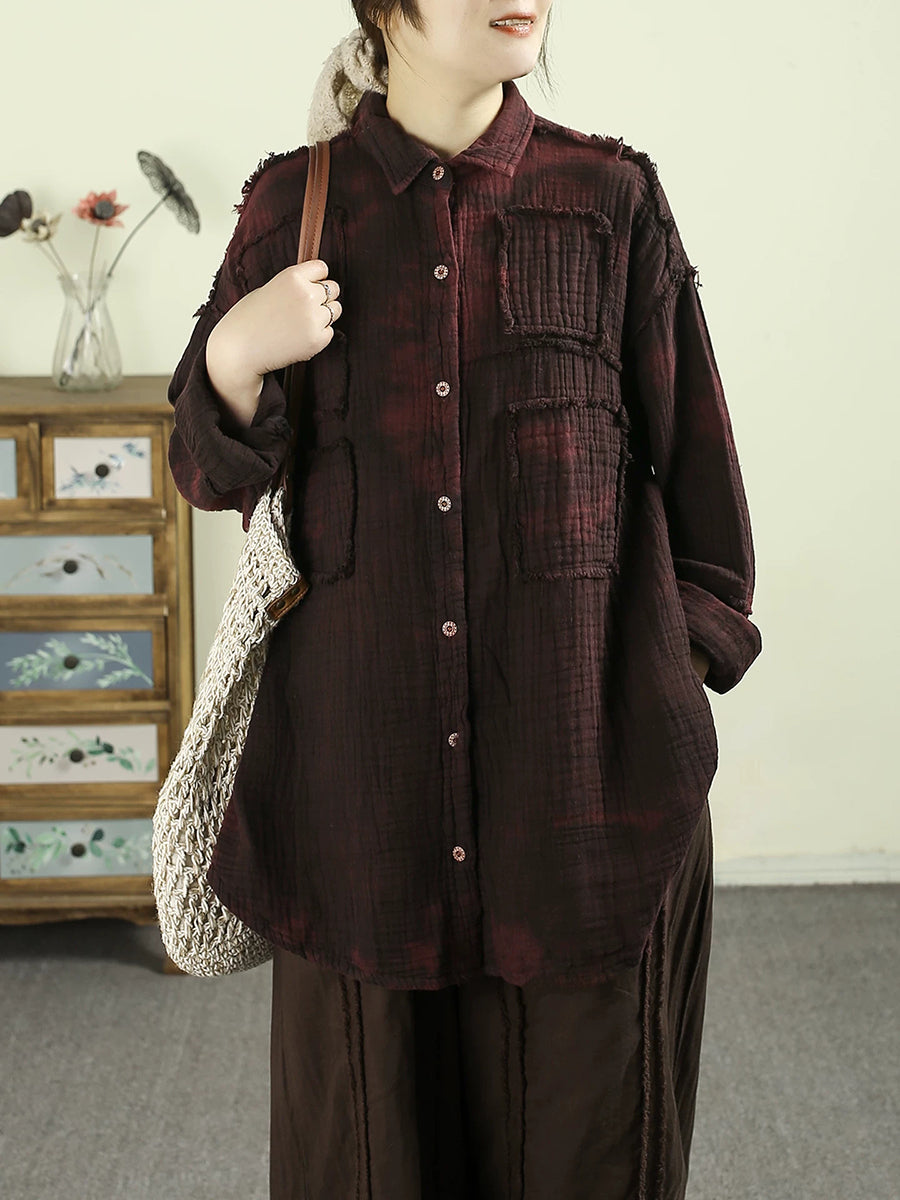 Women Spring Vintage Tie-dye 100%Cotton Shirt
