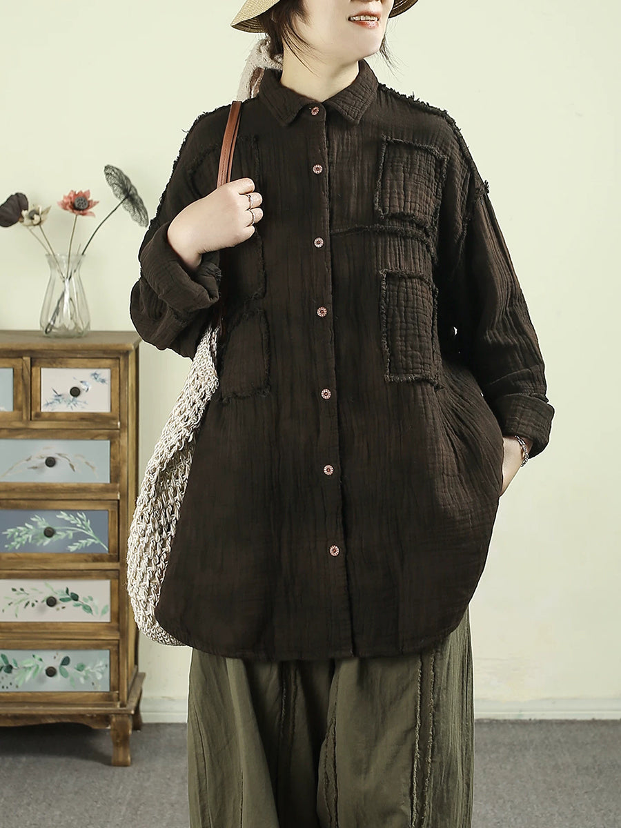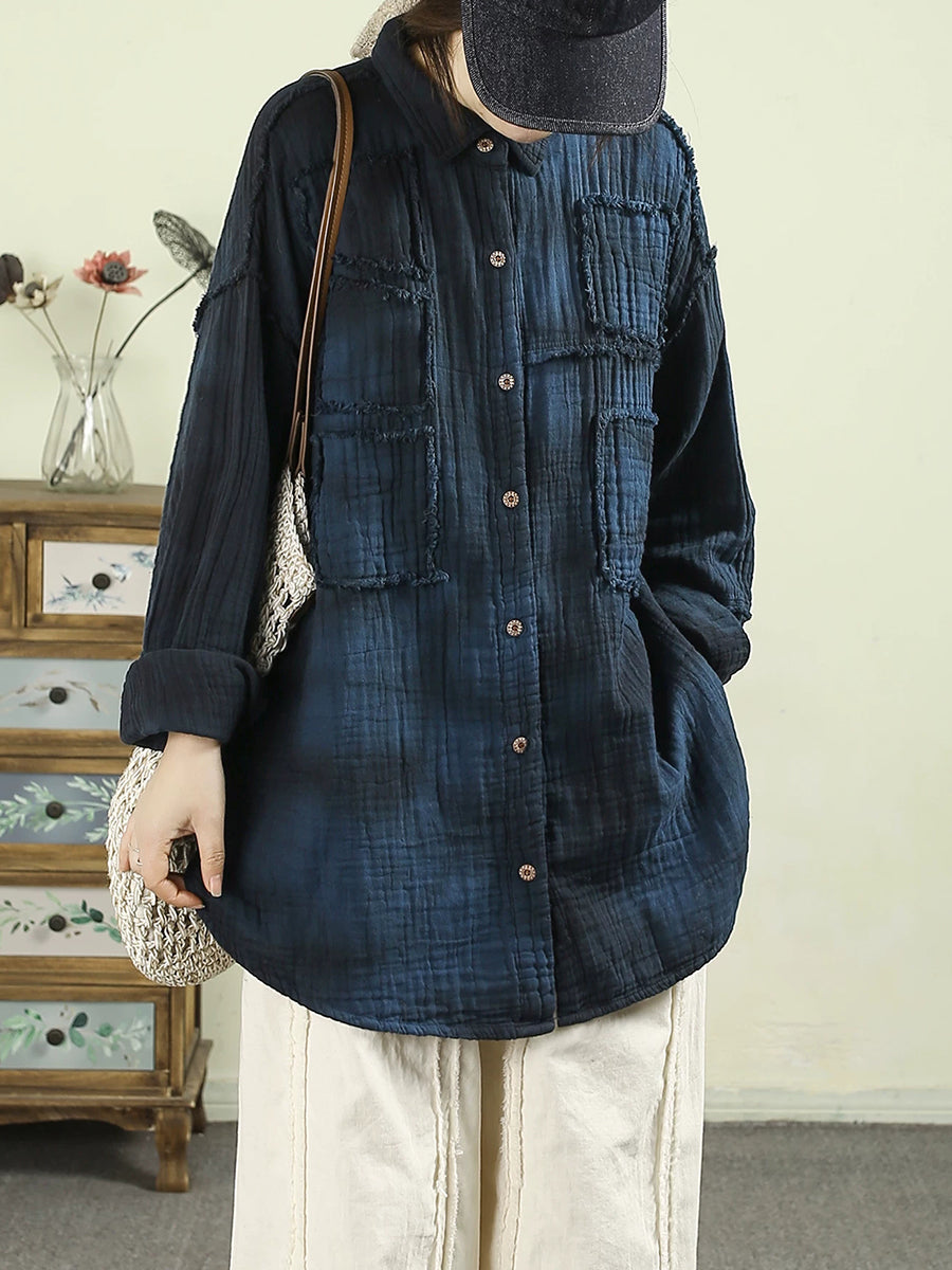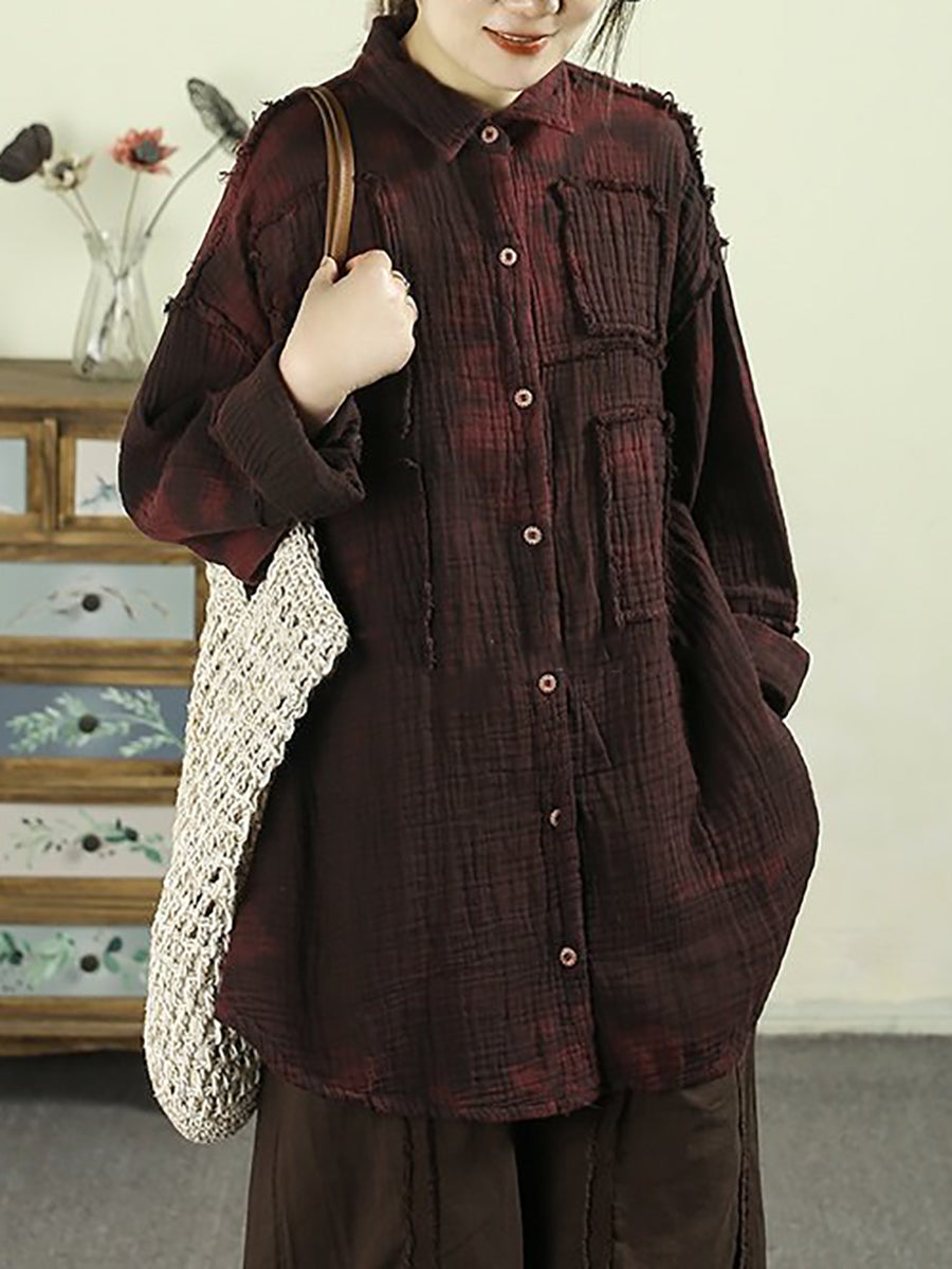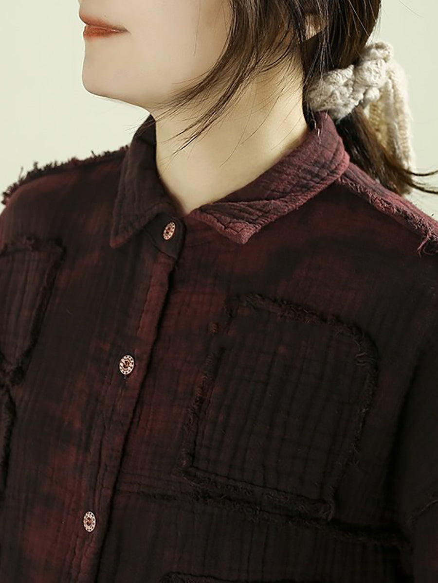 Women Spring Vintage Tie-dye 100%Cotton Shirt