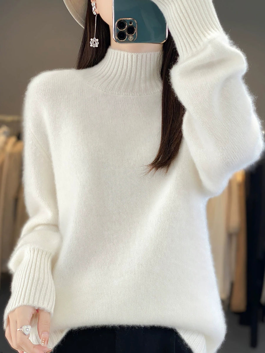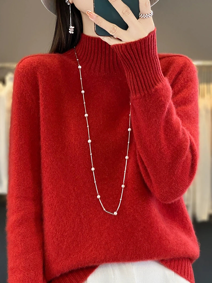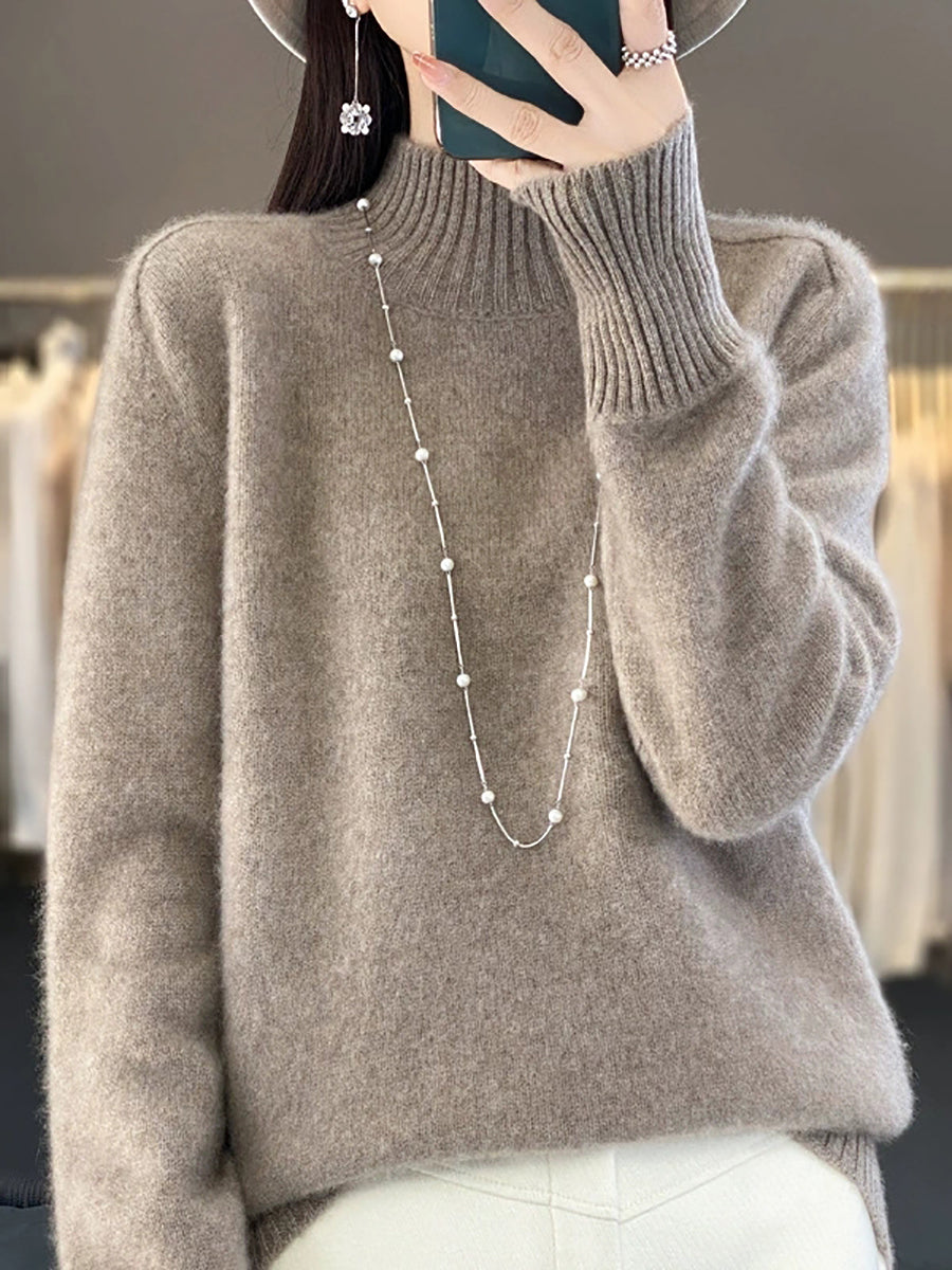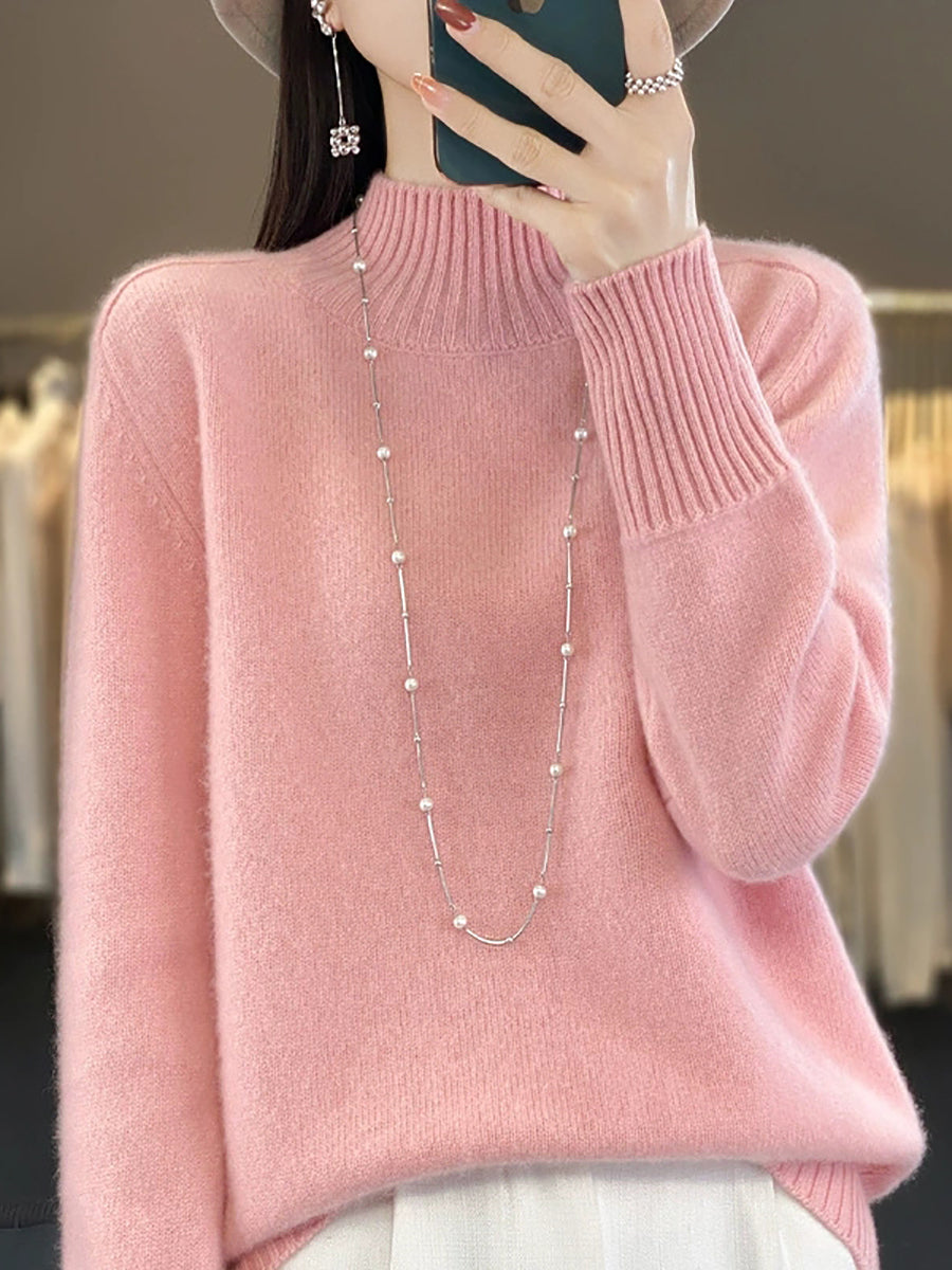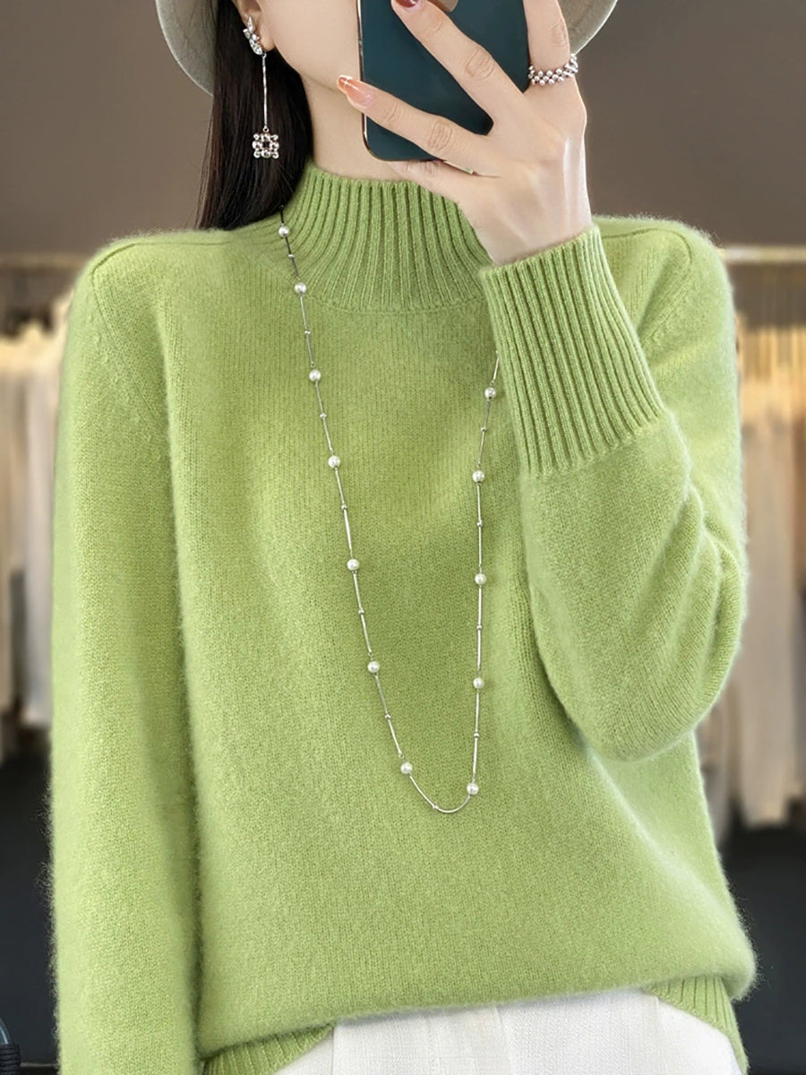 Women Winter Casual Half-turtleneck Pure Color Sweater