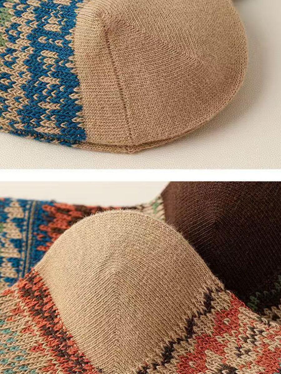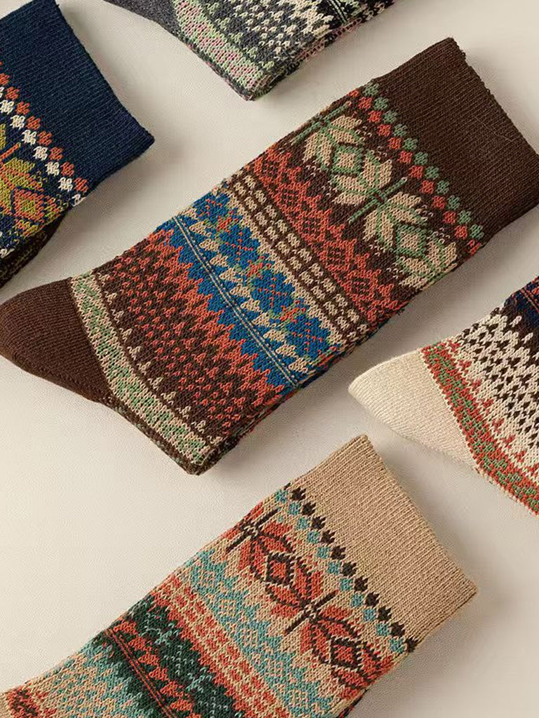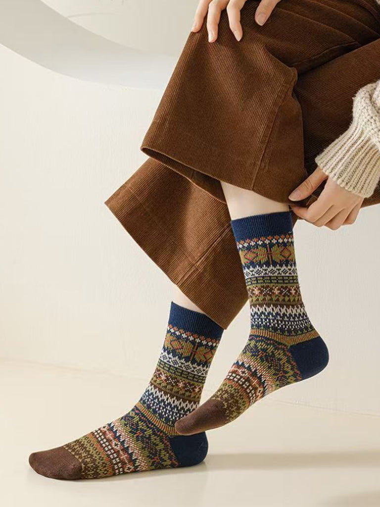6 Pairs Women Vintage Winter Stripe Cotton Socks