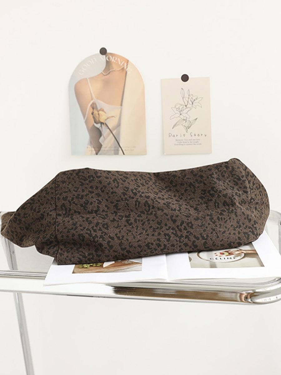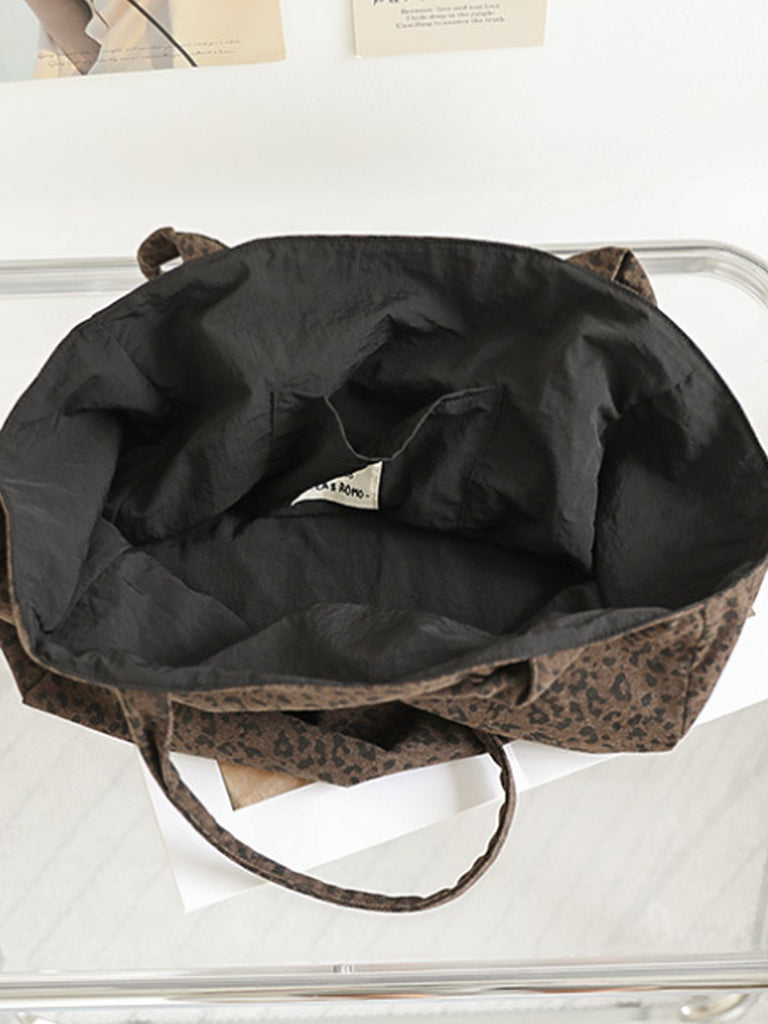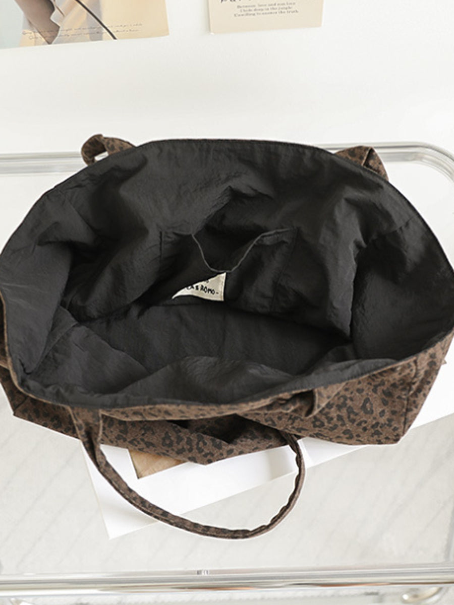 Women Vintage Leopard Print Dual-side Shoulder Bag