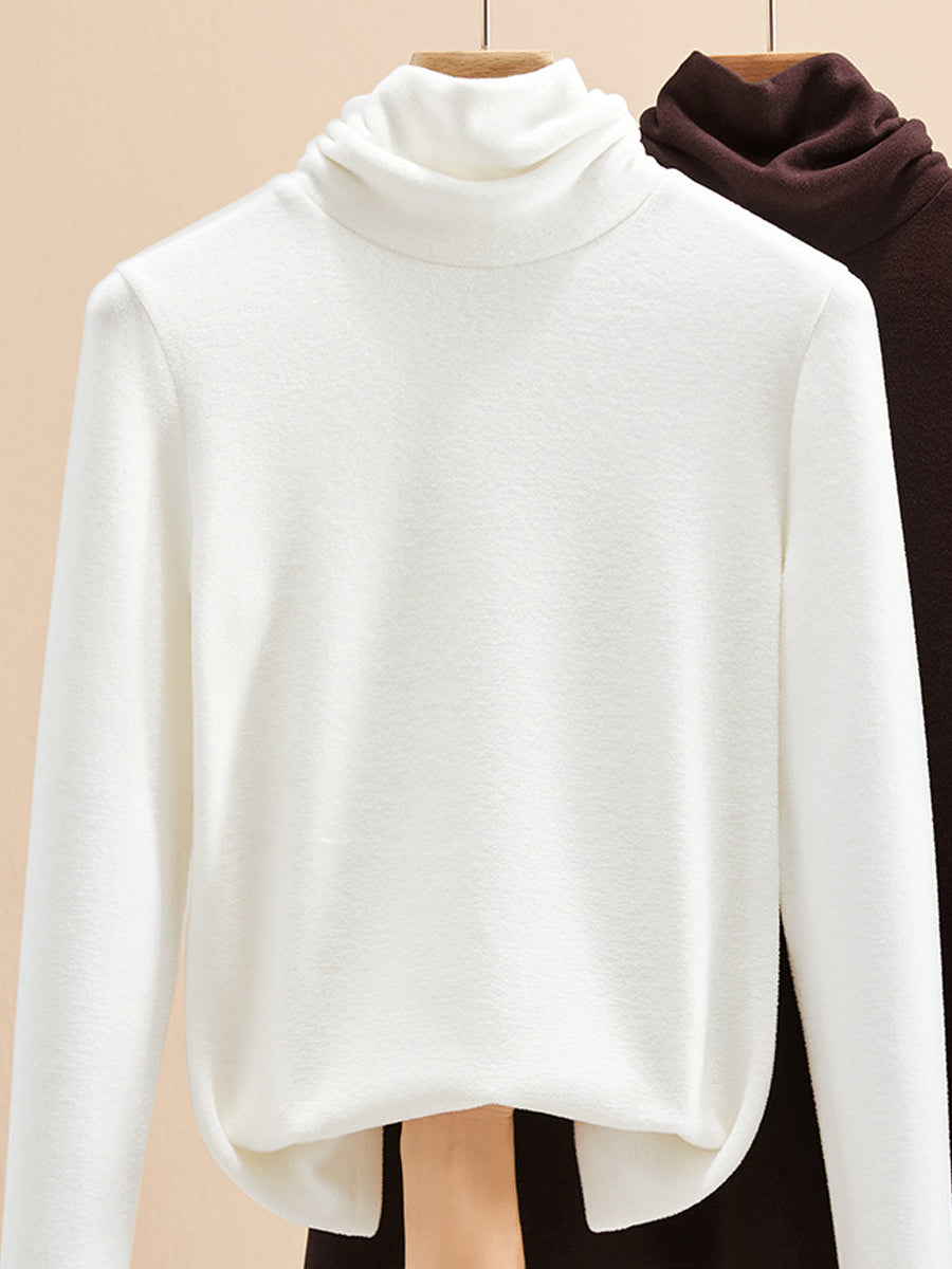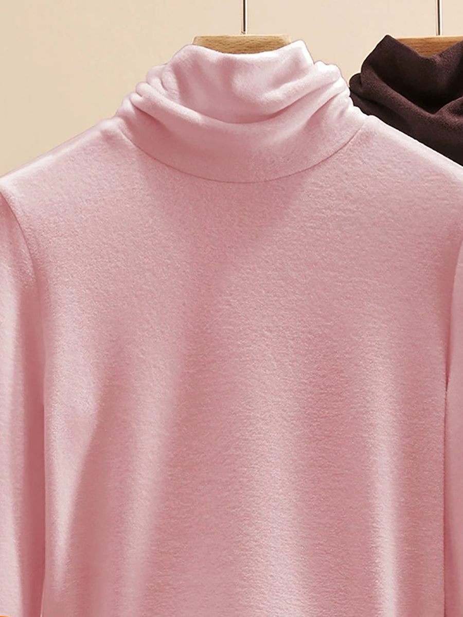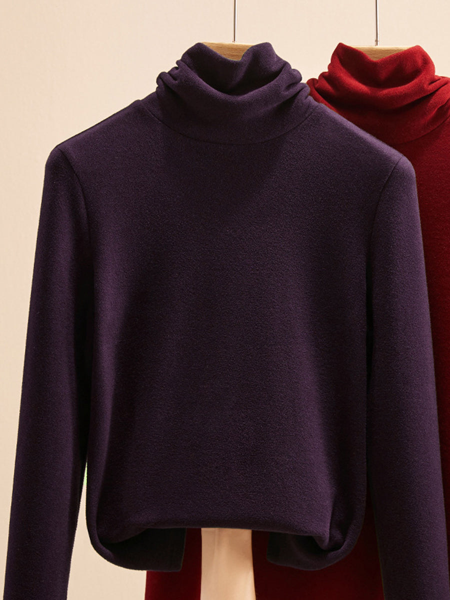 Women Winter Pure Color Turtleneck Bottom Blouse