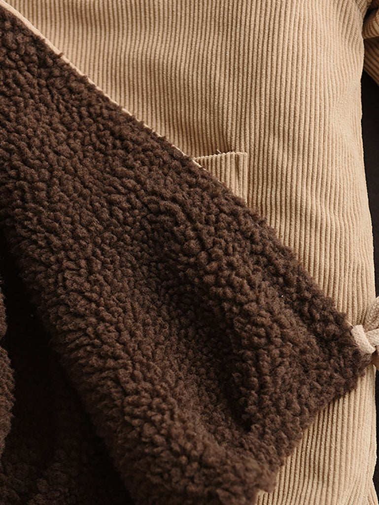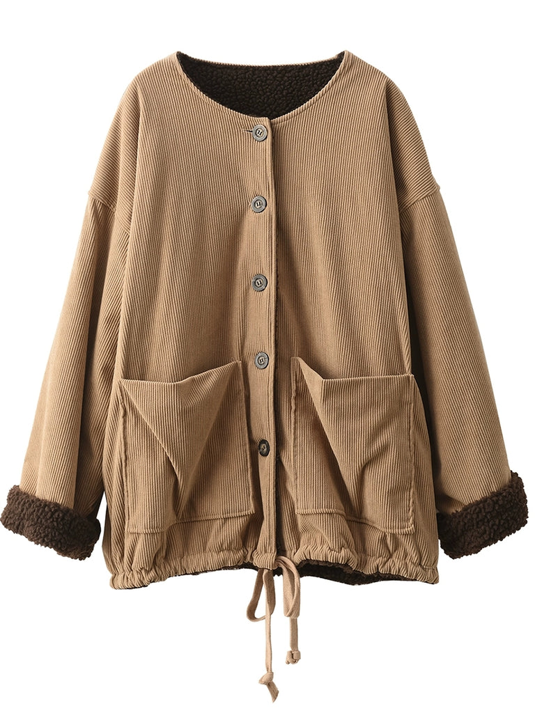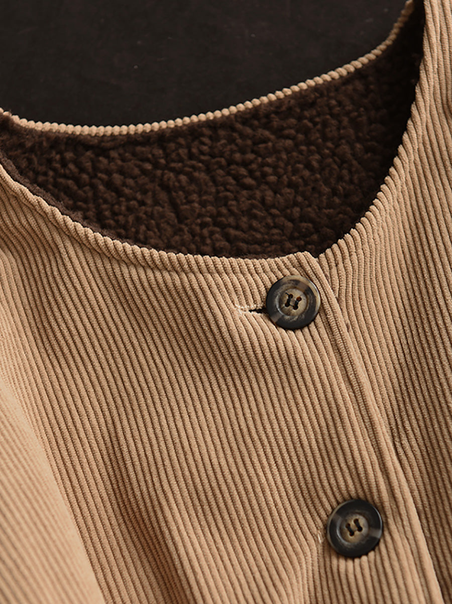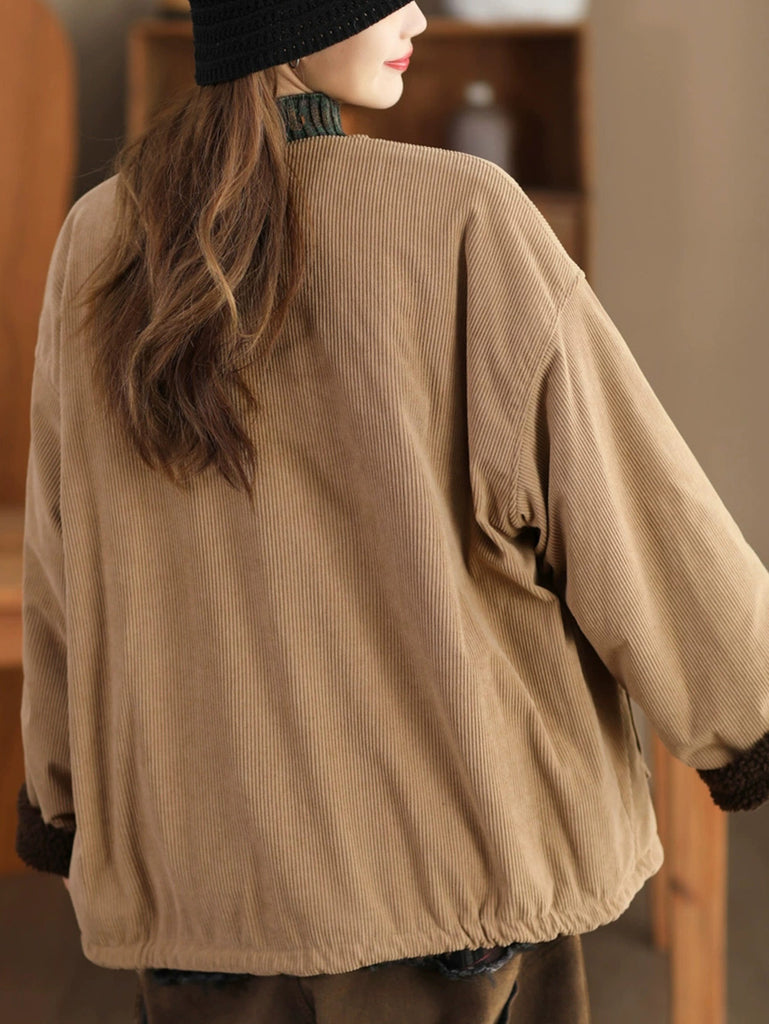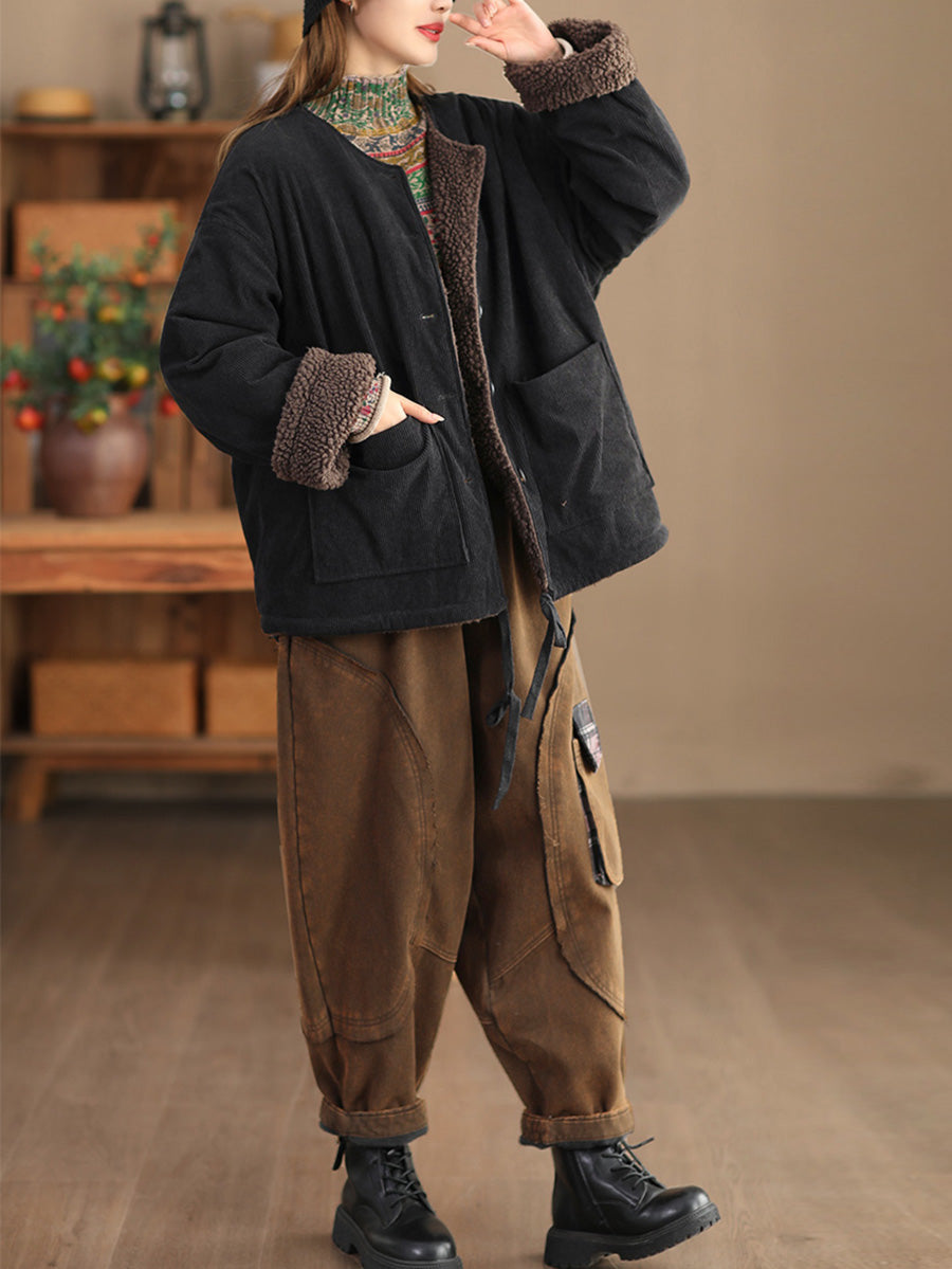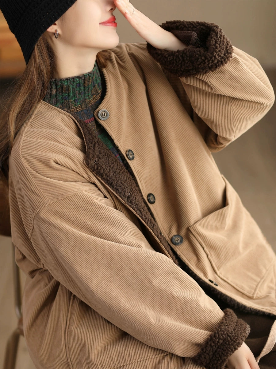Women Vintage Winter O-Neck Fleece-lined Jacket