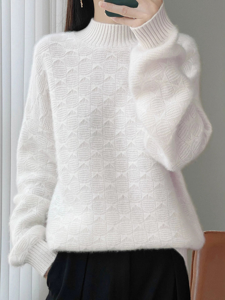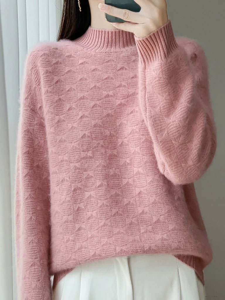 Women Vintage Autumn Bowknot Half-Turtleneck Sweater