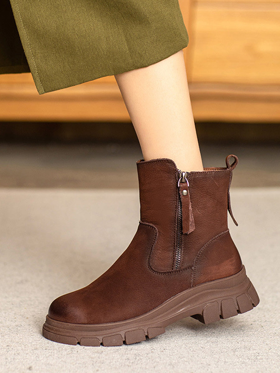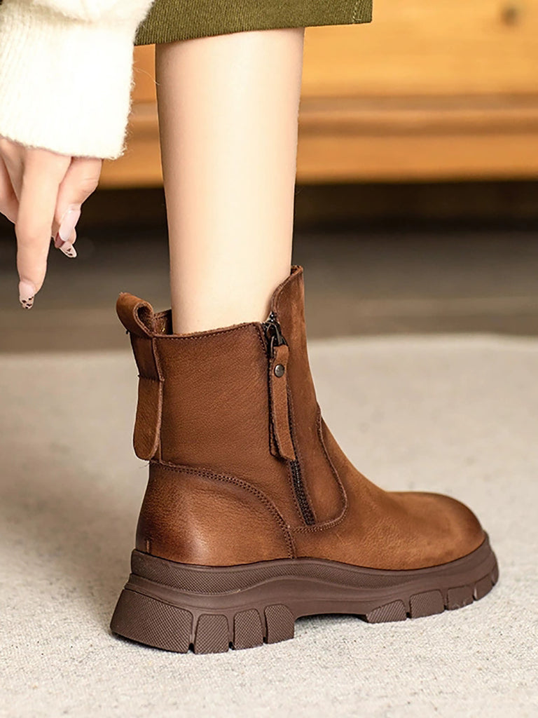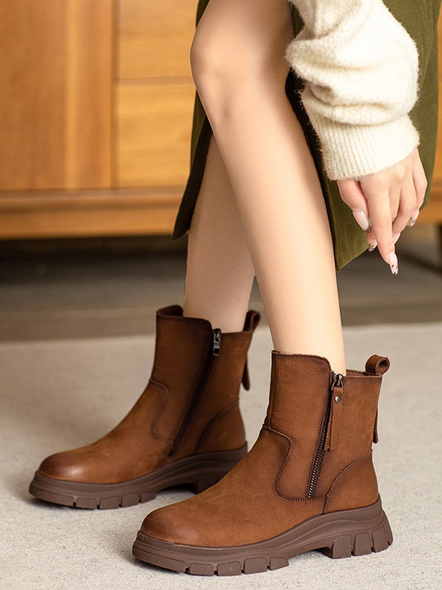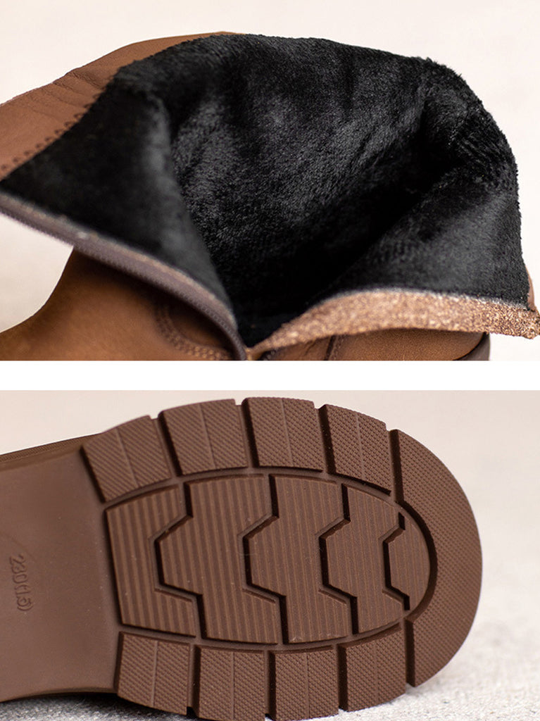 Women Vintage Genuine Leather Fleece-lined Boots
