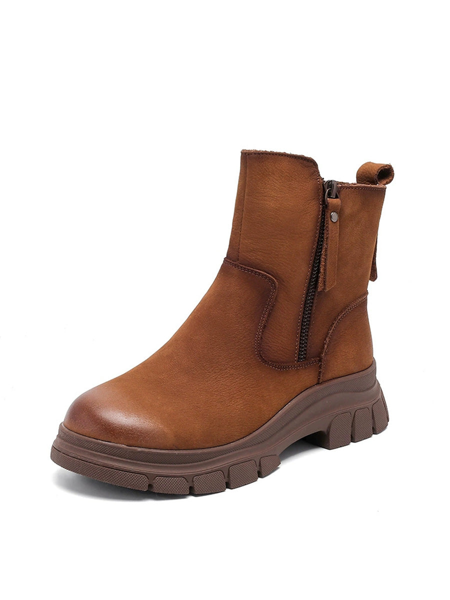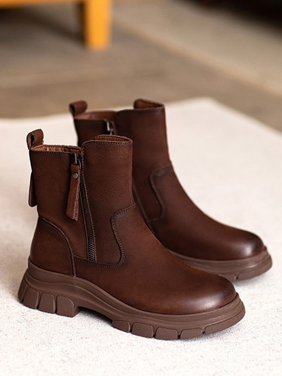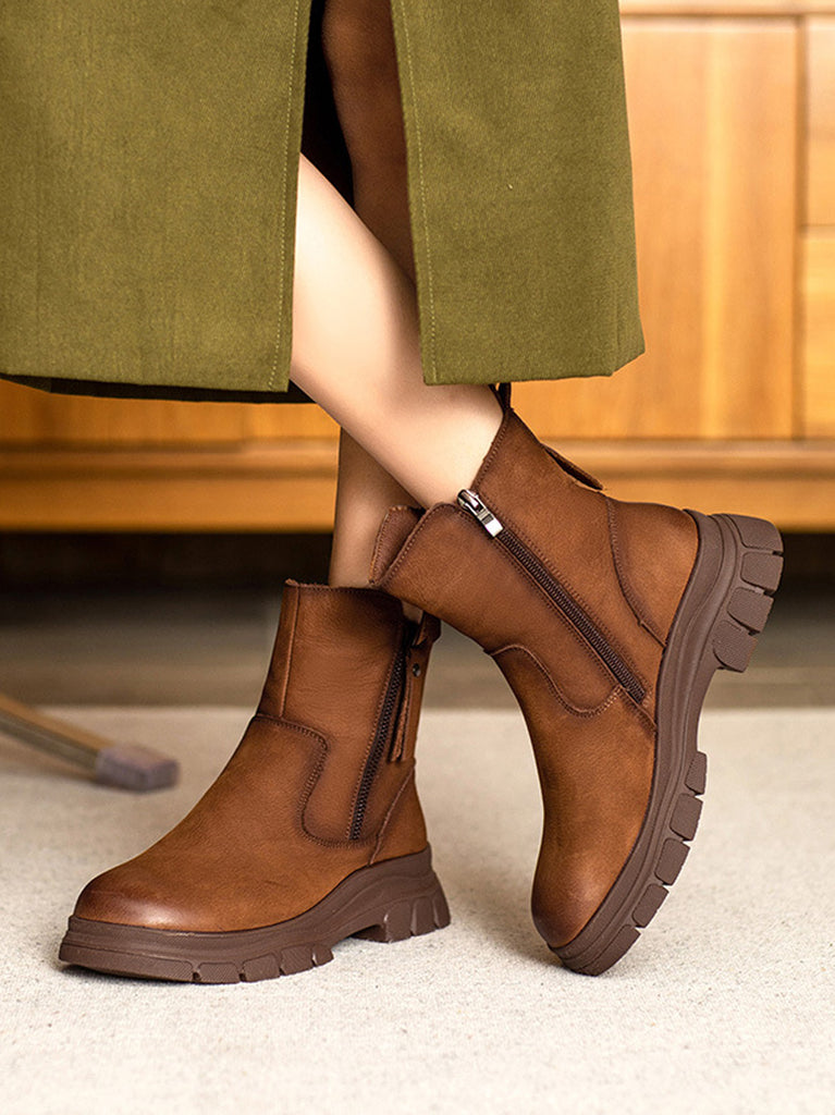 Women Vintage Genuine Leather Fleece-lined Boots