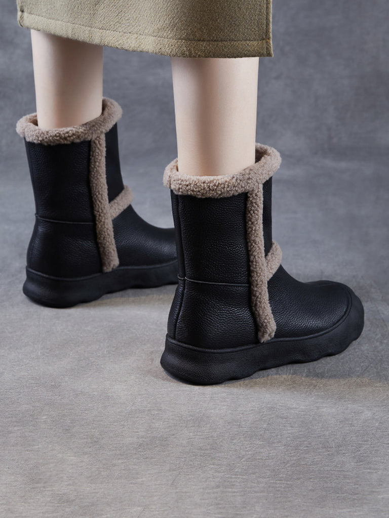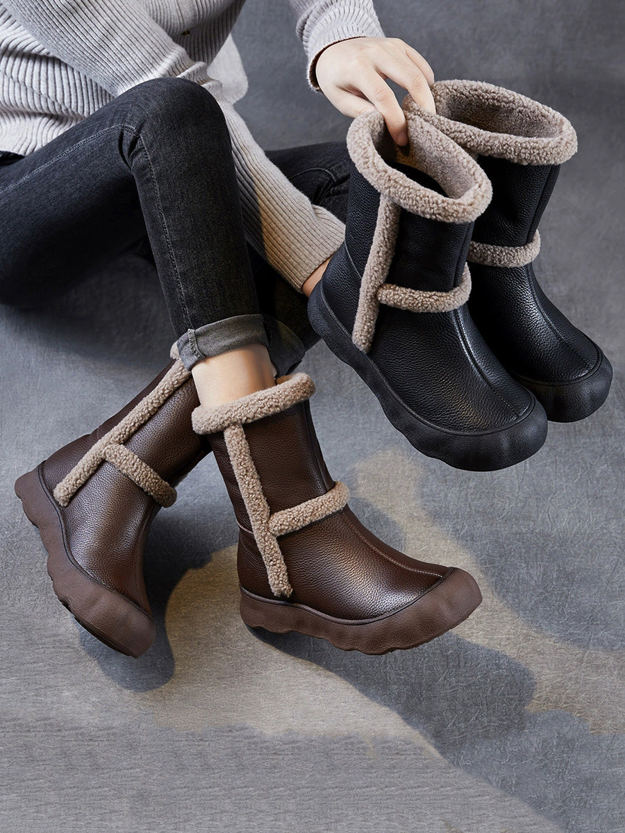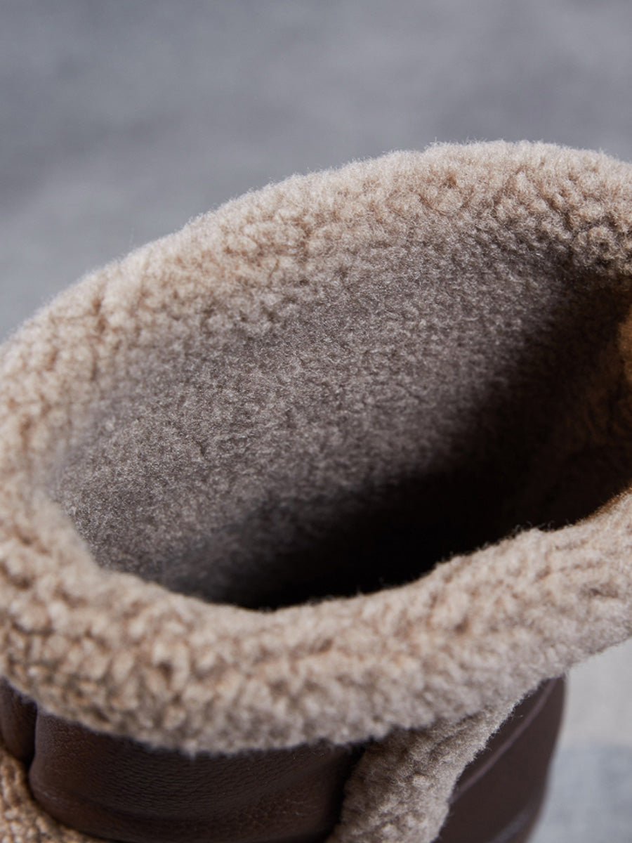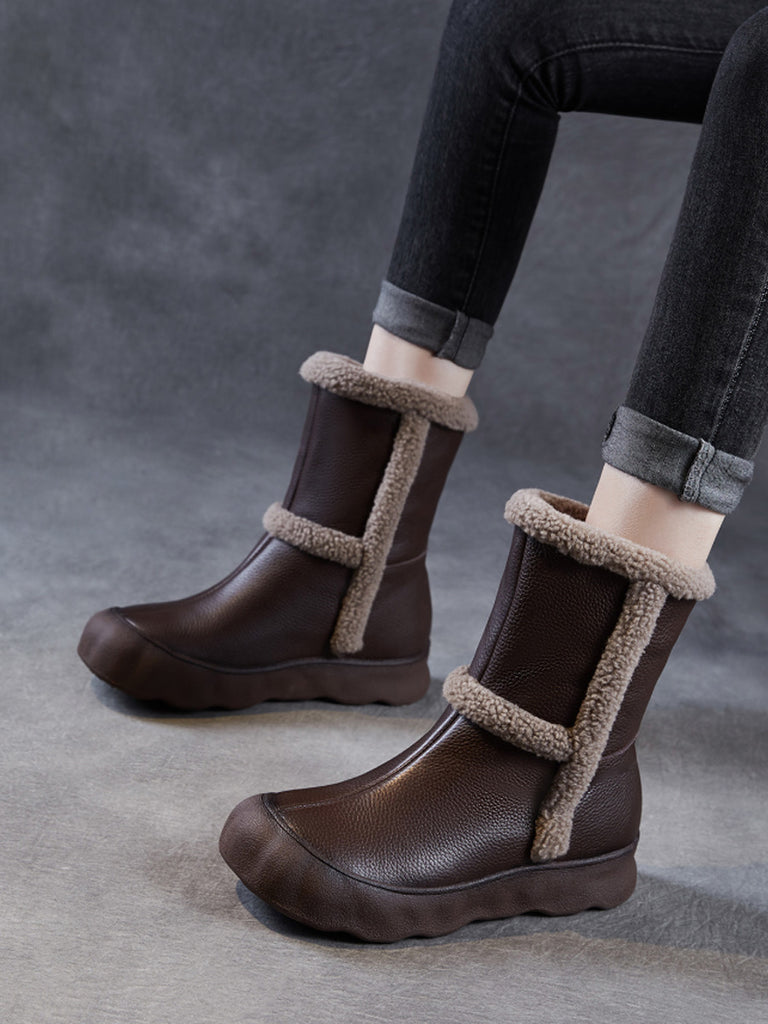 Women Vintage Genuine Leather Spliced Fleece-lined Boots