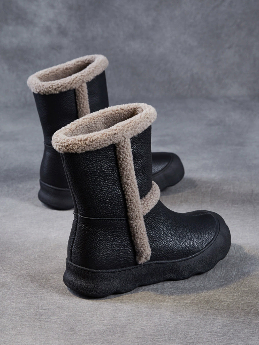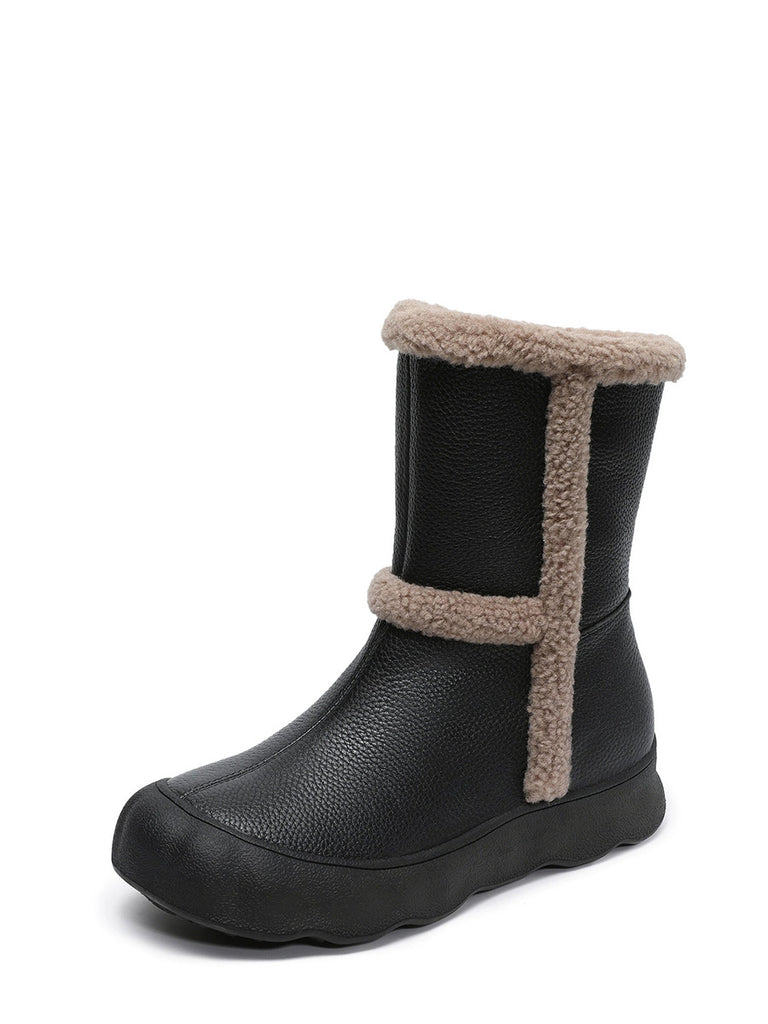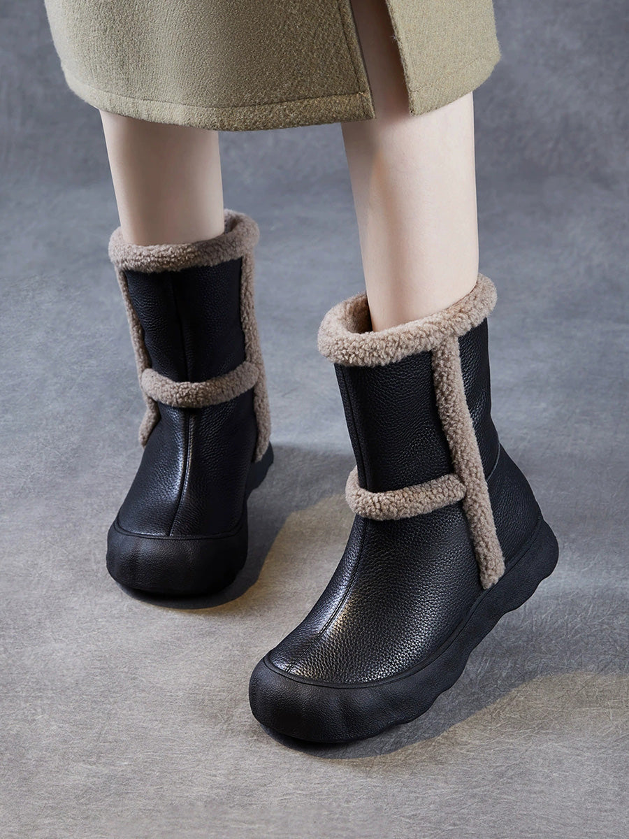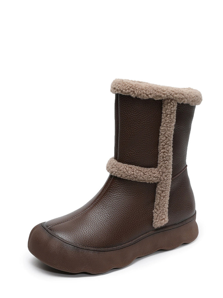 Women Vintage Genuine Leather Spliced Fleece-lined Boots