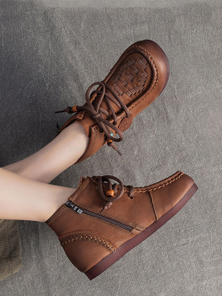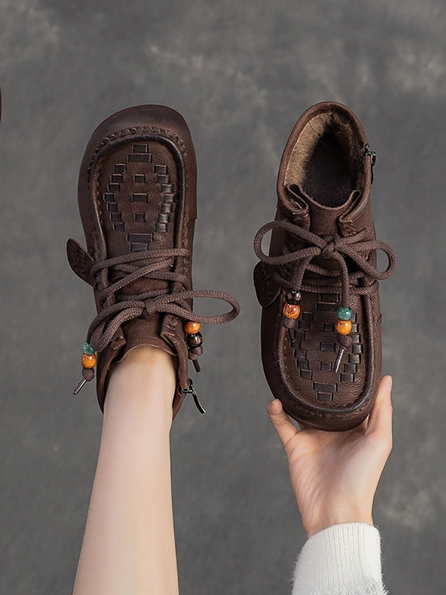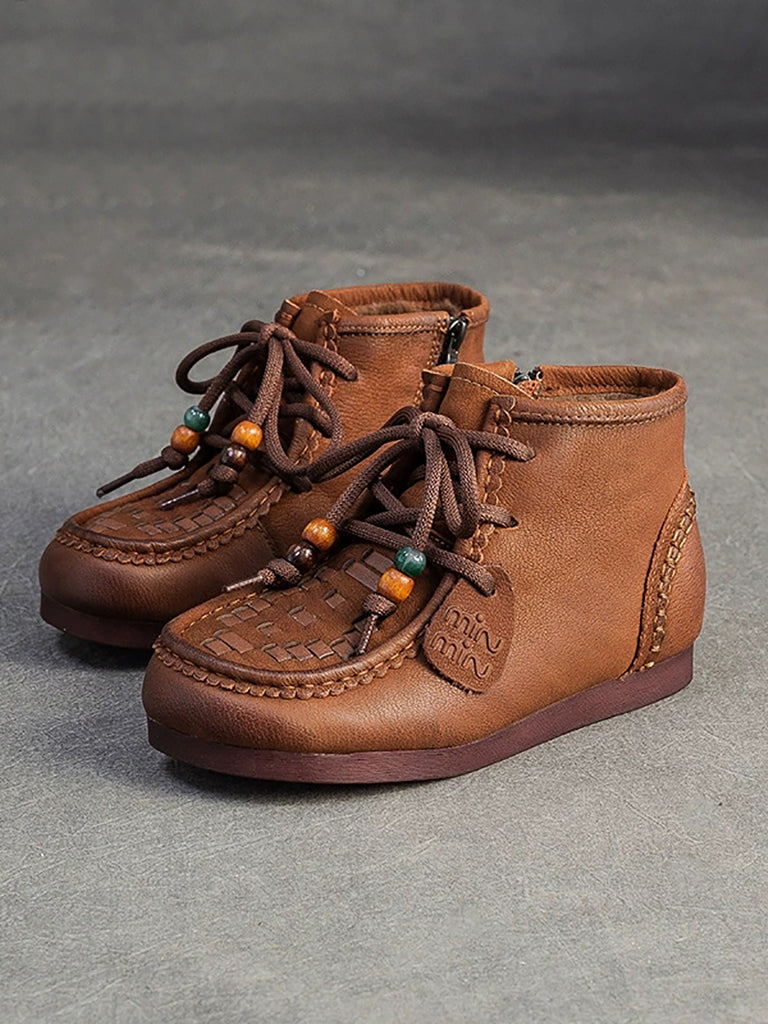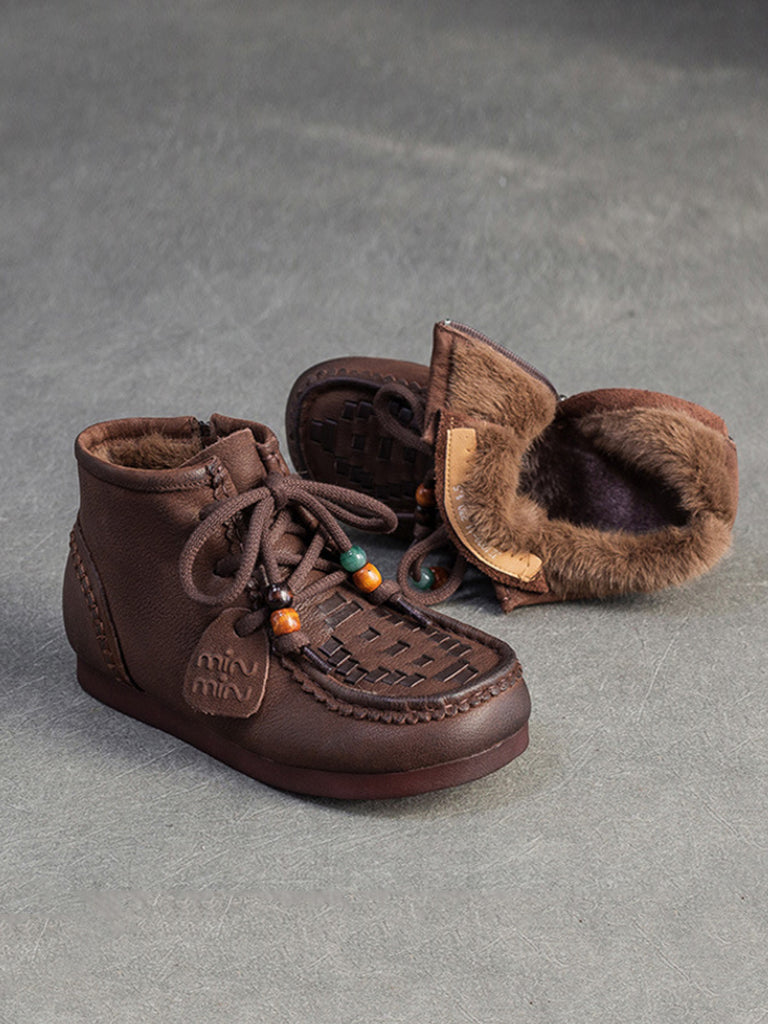 Women Winter Genuine Leather Spliced Fleece-lined Boots