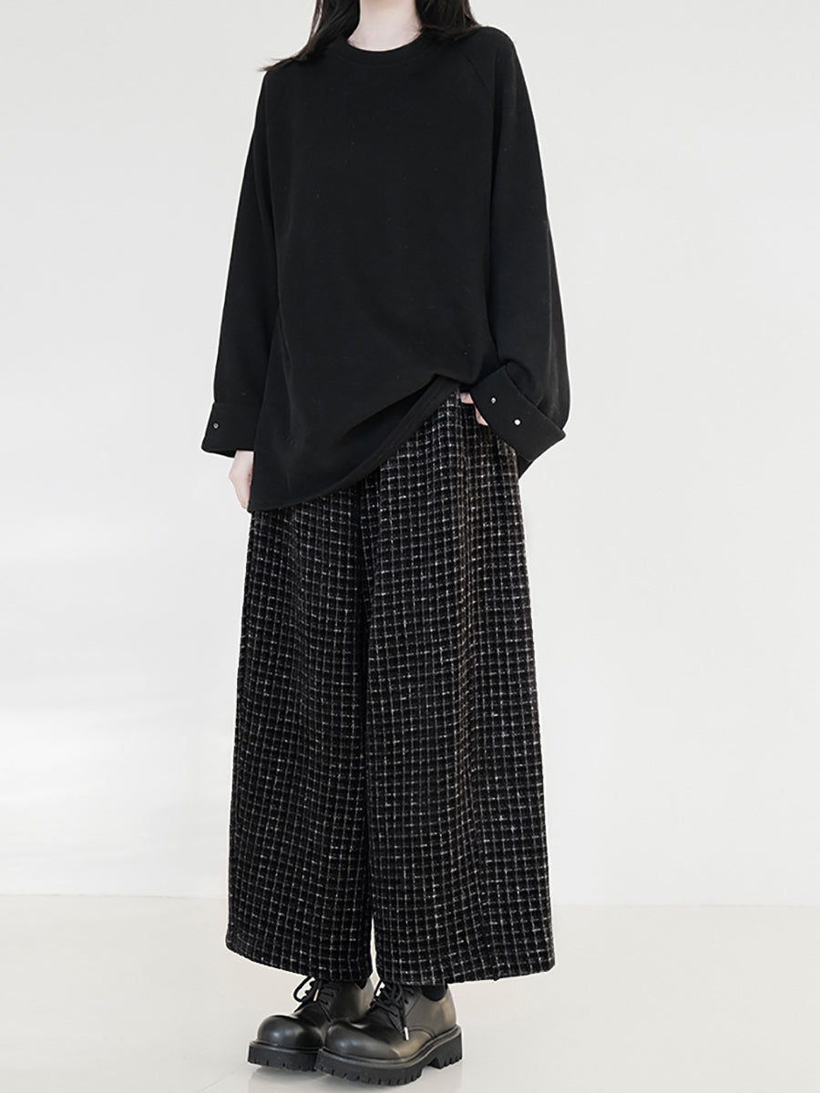 Plus Size Women Vintage Plaid Fleece-lined Staight Pants