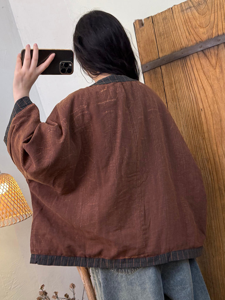 Crafted from premium linen, this vintage-inspired padded coat features a timeless striped pattern that effortlessly bridges seasons. The relaxed O-neck collar and distinctive raglan sleeves deliver both comfort and retro sophistication, while full-length sleeves provide essential warmth. Designed for autumn and winter wear, this piece combines classic tailoring with contemporary ease, making it an essential layering staple for the discerning wardrobe.