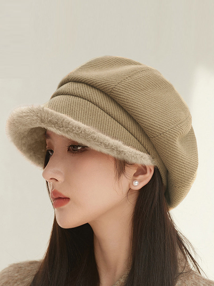 Winter Casual Pure Color Plush Spliced Hat