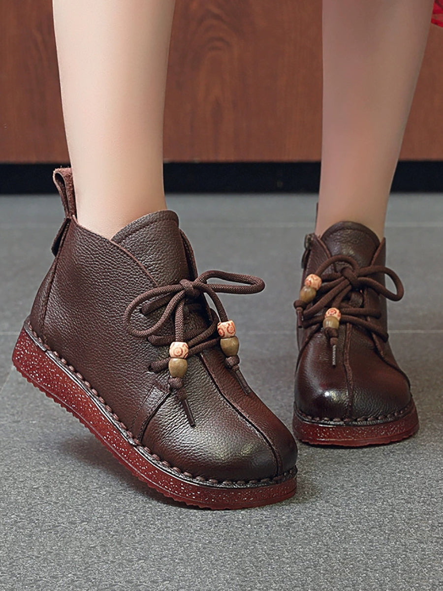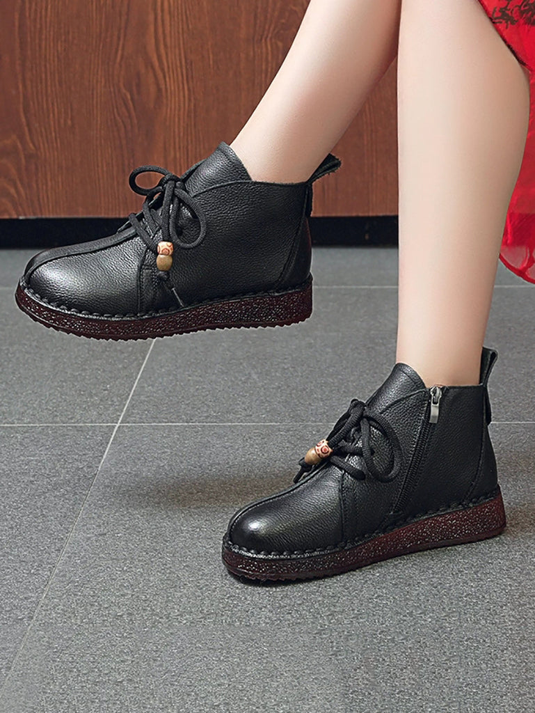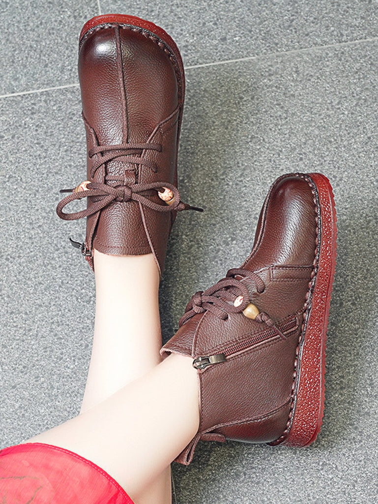Women Vintage Genuine Leather Spliced Low Heel Boots