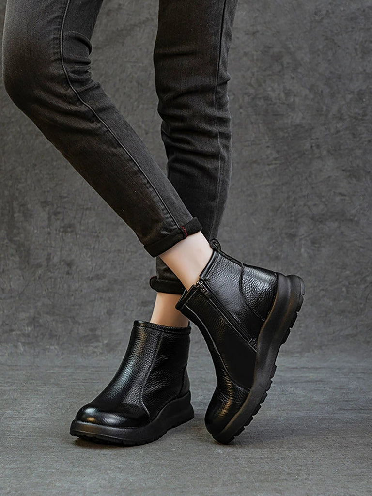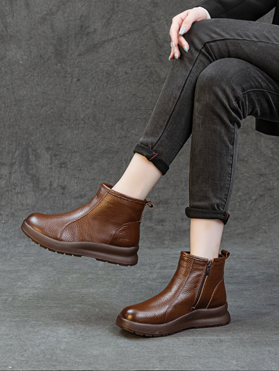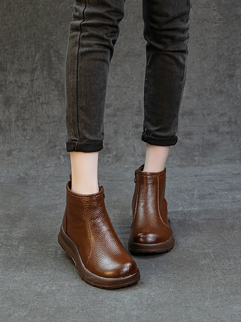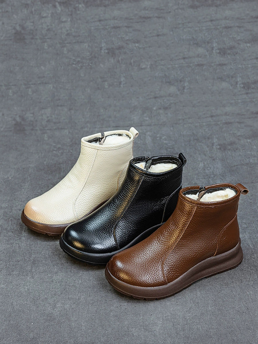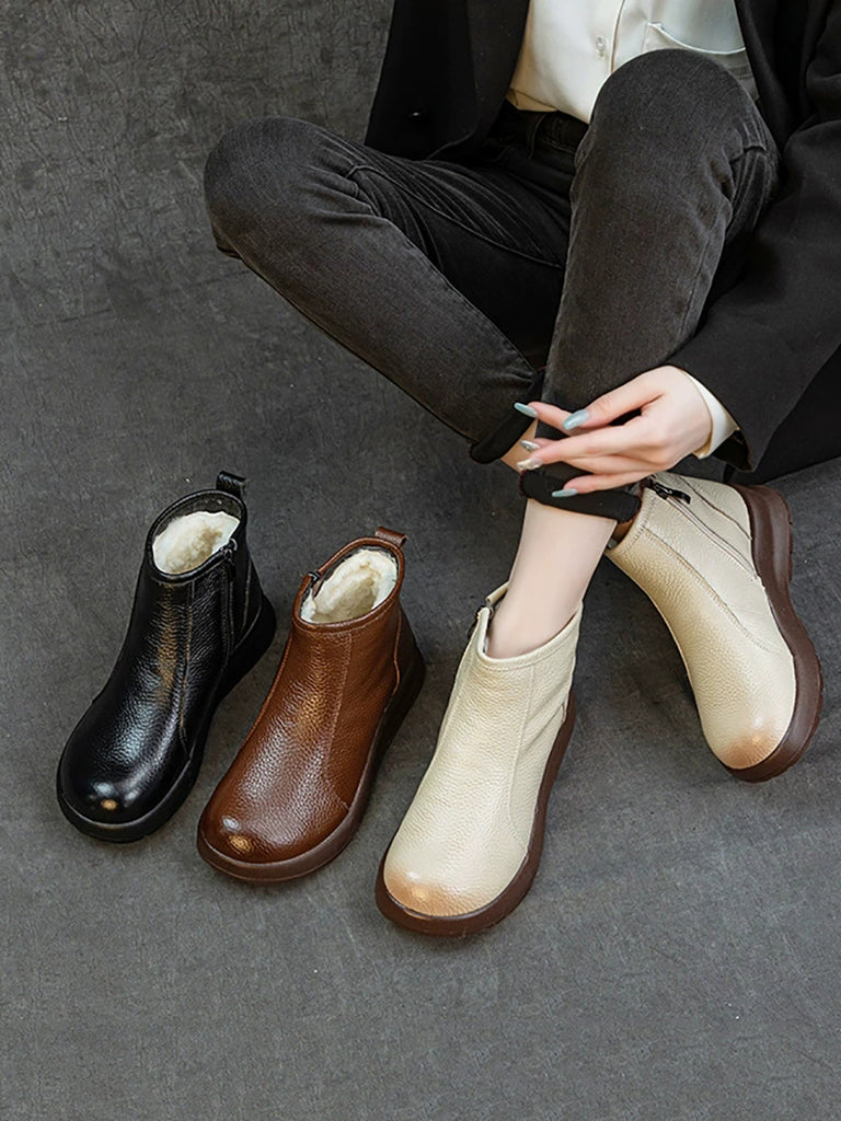 Women Winter Genuine Leather Fleece-lined Boots