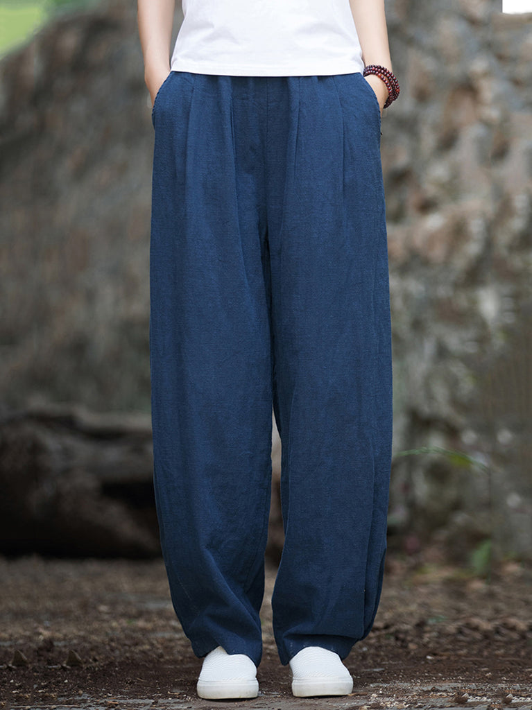 These Retro-style pants feature an elastic waist and a solid pattern, making them an ideal choice for full length coverage. With the addition of pockets and a perfect fit for autumn and winter, these pants are a must-have for any wardrobe.