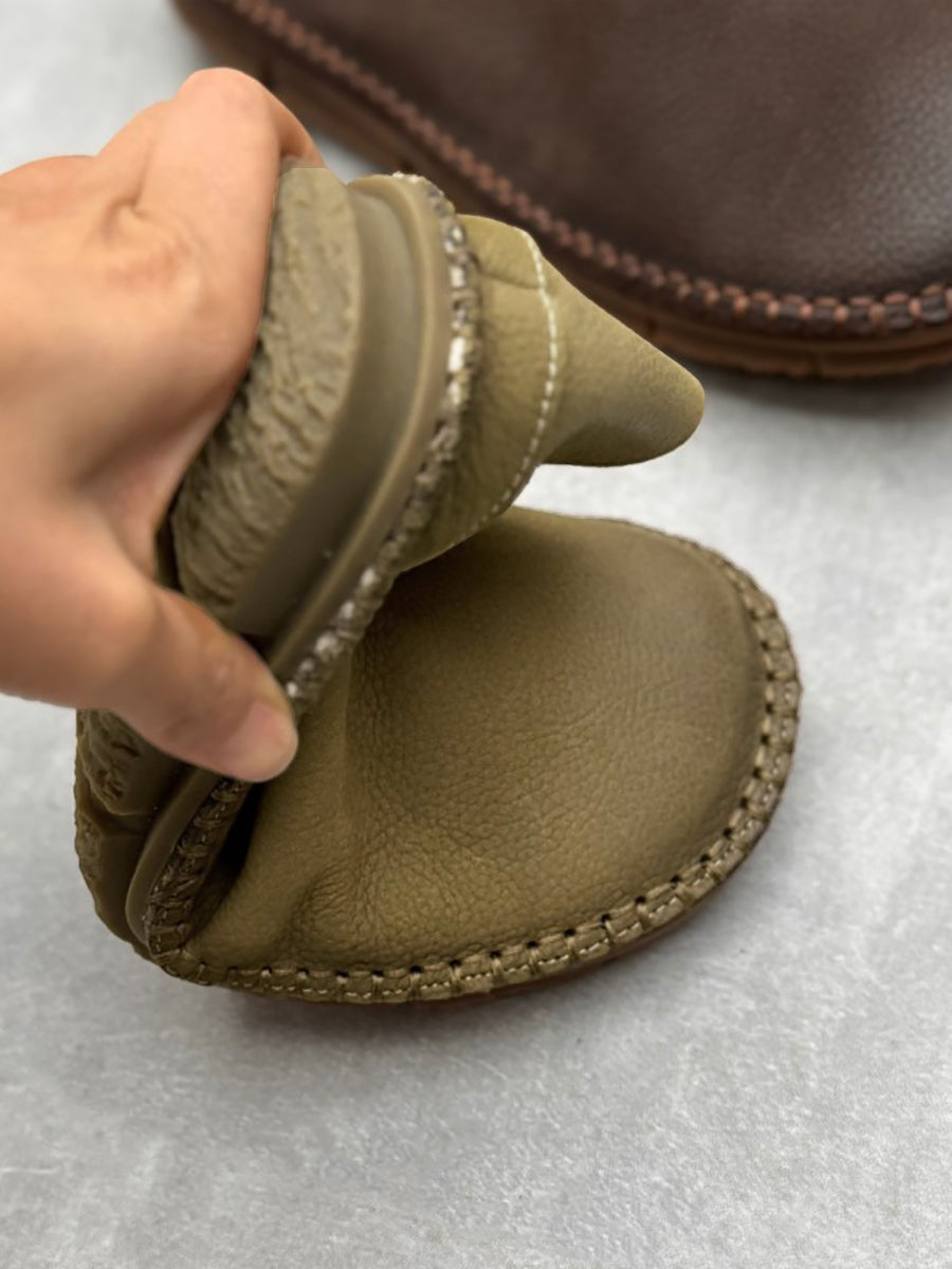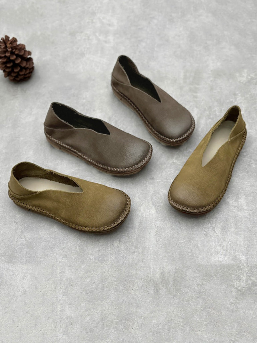 Women Summer Vintage Solid Leather Soft Flat Shoes