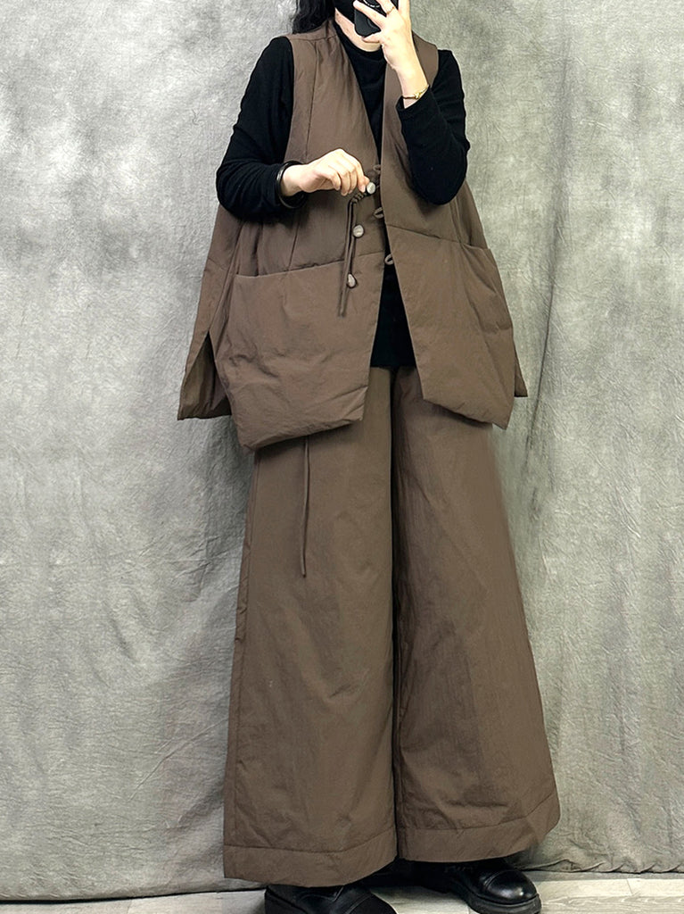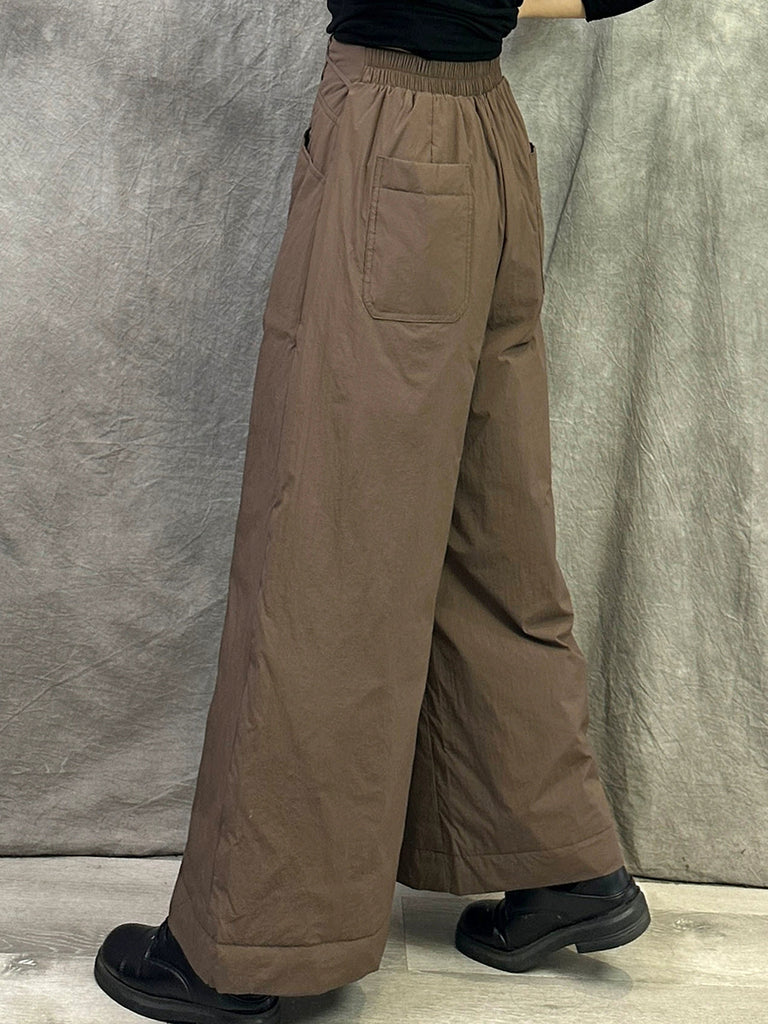 Women Winter Casual Pure Color Down Wide-leg Pants