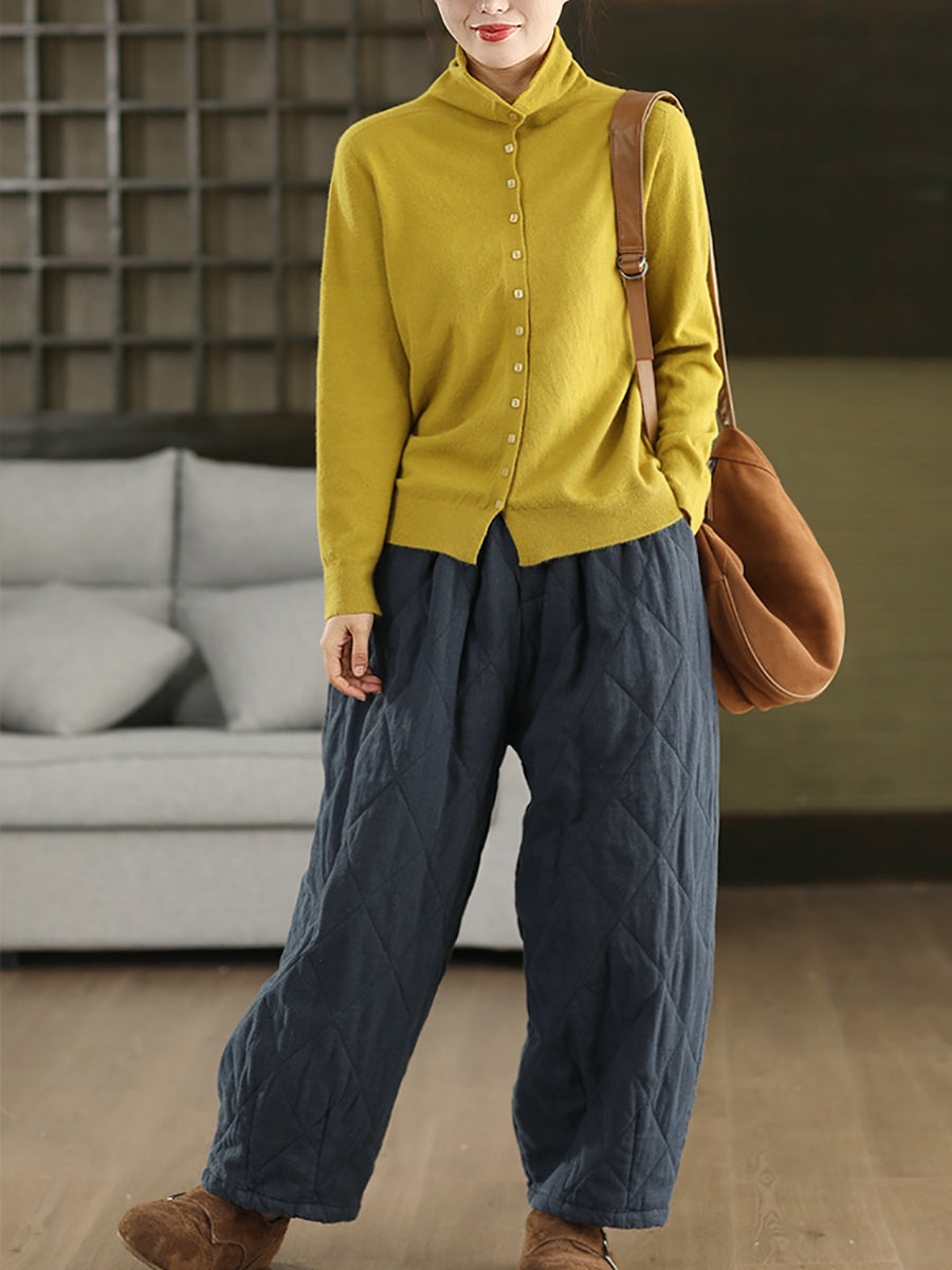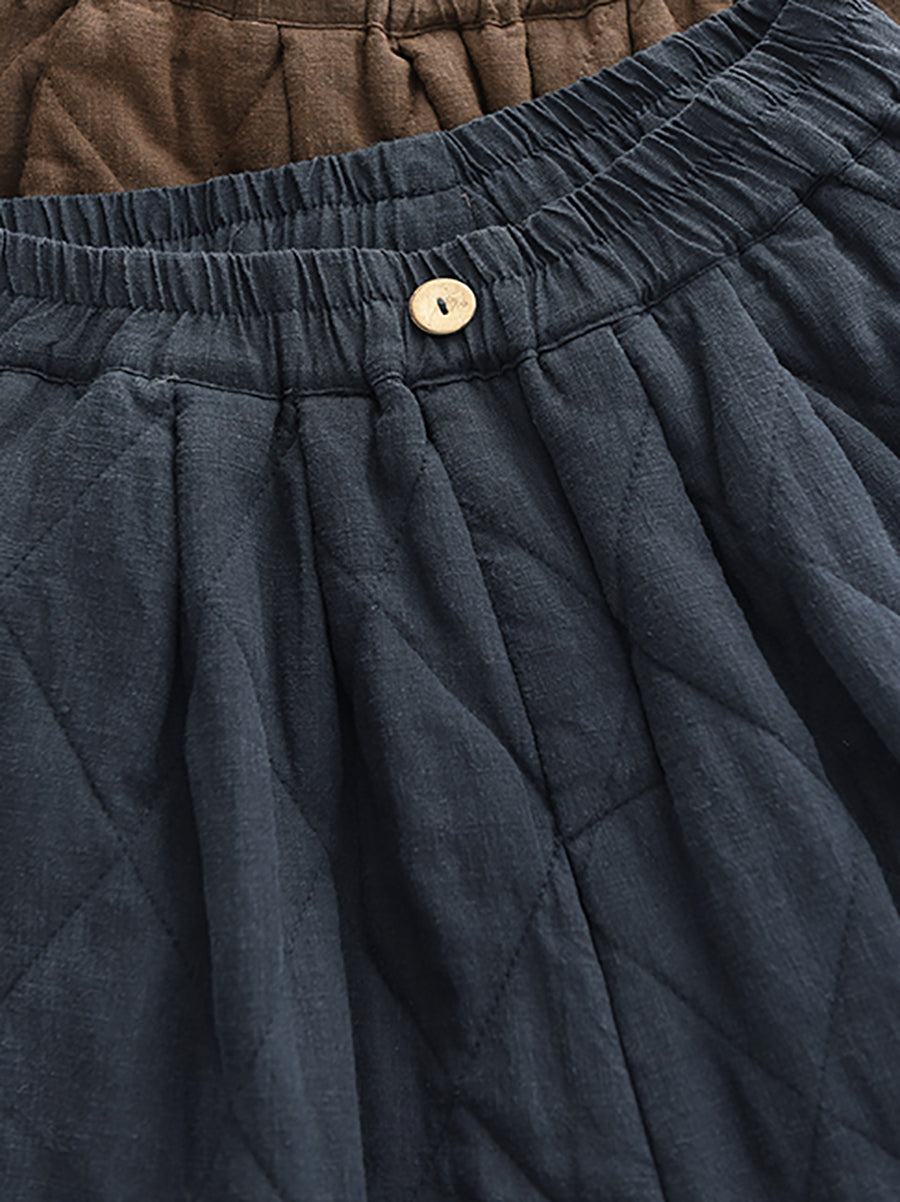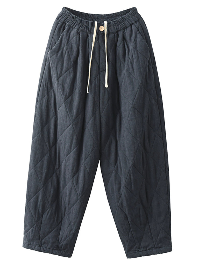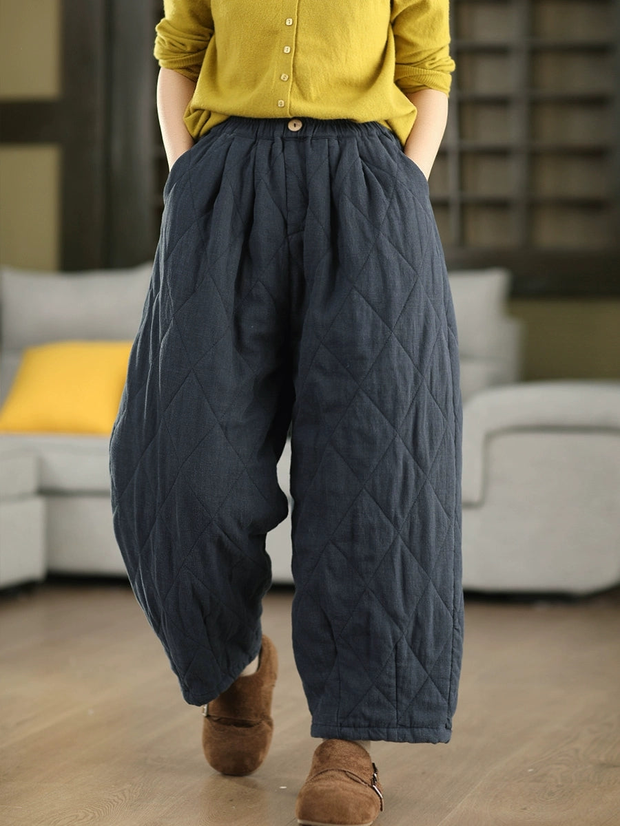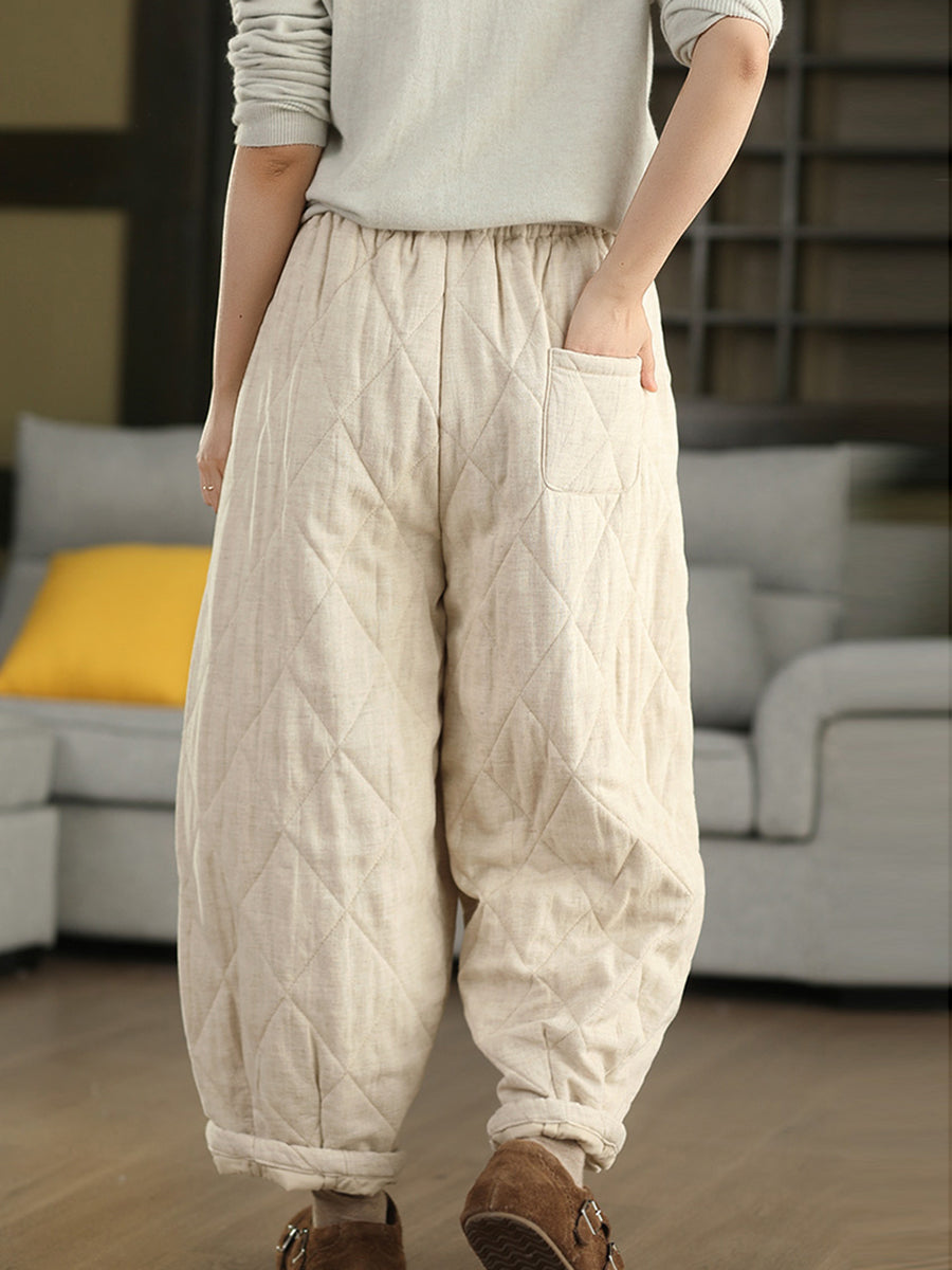 Women Winter Pure Color 100%Hemp Padded Harem Pants