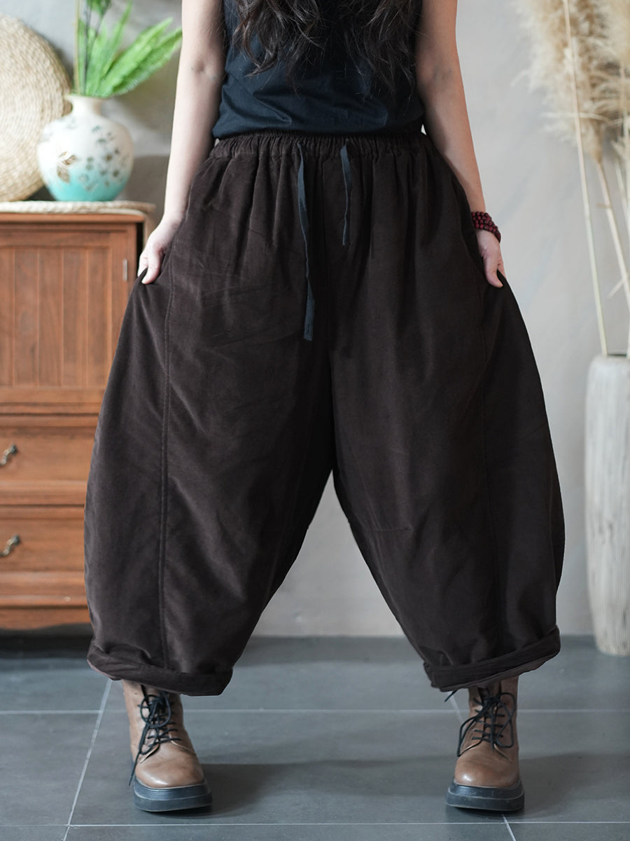 Women Winter Retro Pure Color Padded Bloomers