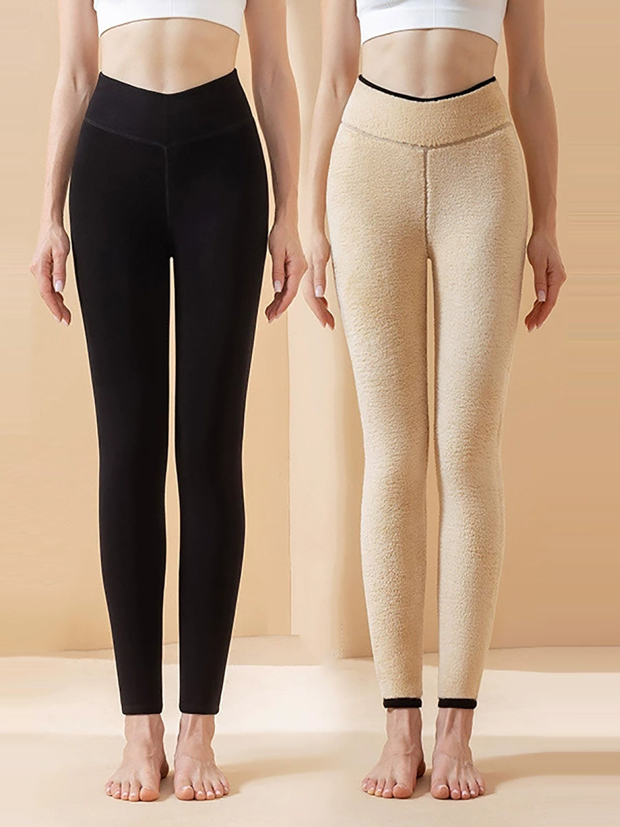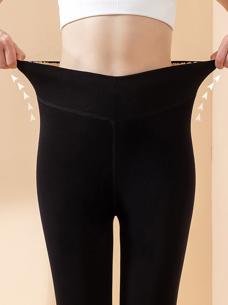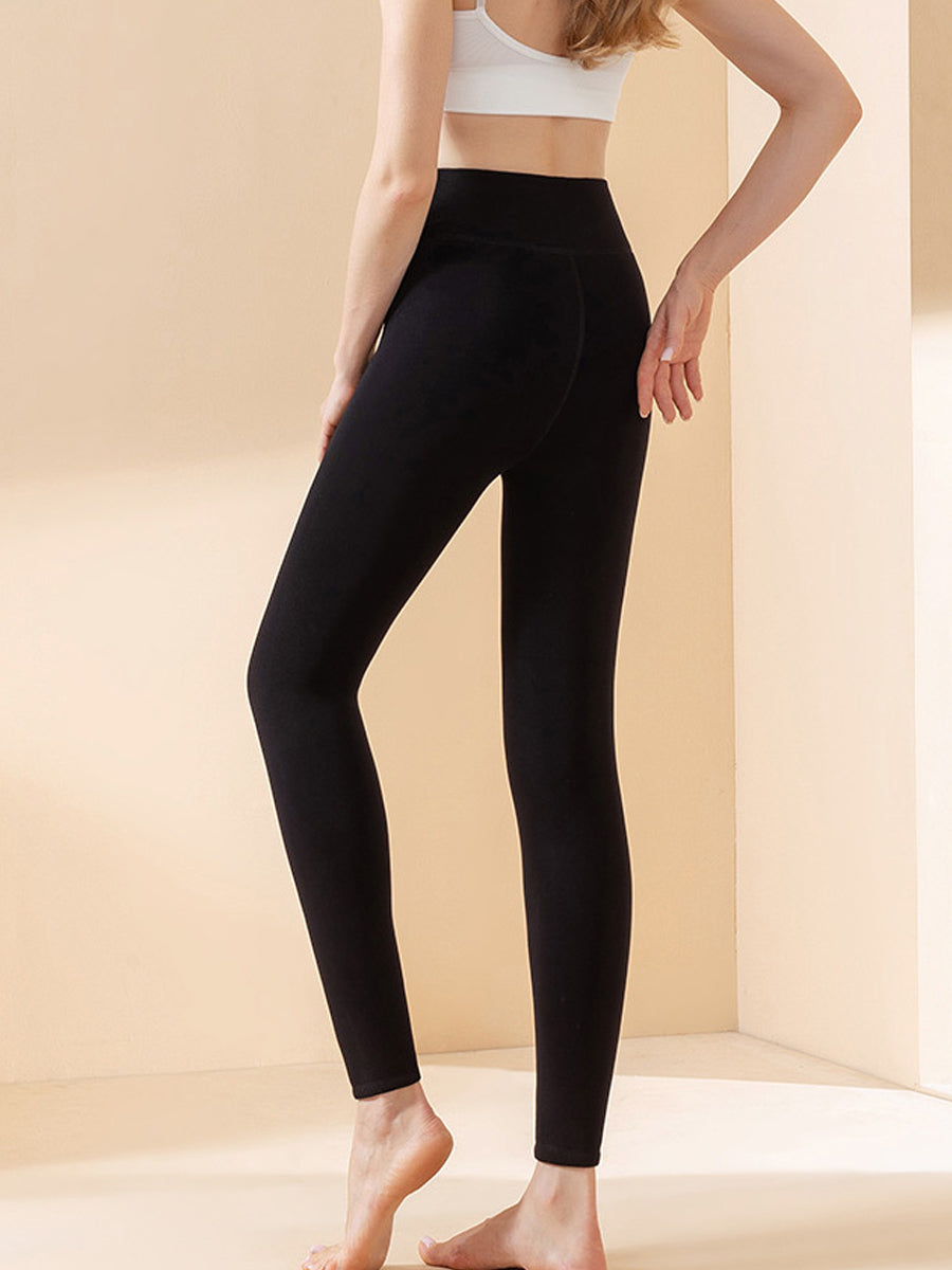 Women Winter Warm Pure Color Fleece-lined Leggings