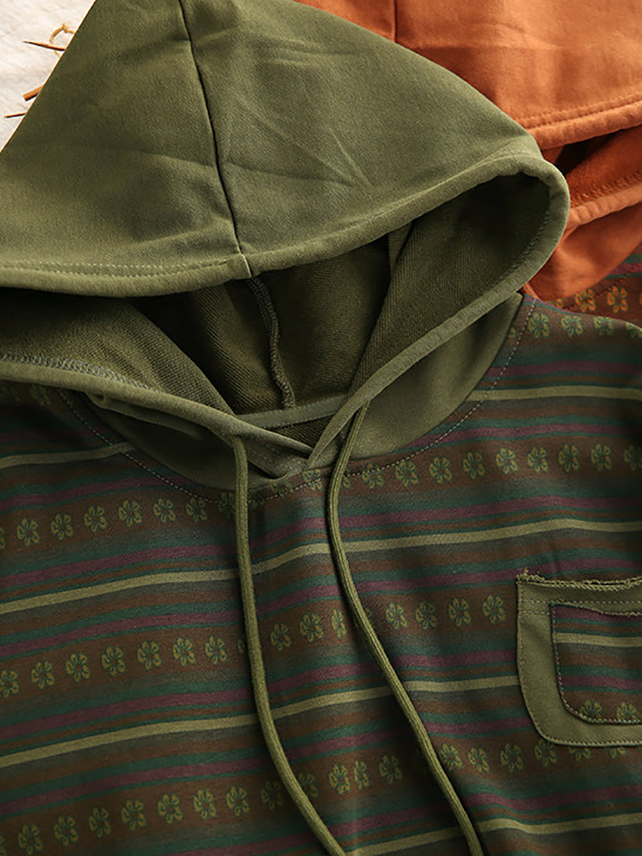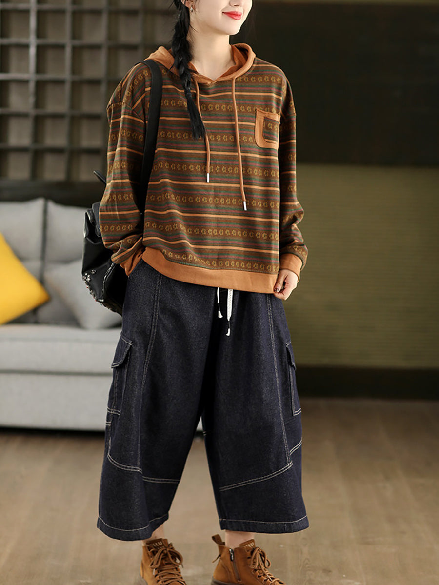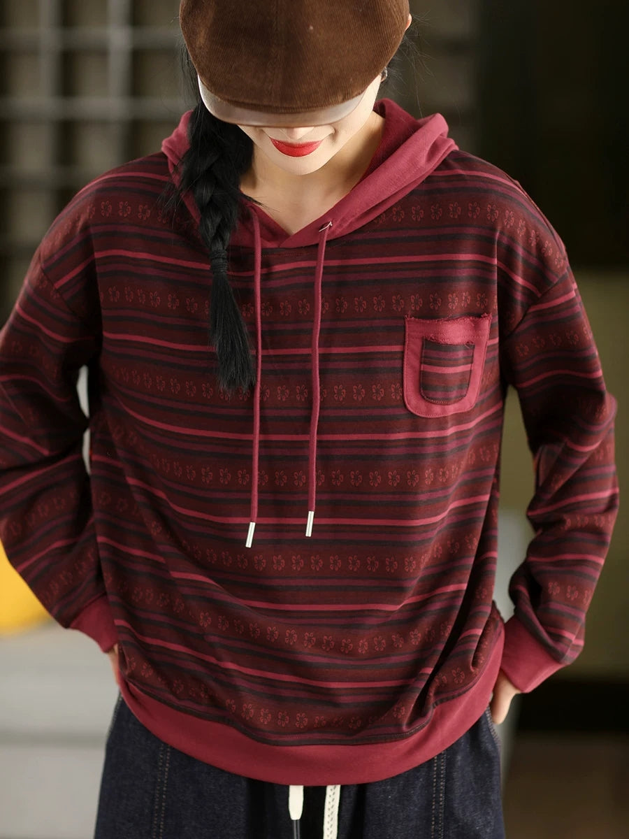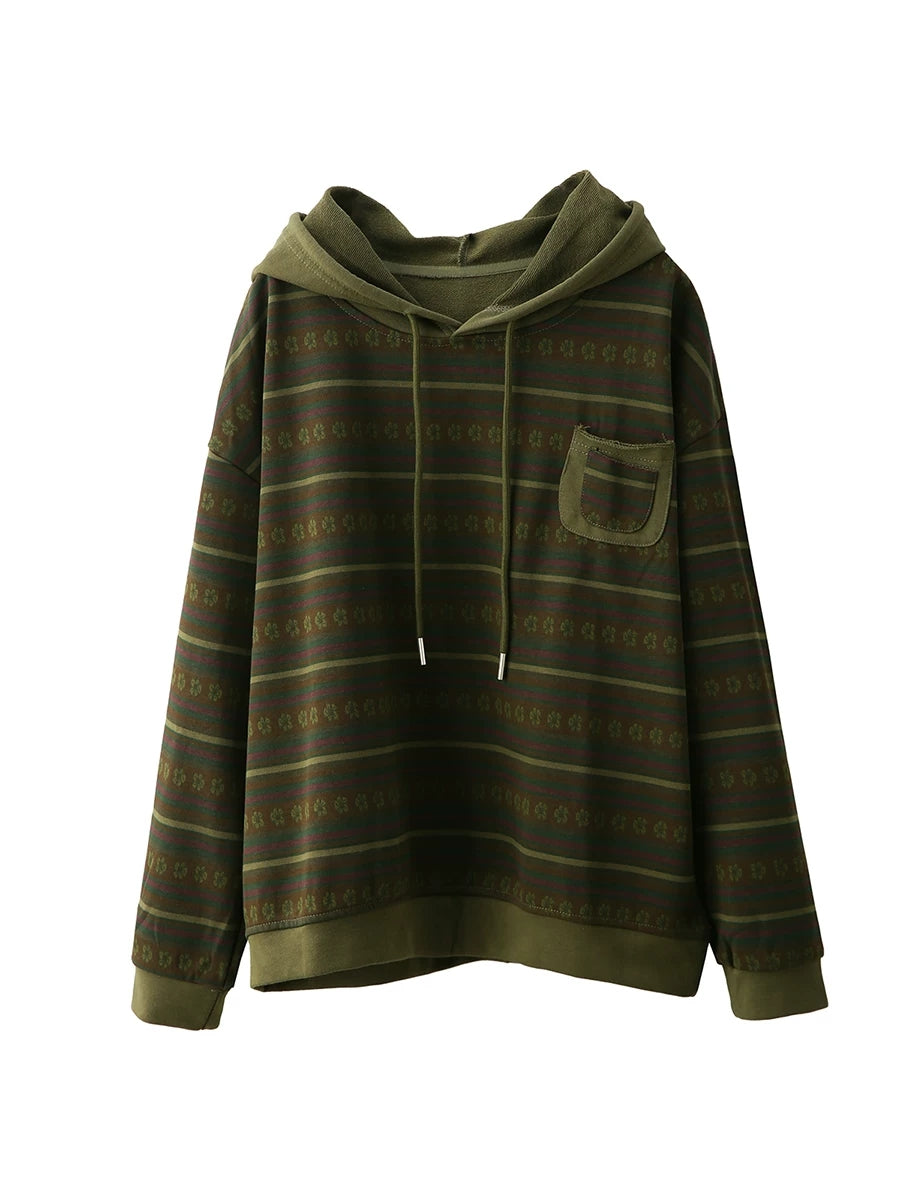 Women Retro Spring Stripe Hooded Sweater