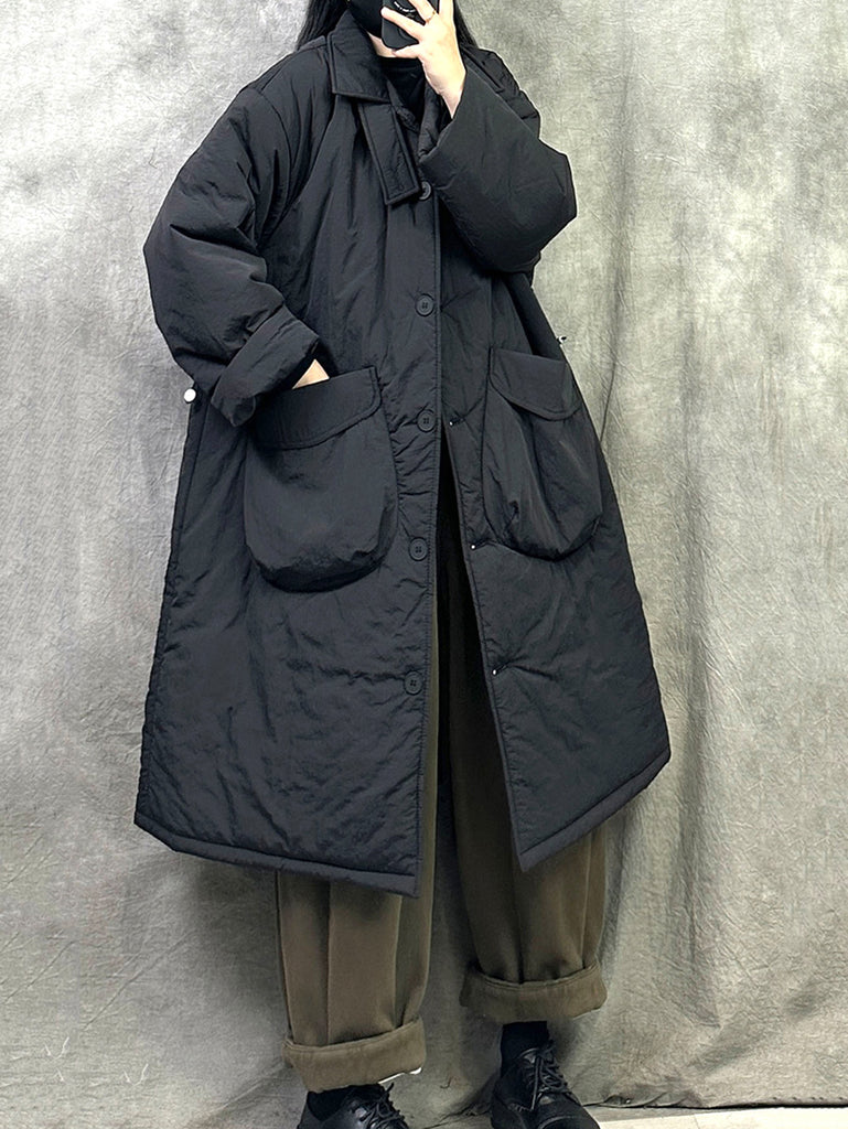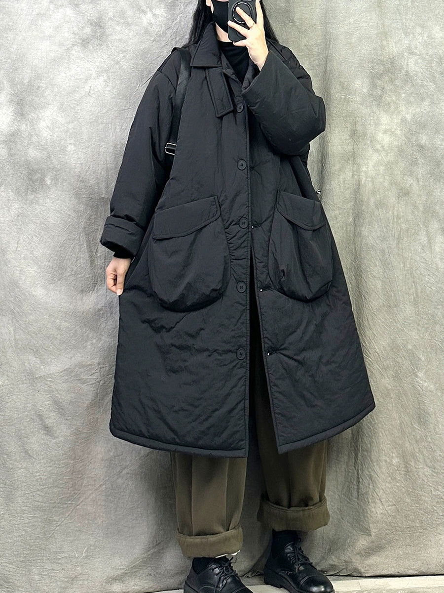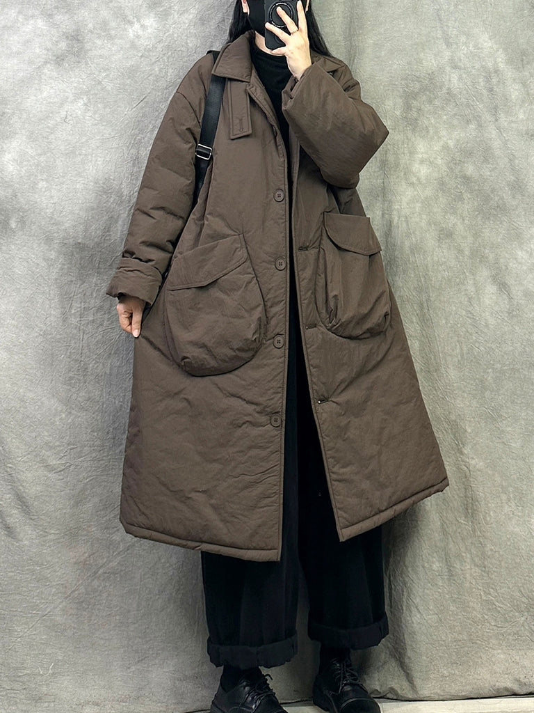 Women Winter Pure Color Padded Turn-down Collar Coat
