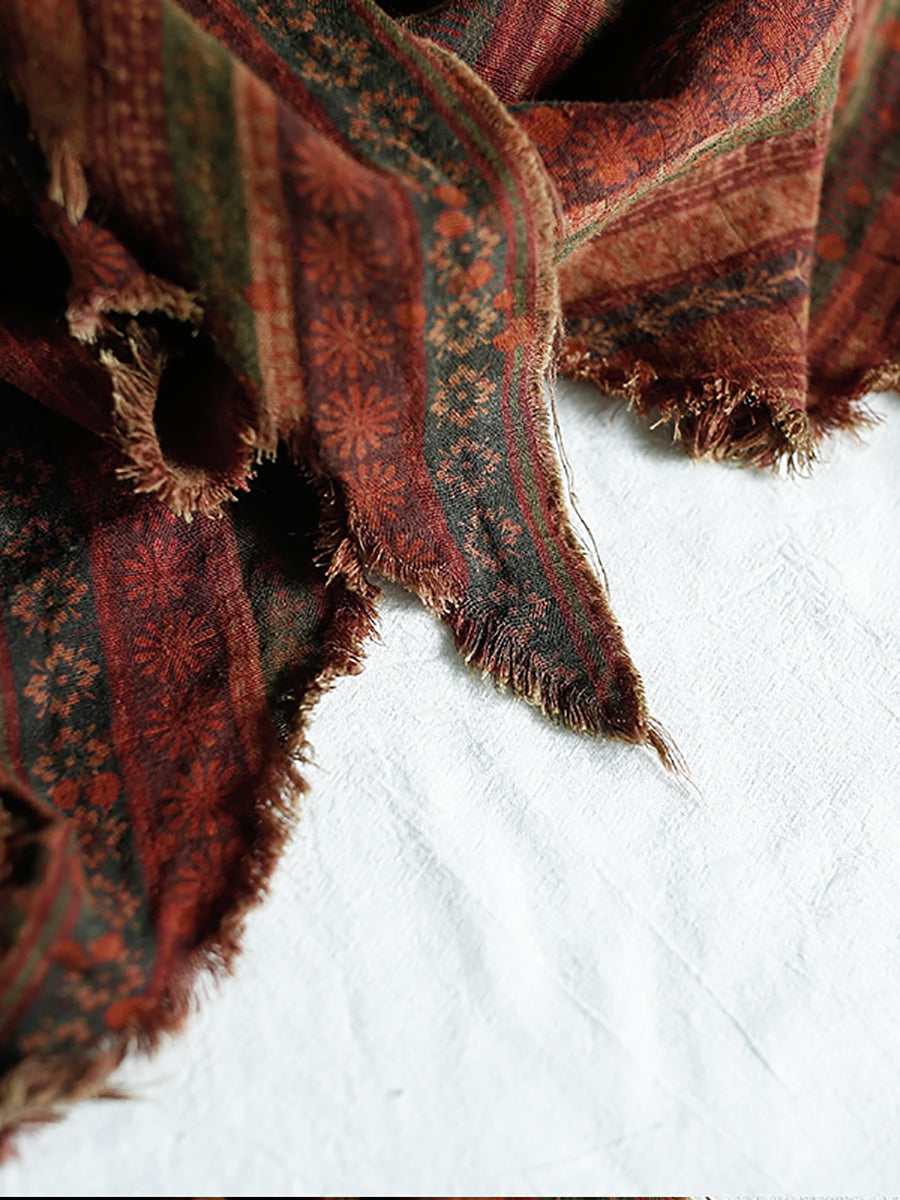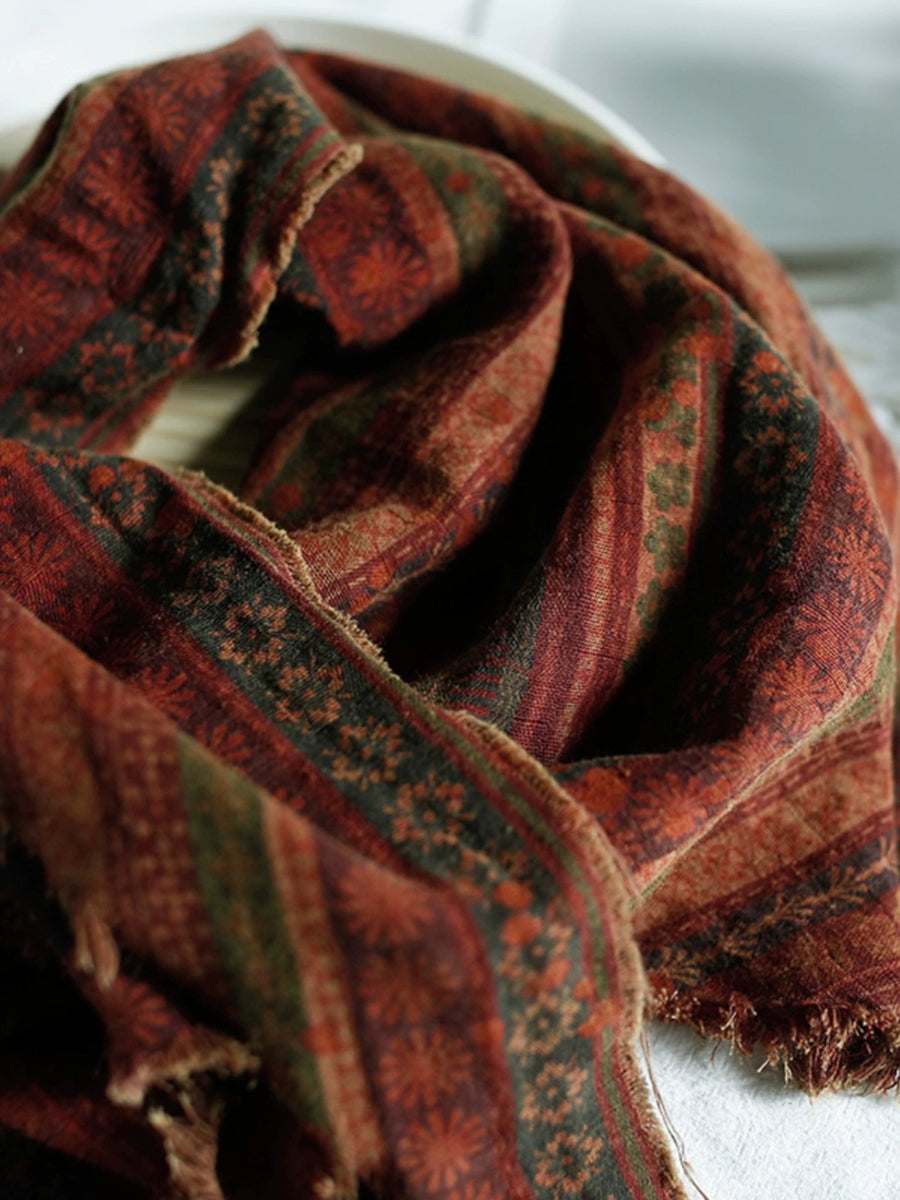 Women Vintage Flower Cotton Triangle Scarf